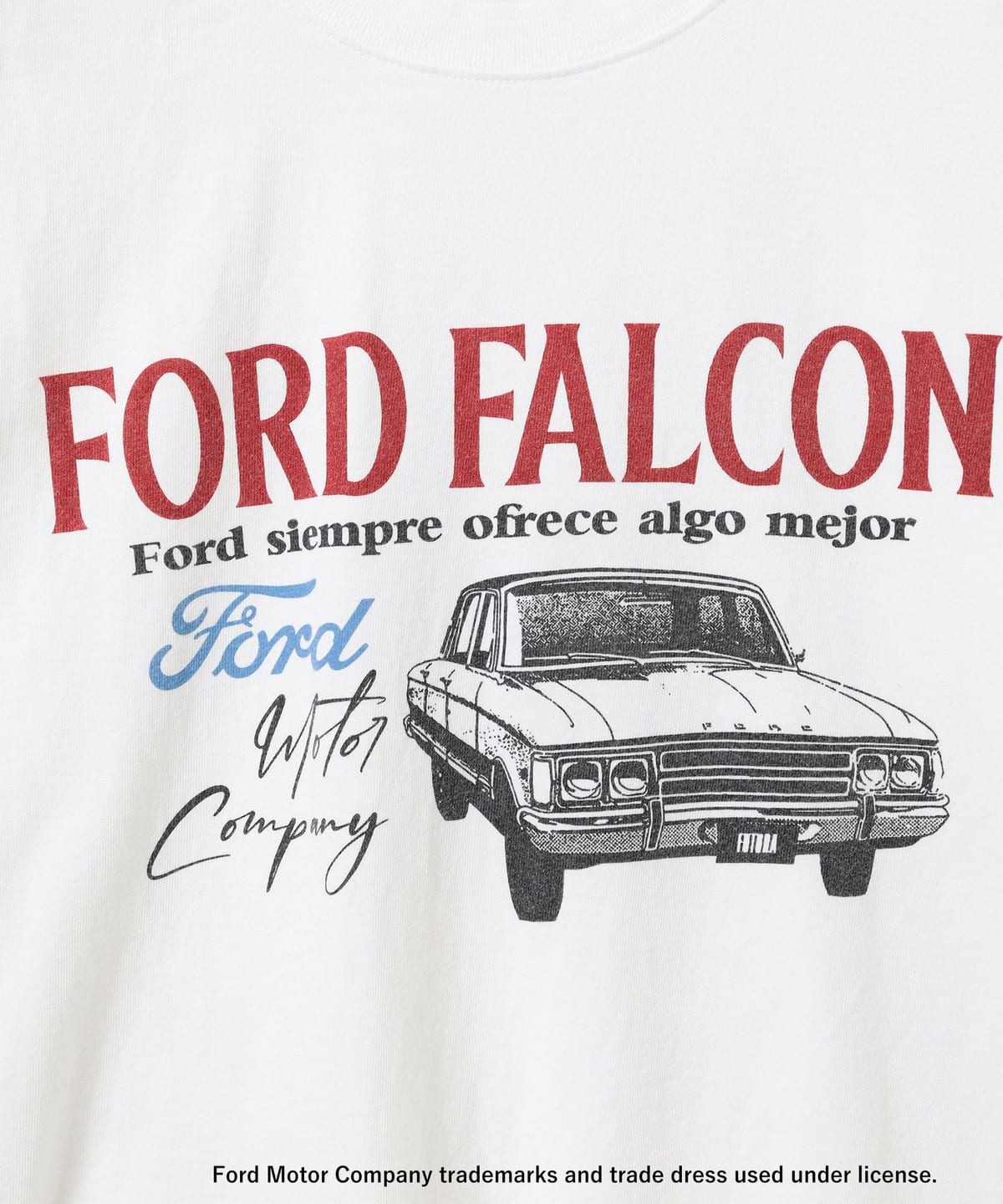 빈티지한 분위기를 살린 그래픽 티셔츠로, 1960년대부터 2016년까지 생산된 자동차 팔콘의 그래픽이 전면에 있습니다. 뒷목 부부넹는 로고 프린트 포인트가 있습니다.