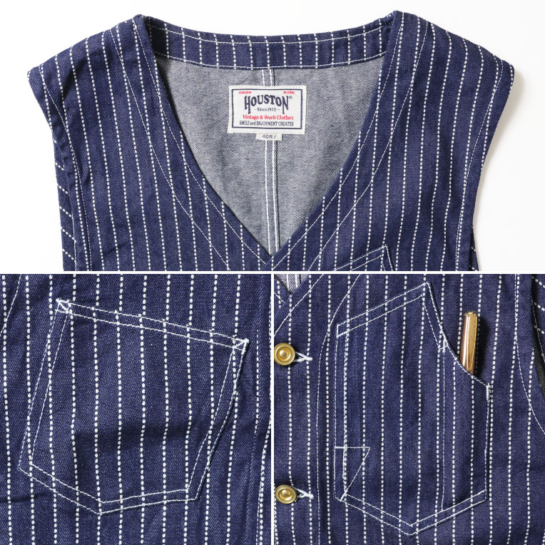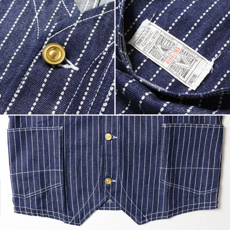 직접 제작한 12온스 워바시 데님 원단을 사용한 워크 베스트입니다.