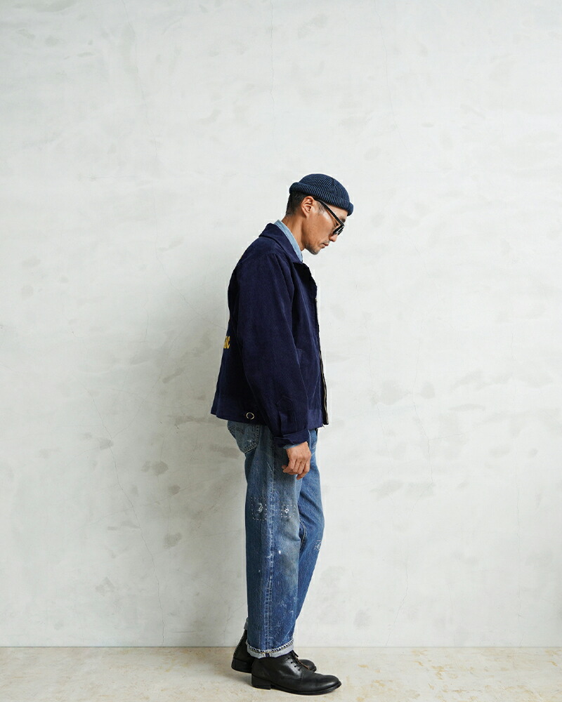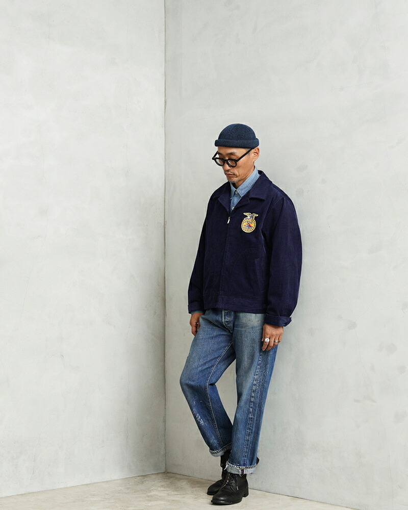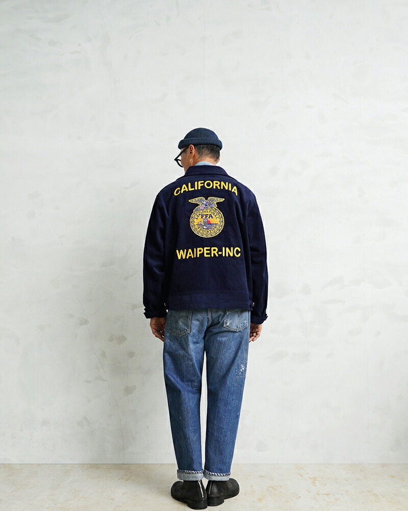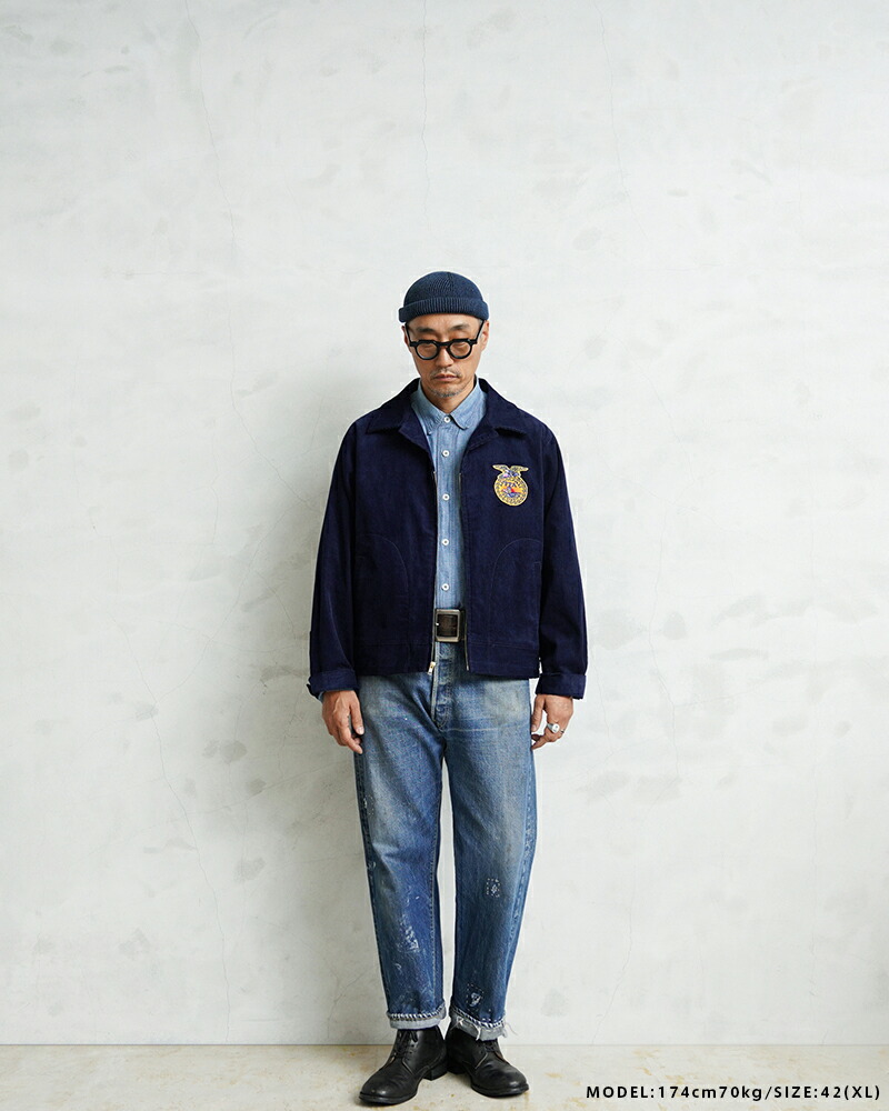 미국의 농업 교육을 상징하는 학생 조직 FFA의 유니폼으로 알려진 재킷의 복각 제품입니다. 고급스러운 네이비 블루 코듀로이 소재를 사용했으며,