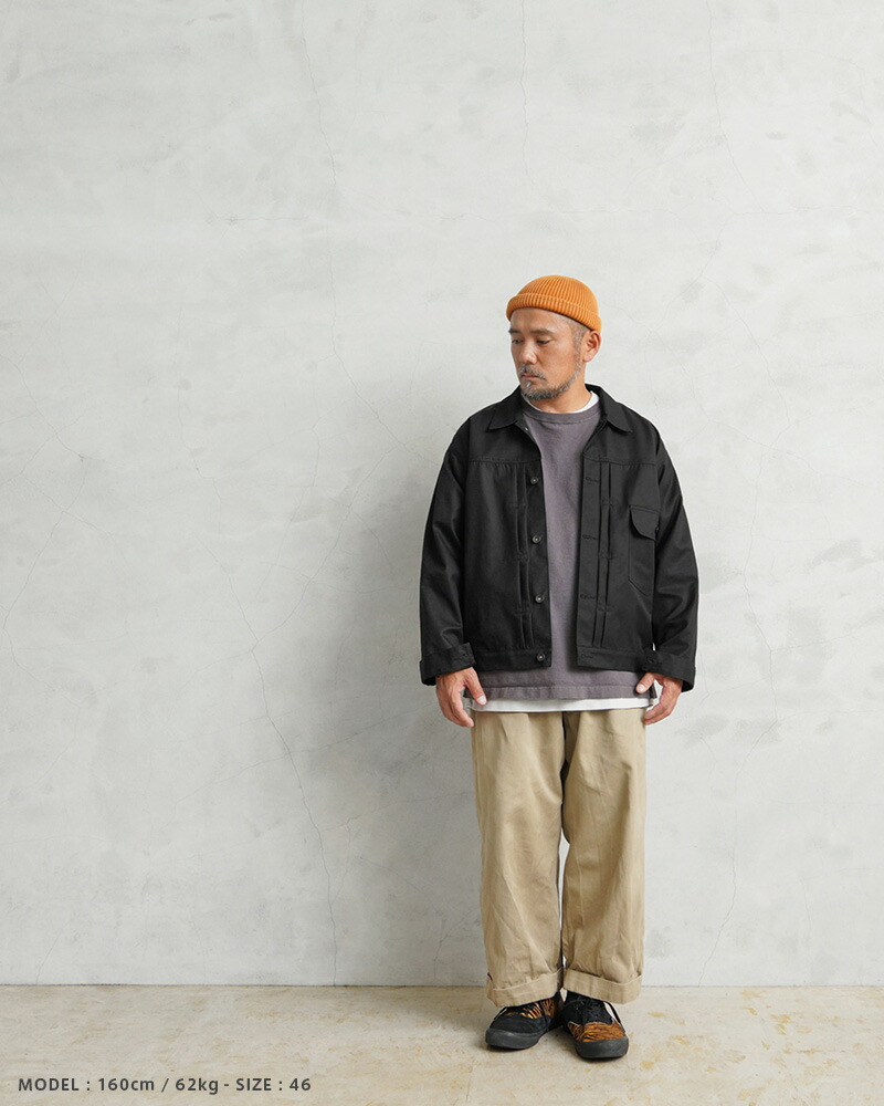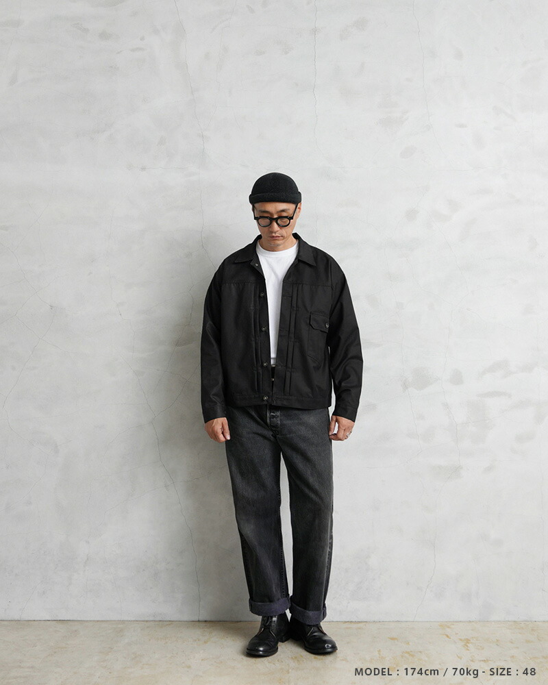 리메이크 라인에서 인기를 모은 빈티지의 대표라고 할 수 있는 유명한 데님 재킷 「1st TYPE T-BACK」가, 이번은 제2차 세계대전 중 파일럿용 군복으로서 영국에서 개발된 원단 「VENTILE」을 사용해 제작했습니다. Ventile은 초극세면사를 한계까지 몰아쳐 직조 밀도가 일반 직물보다 훨씬 밀도가 높은 면직물입니다.