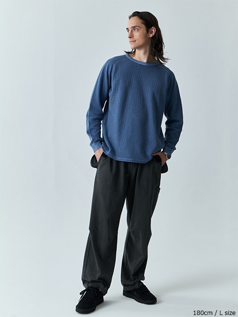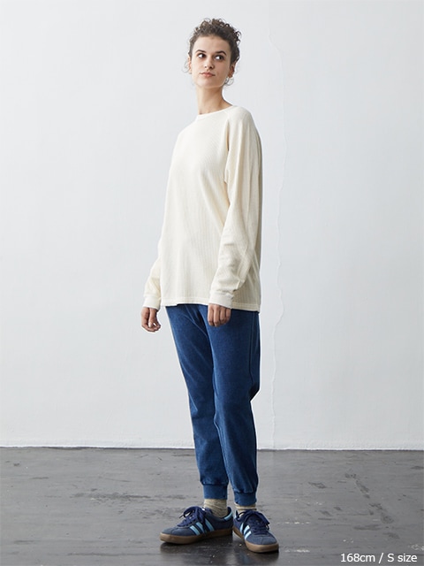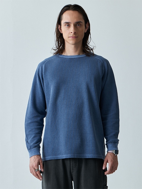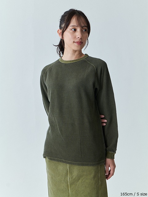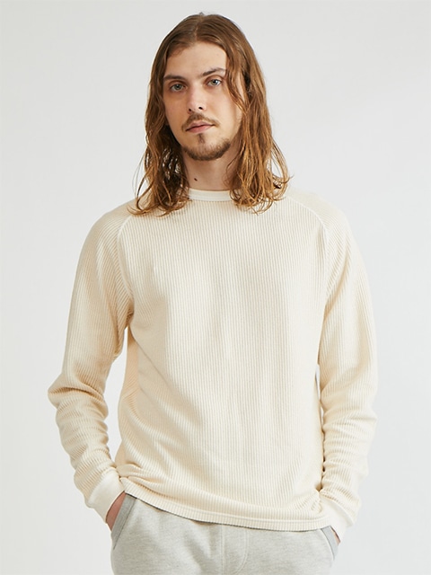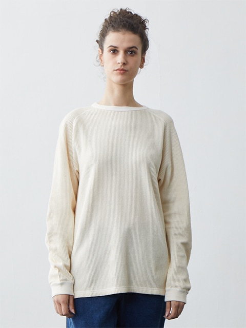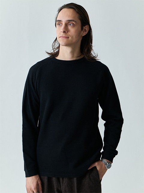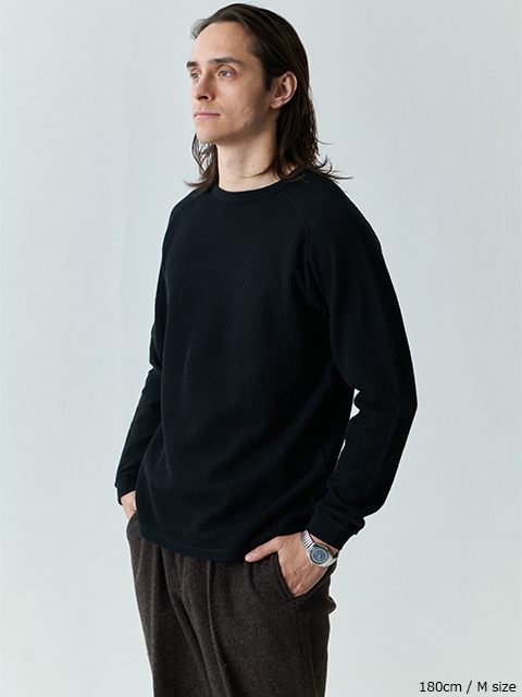 티셔츠의 내구성과 니트의 부드러운 질감을 겸비한 소재입니다. 라글란 소매로 움직임이 편안합니다.
