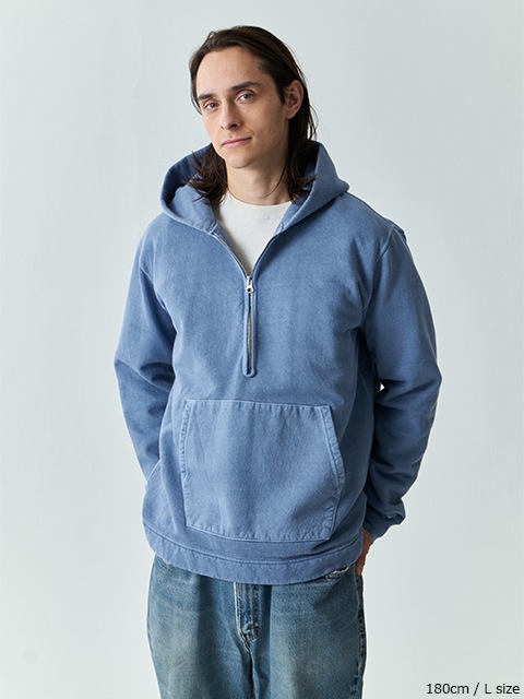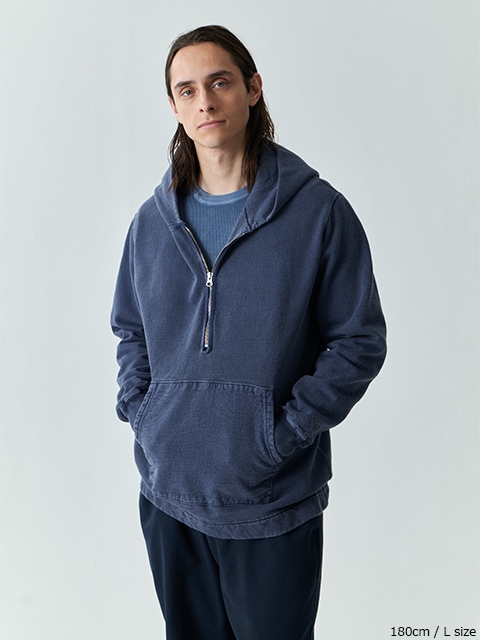90년대에 인기를 끈 Good On의 대표 아이템 「Rough Cut Sweat」의 디테일과 실루엣을 리모델링한 제품. 25cm 길이의 지퍼가 있으며 레이어드 해 입기 좋습니다. 여유로운 실루엣과 거칠고 적당히 느슨한 인상을 주는 러프한 디자인입니다. 면 100%의 브러시드 소재입니다.