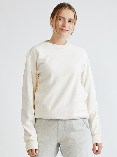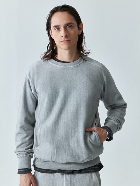 두껍고 밀도가 높은 13oz 스웨트 소재의 티. 입기 편한 헤비급 셔츠의 느낌을 사린 심플한 디자인입니다. 겨드랑이에서 밑단까지 골지 사이드를 붙여 입체적인 패턴을 연출했습니다. 허리 위의 사이드 포켓은 5.5oz 소재입니다.