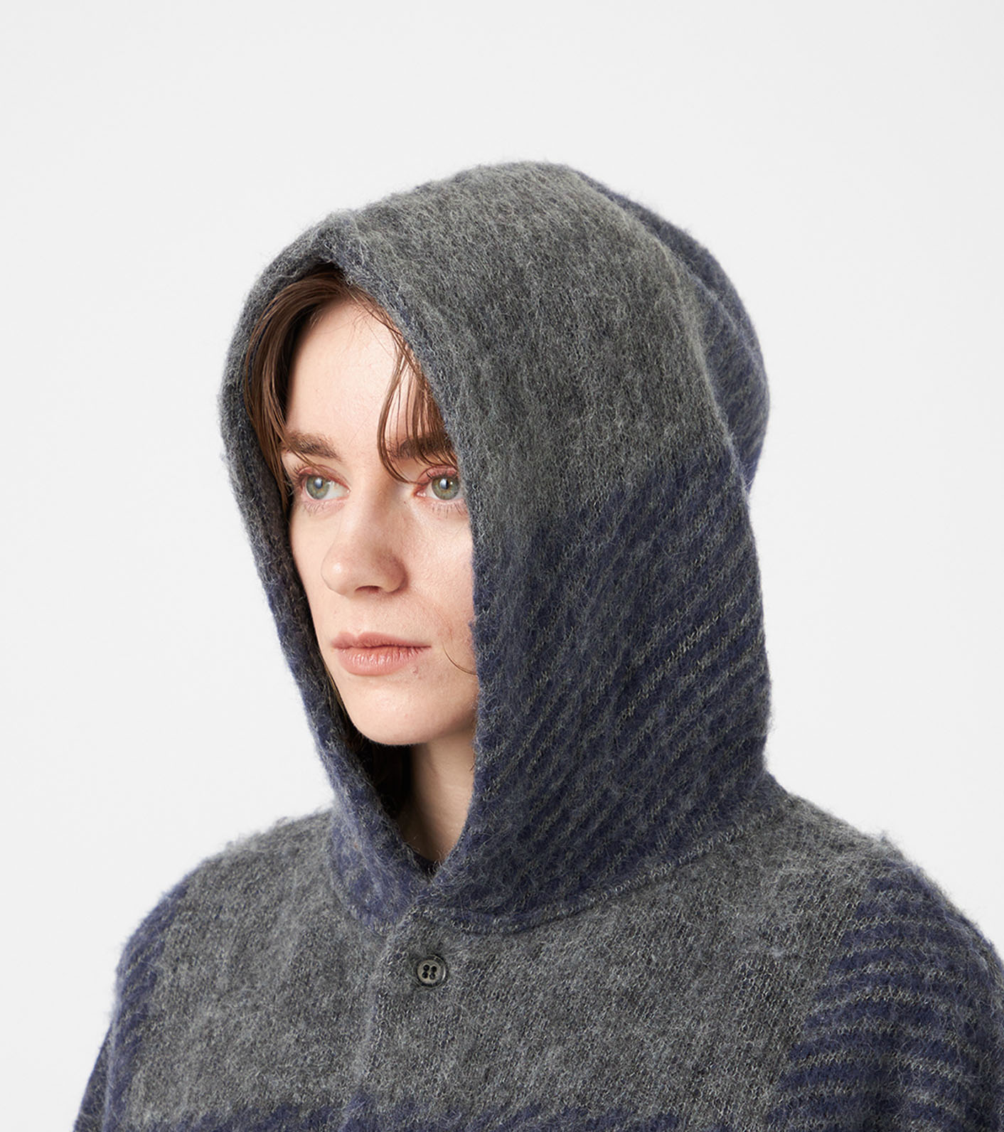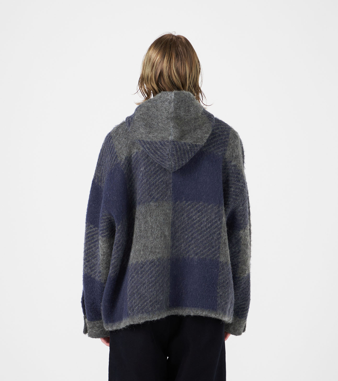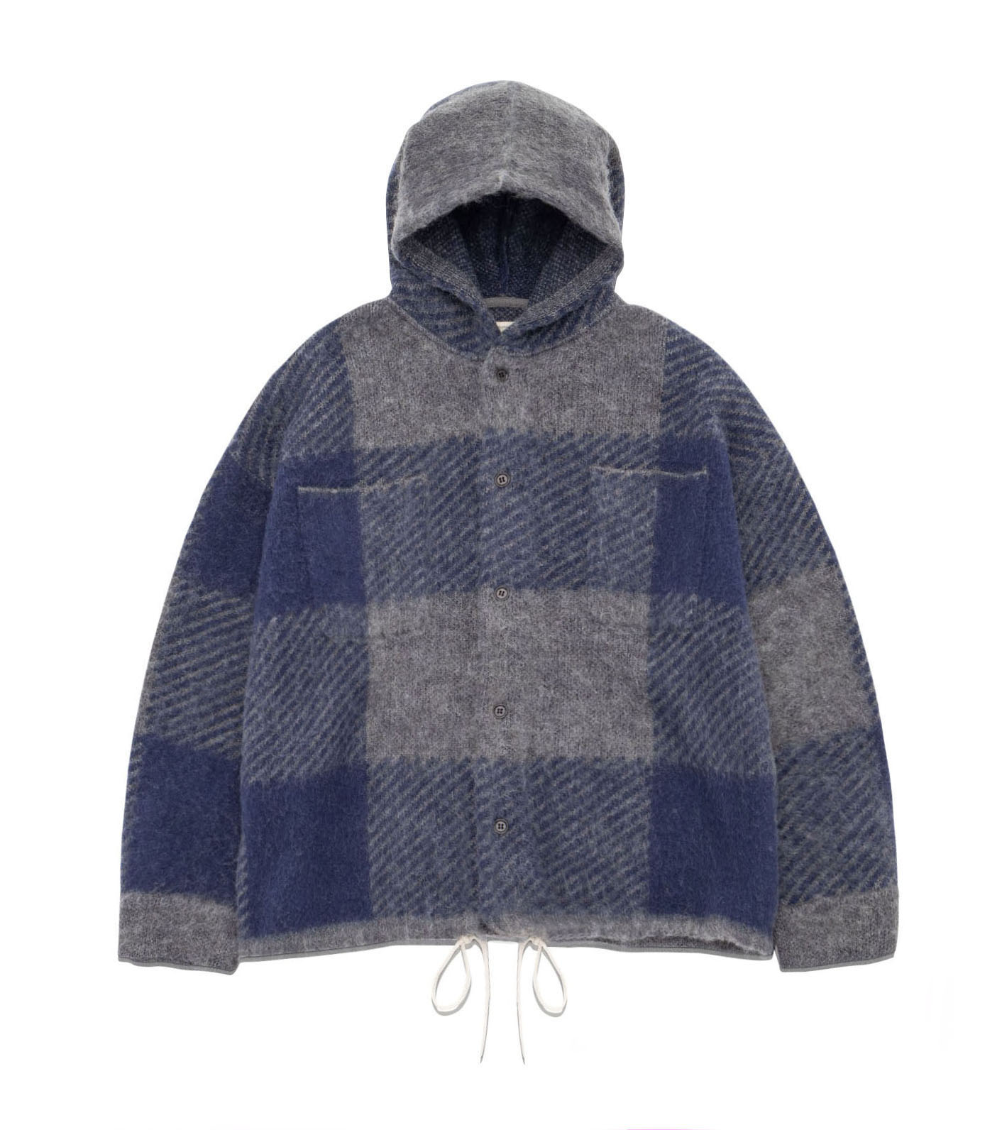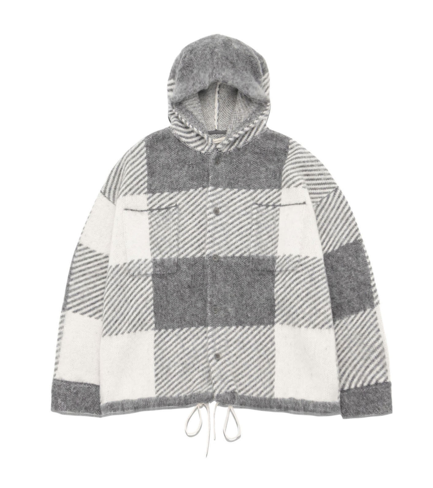 모헤어 혼방의 버팔로 체크 패턴의 후드 재킷.