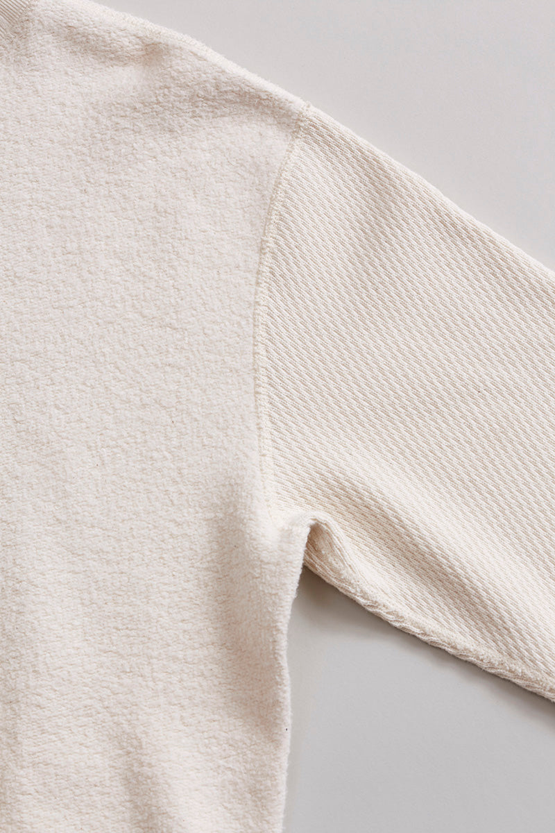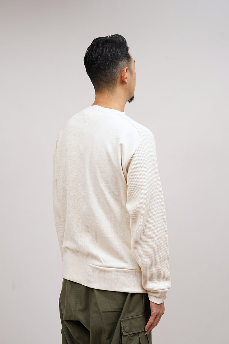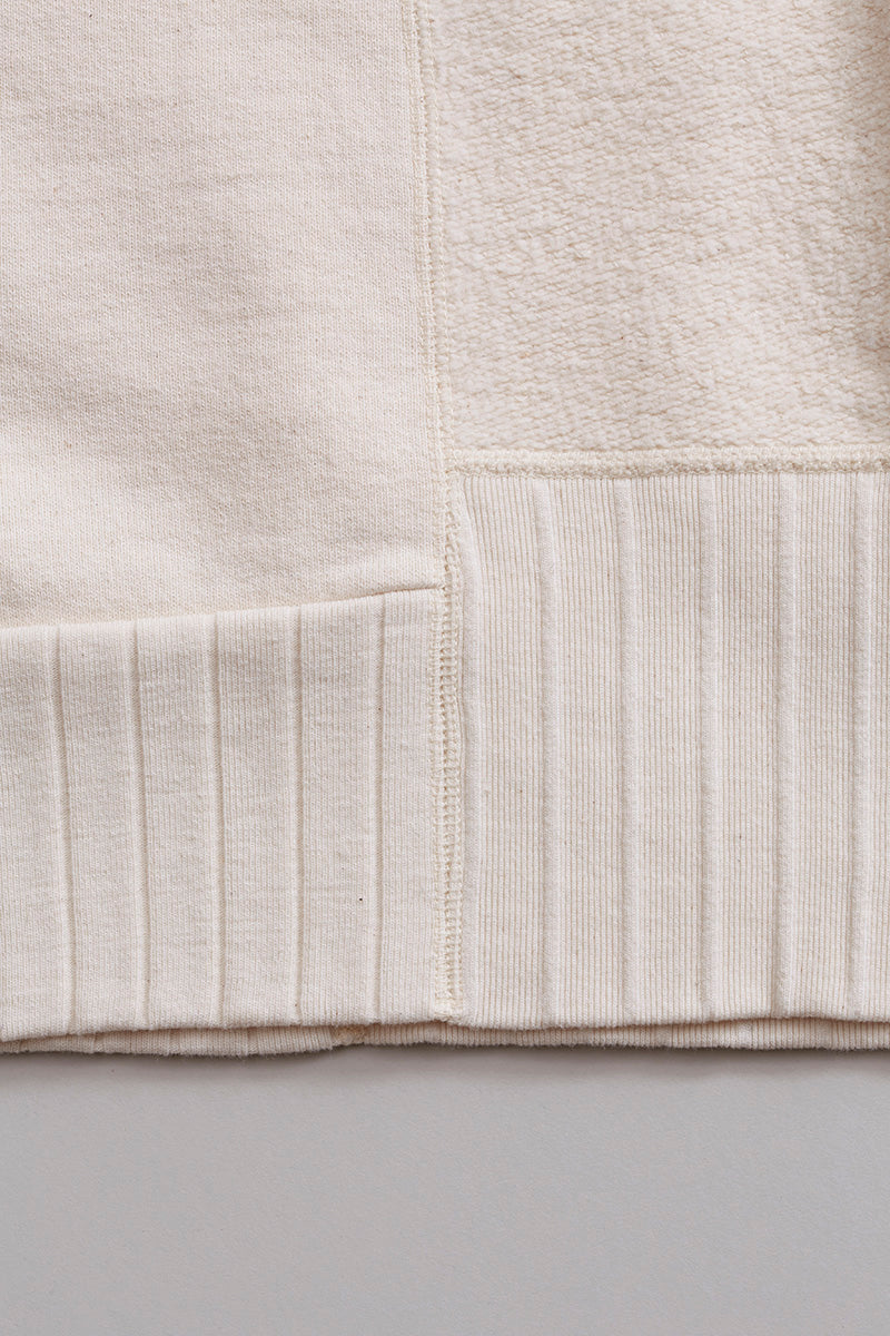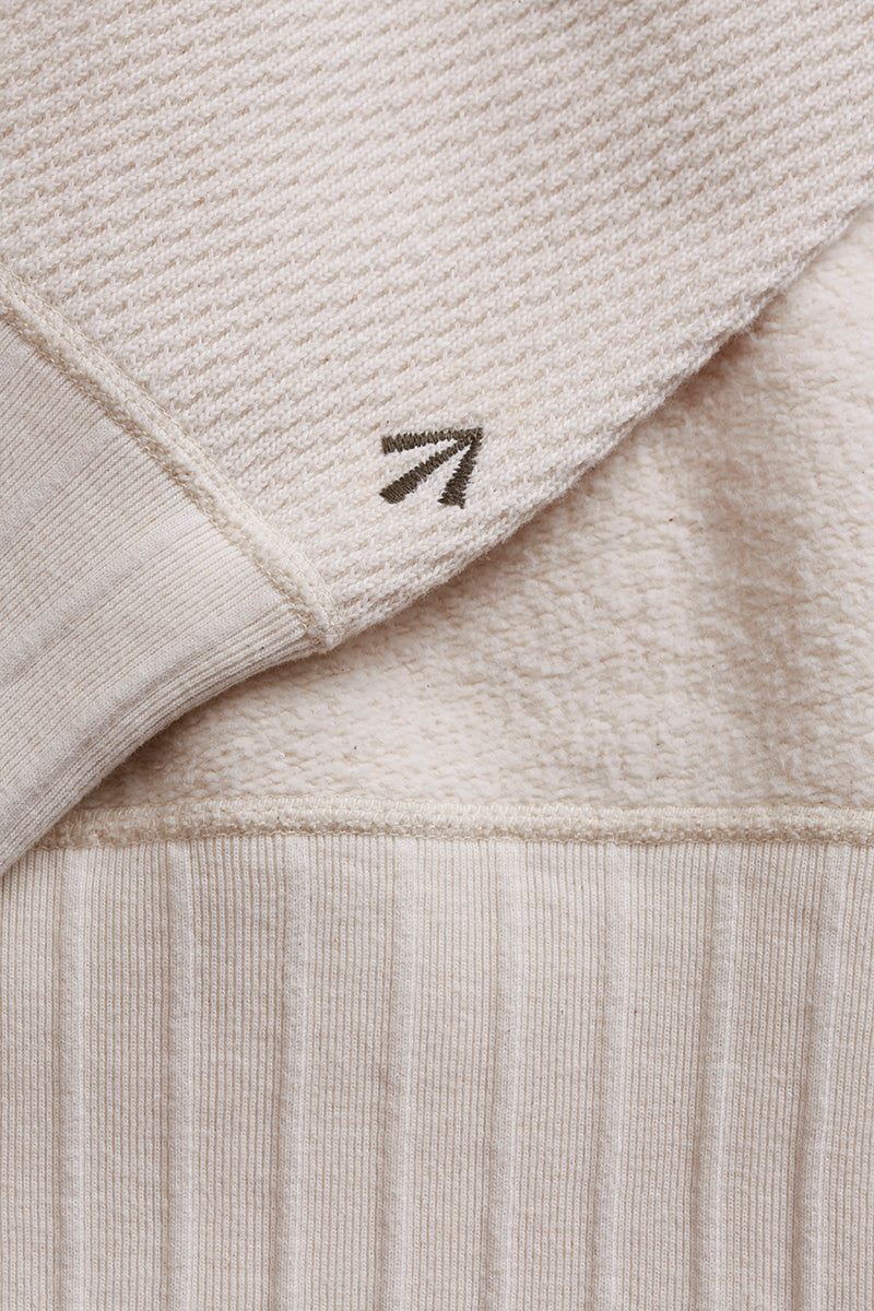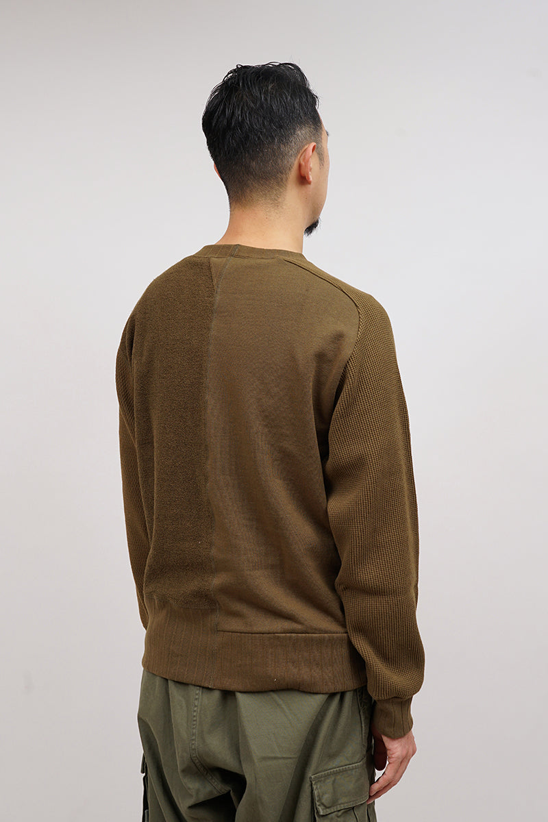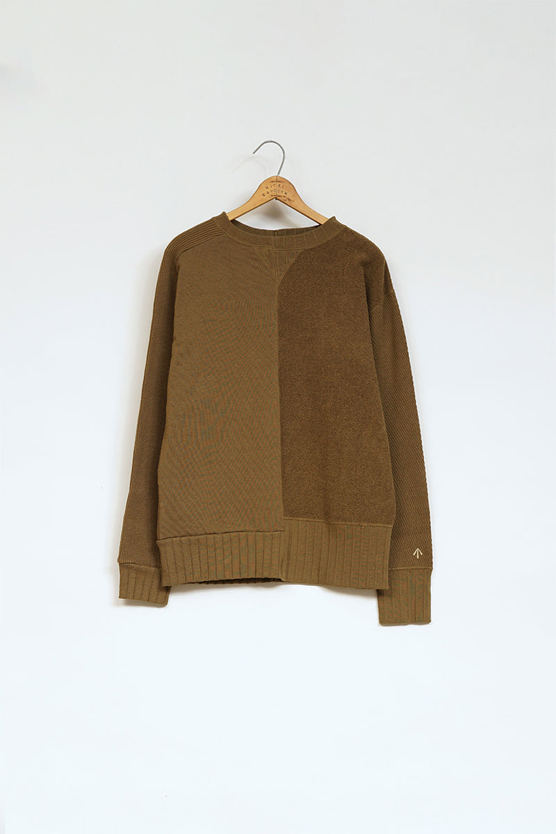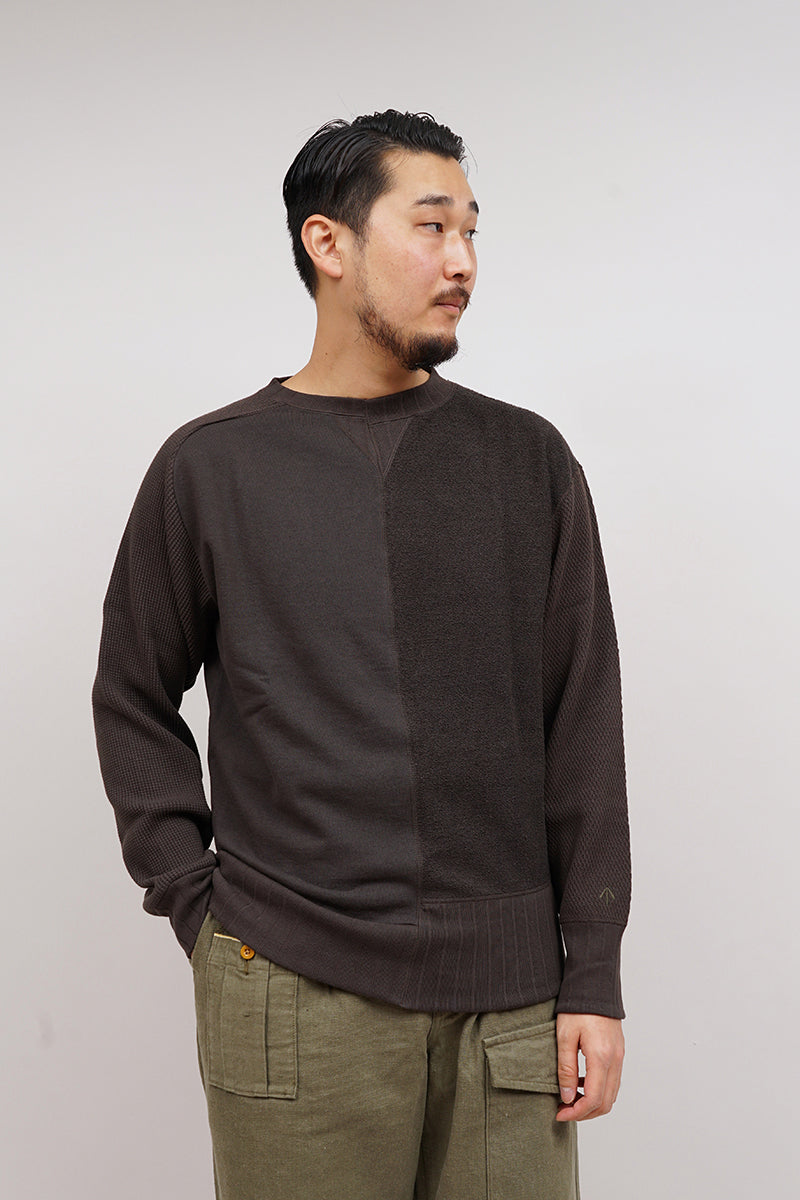 영국 육군에서 사용되던 트레이닝 웨어를 기반으로 디자인되었습니다. 오른쪽 몸판은 1930년대, 왼쪽 몸판은 1940년대 디자인을 충실히 재현하여, 서로 다른 시대의 사양을 과감하게 중앙에서 이어 붙인 독창적인 아이템입니다.