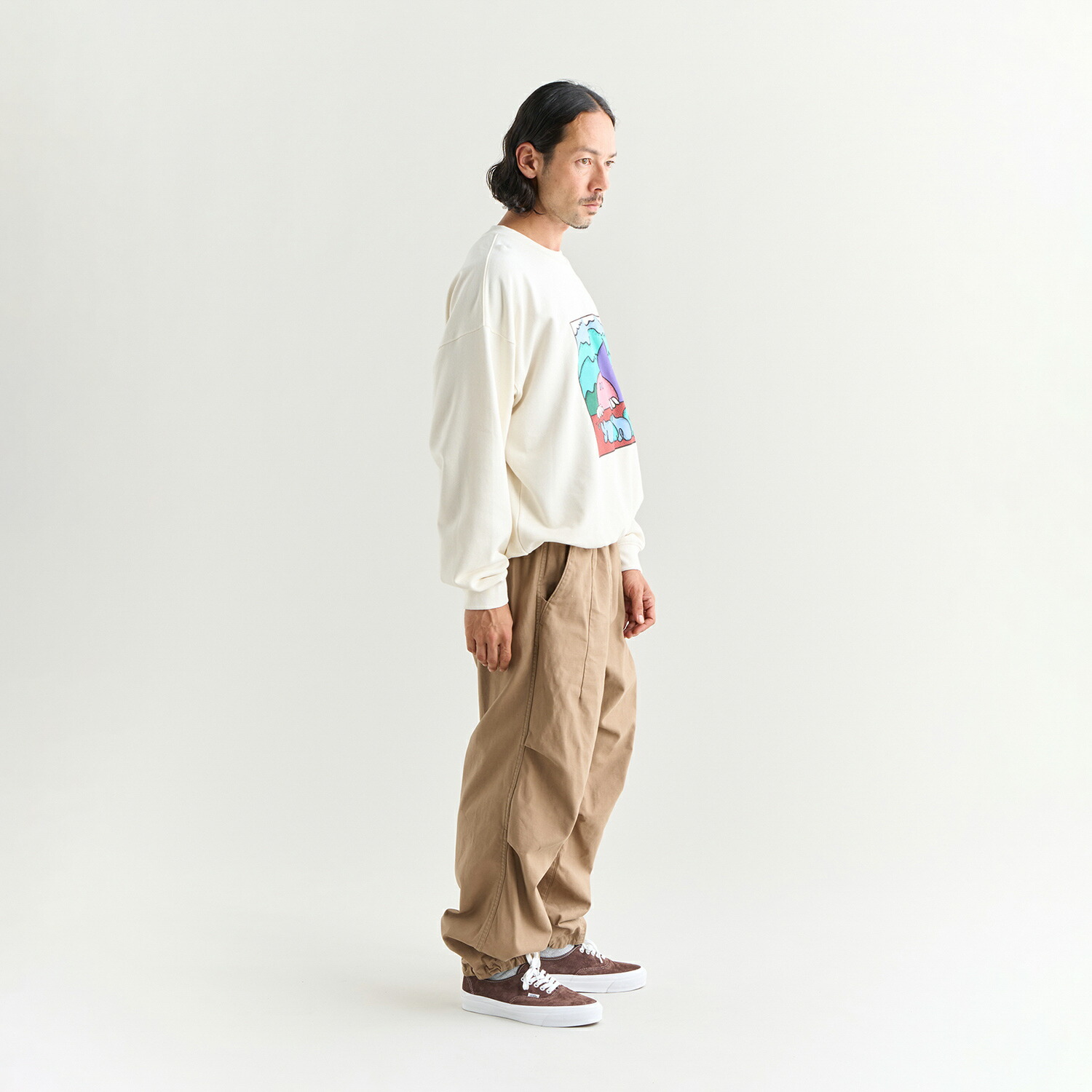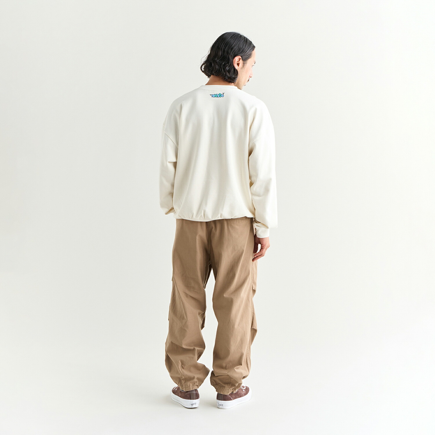 백새틴 코튼 원단으로 제작된 이지 팬츠입니다. 힙과 허벅지 부분에 여유를 준 릴랙스 핏은 활동성을 높이면서도 답답함이 없습니다. 허리는 밴드와 드로우스트링으로 편안합니다.