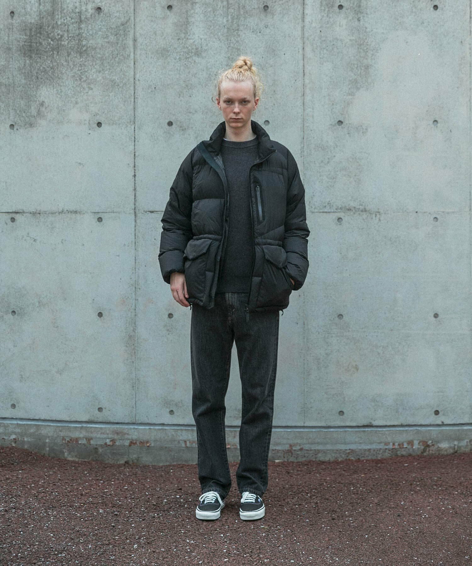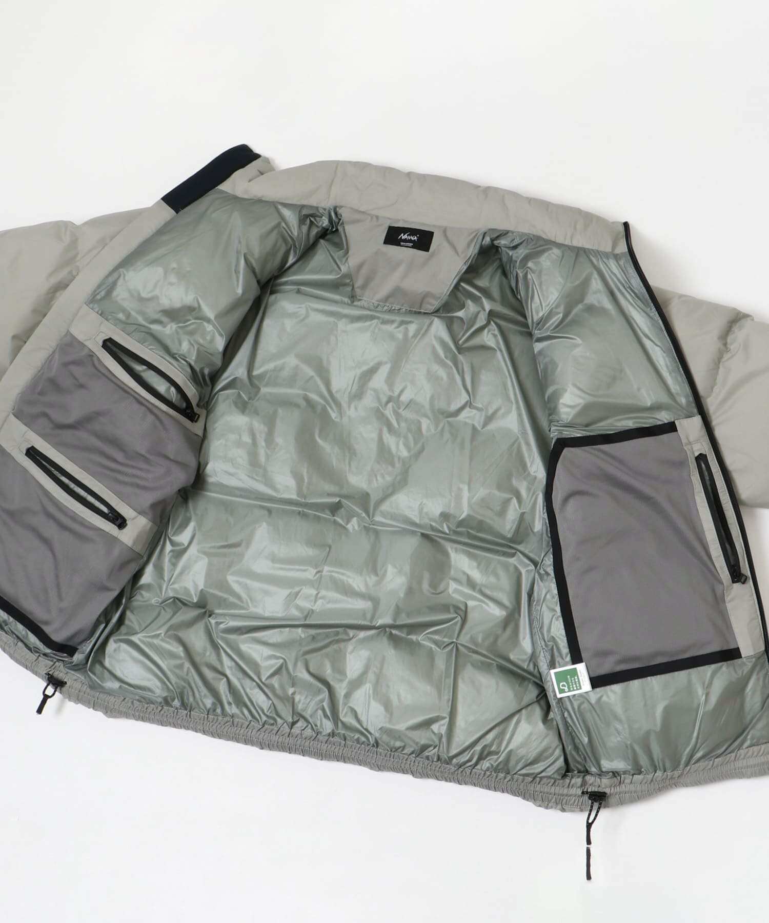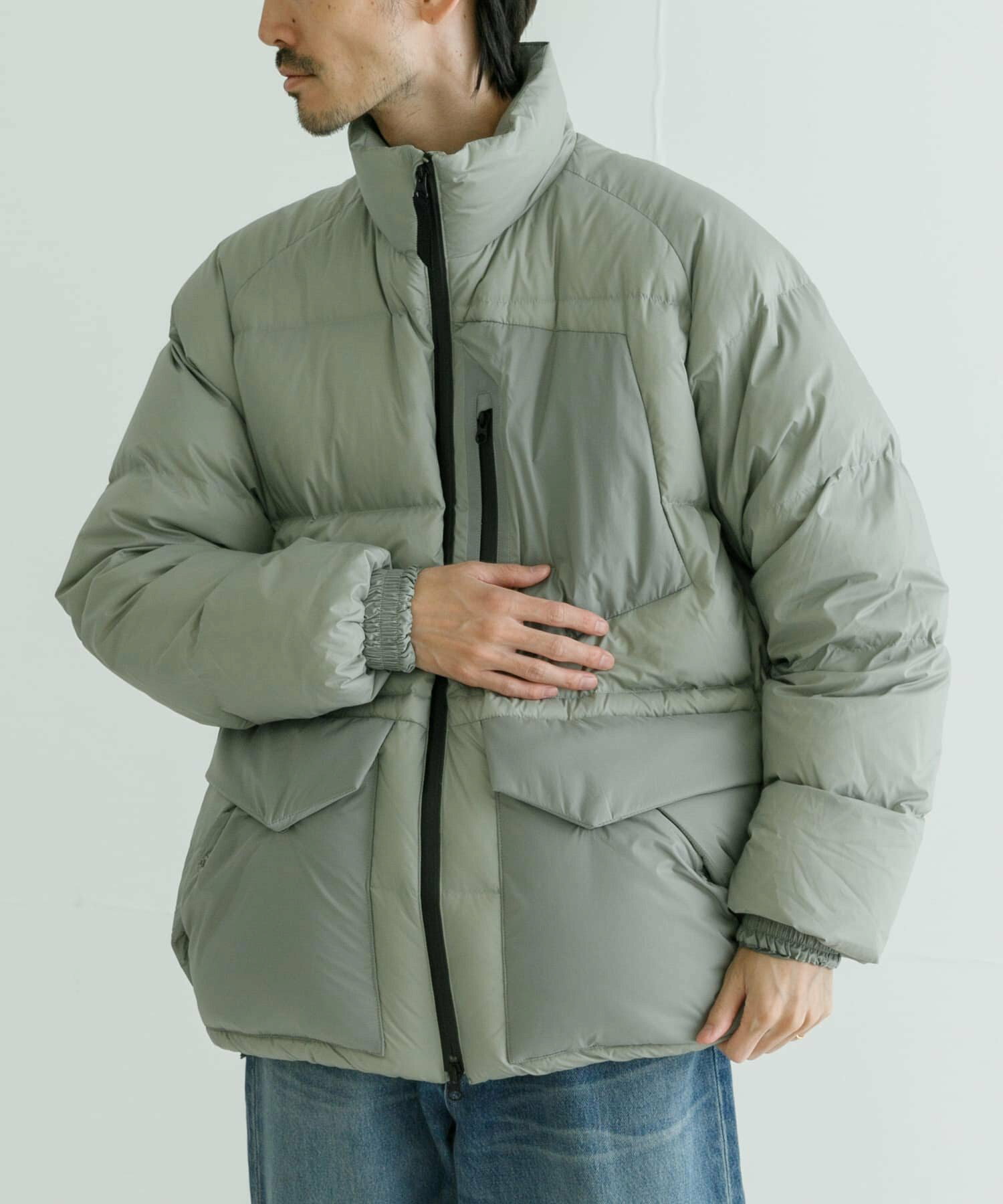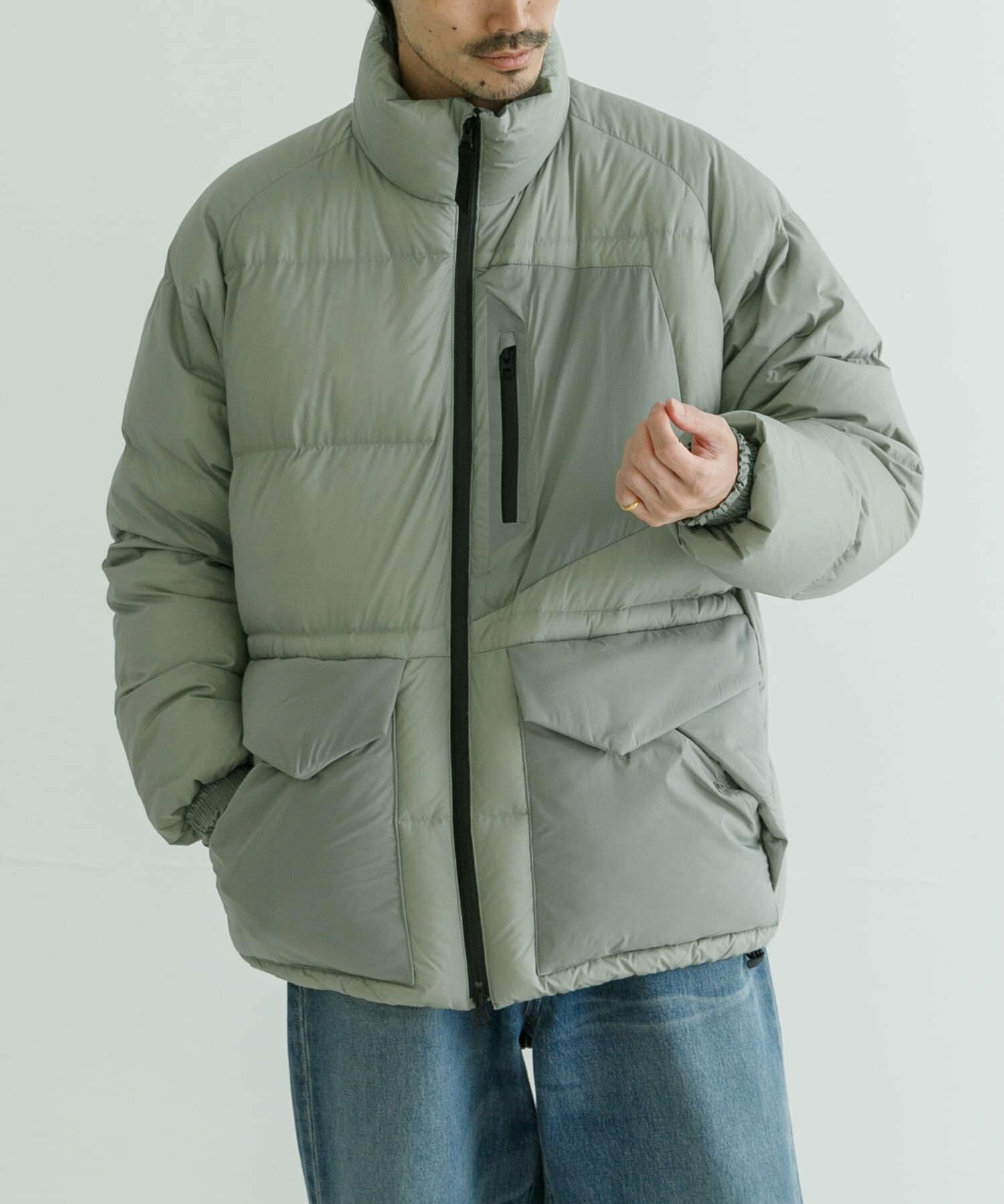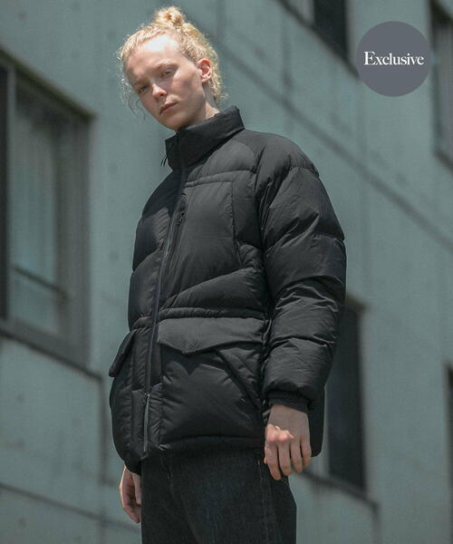 발수성, 보온성, 경량성이 뛰어난 하이 스펙 다운 재킷. 스탠드 칼라와 볼륨감 있는 디자인입니다. 부드럽고 가벼워 착용감이 좋습니다. 소맷단과 밑단은 셔링으로 차가운 공기의 침입을 방지합니다. 왼쪽 가슴에 방수 지퍼가 있는 포켓, 허리에 두개의 플랩 포켓이 있습니다.