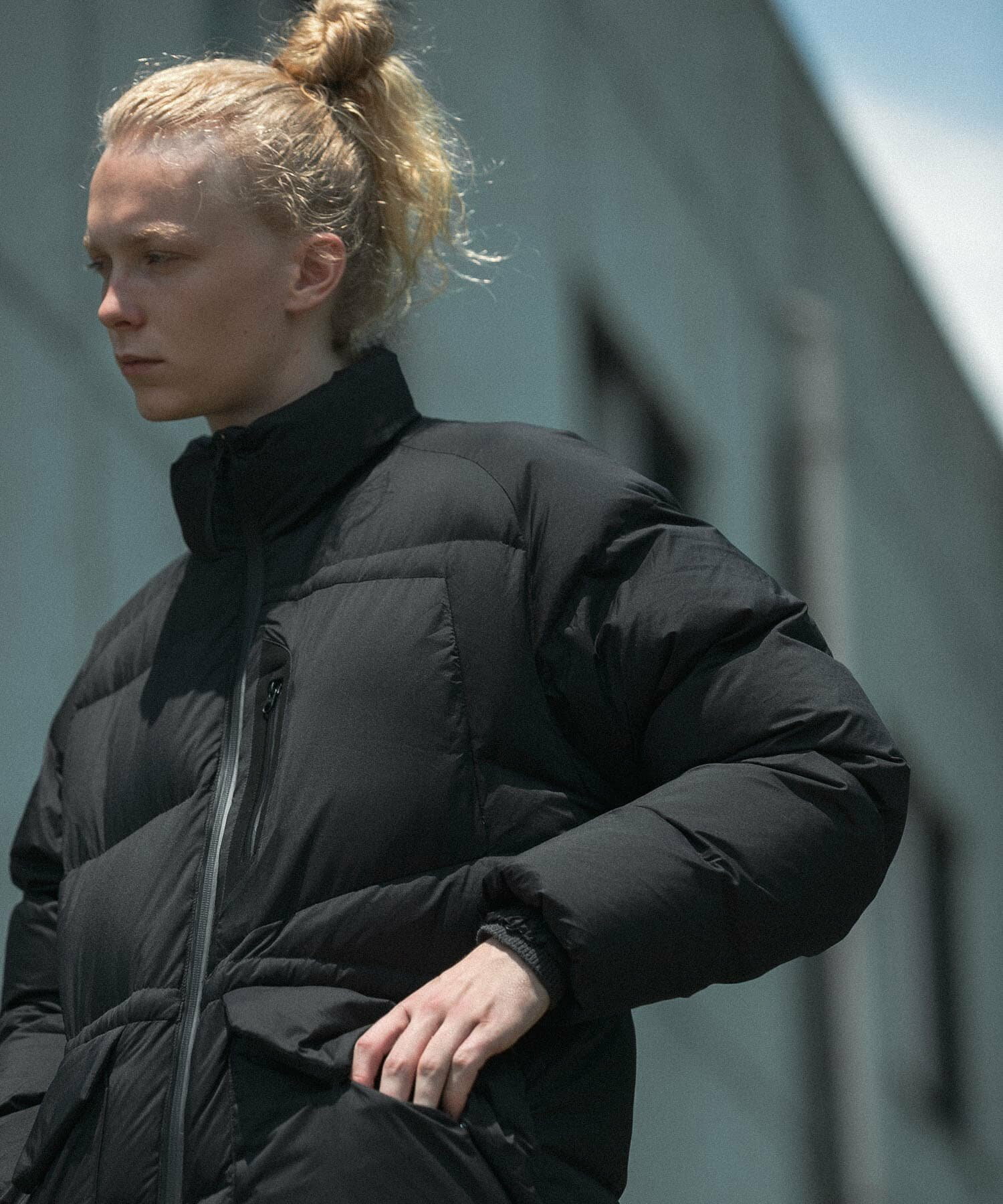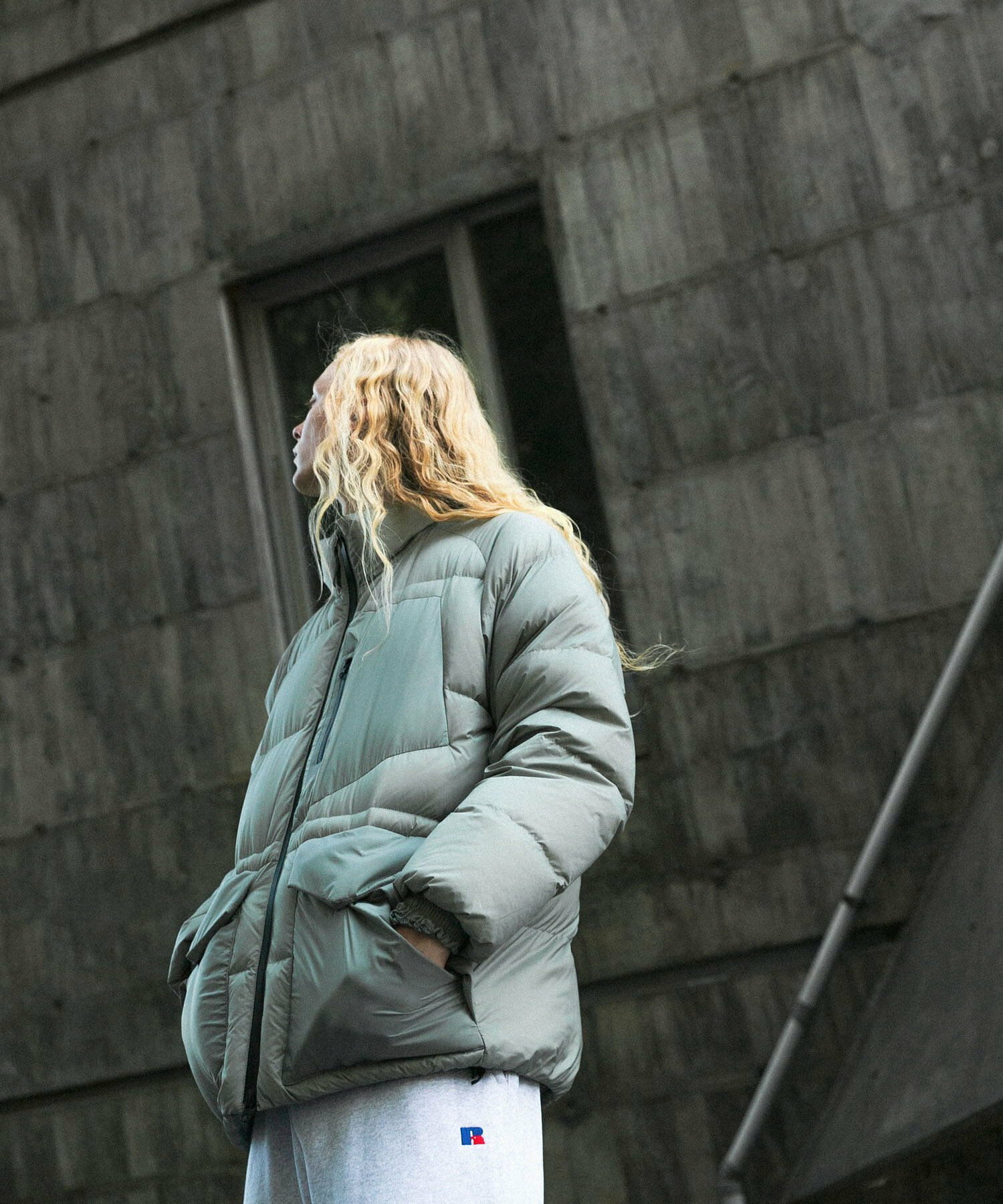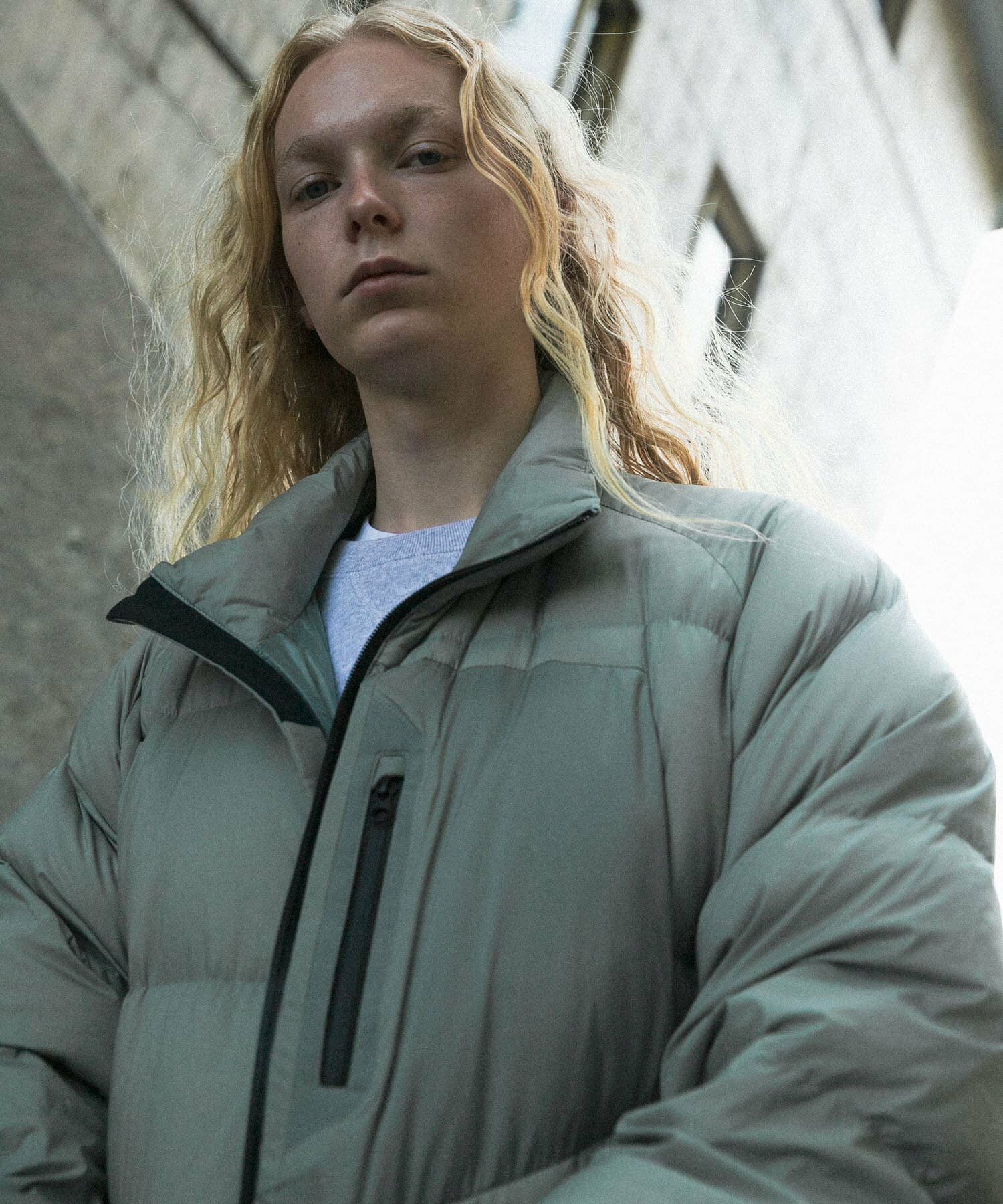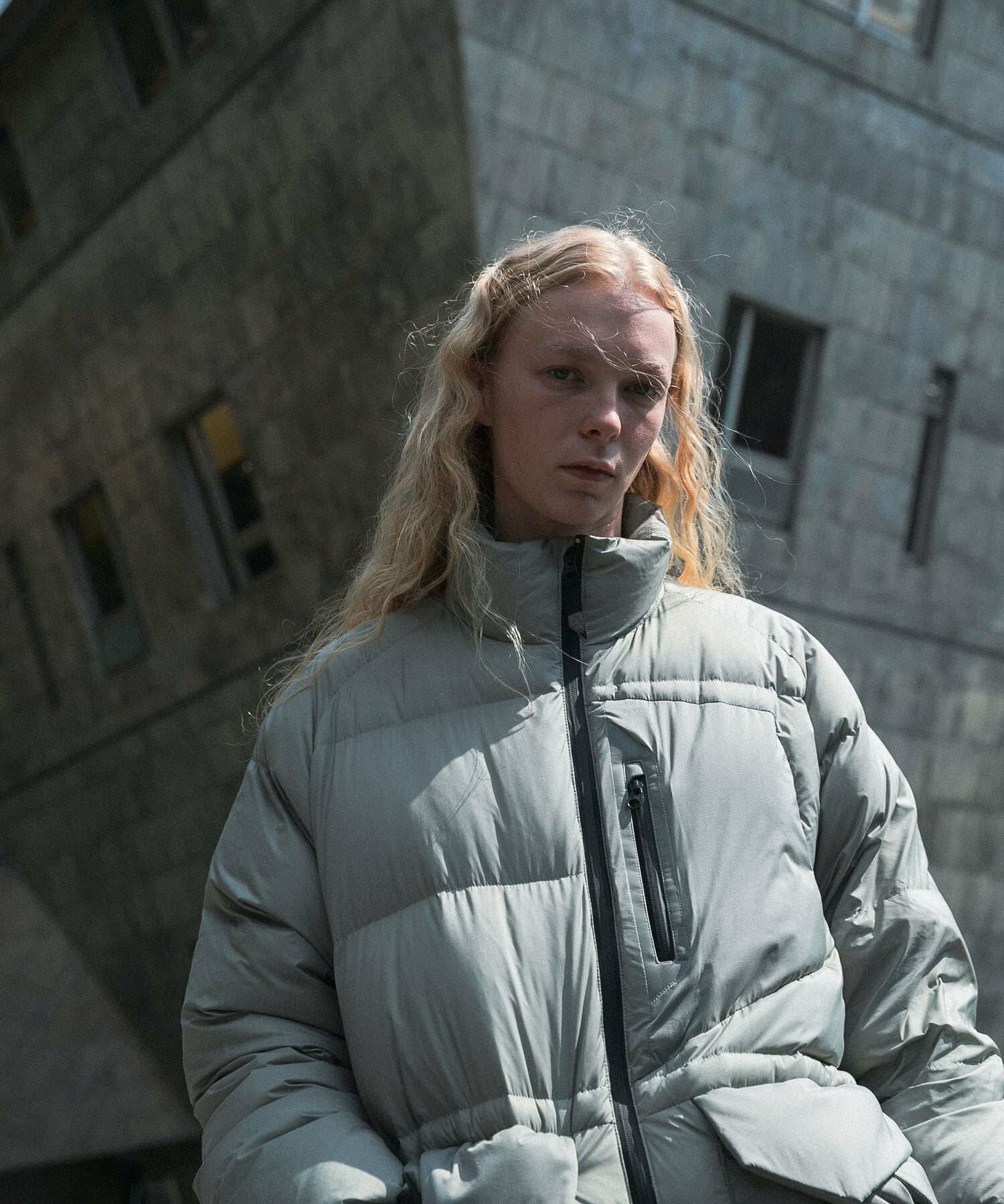 발수성, 보온성, 경량성이 뛰어난 하이 스펙 다운 재킷. 스탠드 칼라와 볼륨감 있는 디자인입니다. 부드럽고 가벼워 착용감이 좋습니다. 소맷단과 밑단은 셔링으로 차가운 공기의 침입을 방지합니다. 왼쪽 가슴에 방수 지퍼가 있는 포켓, 허리에 두개의 플랩 포켓이 있습니다.