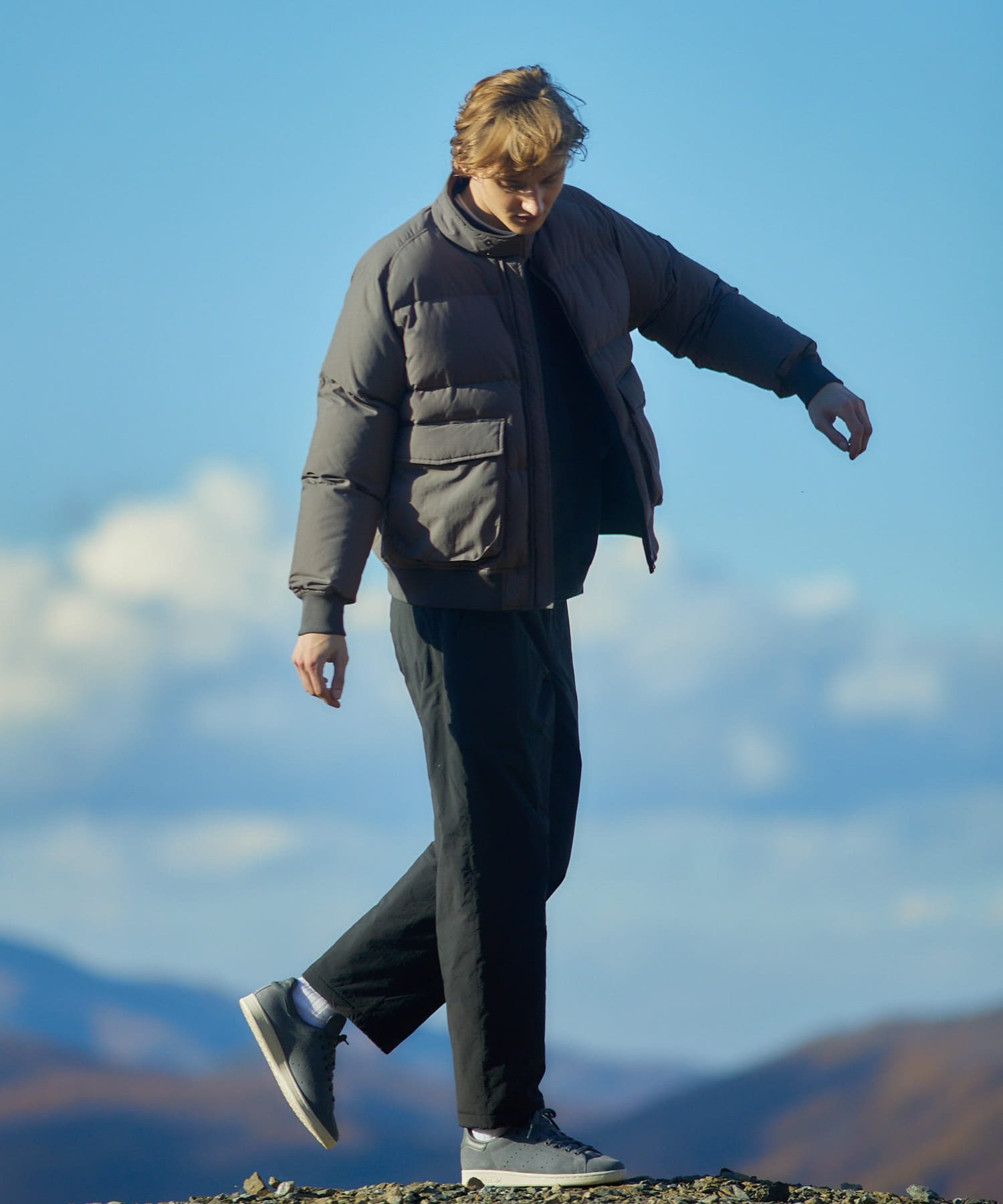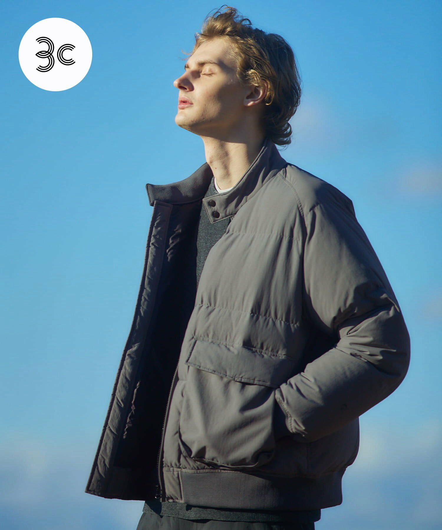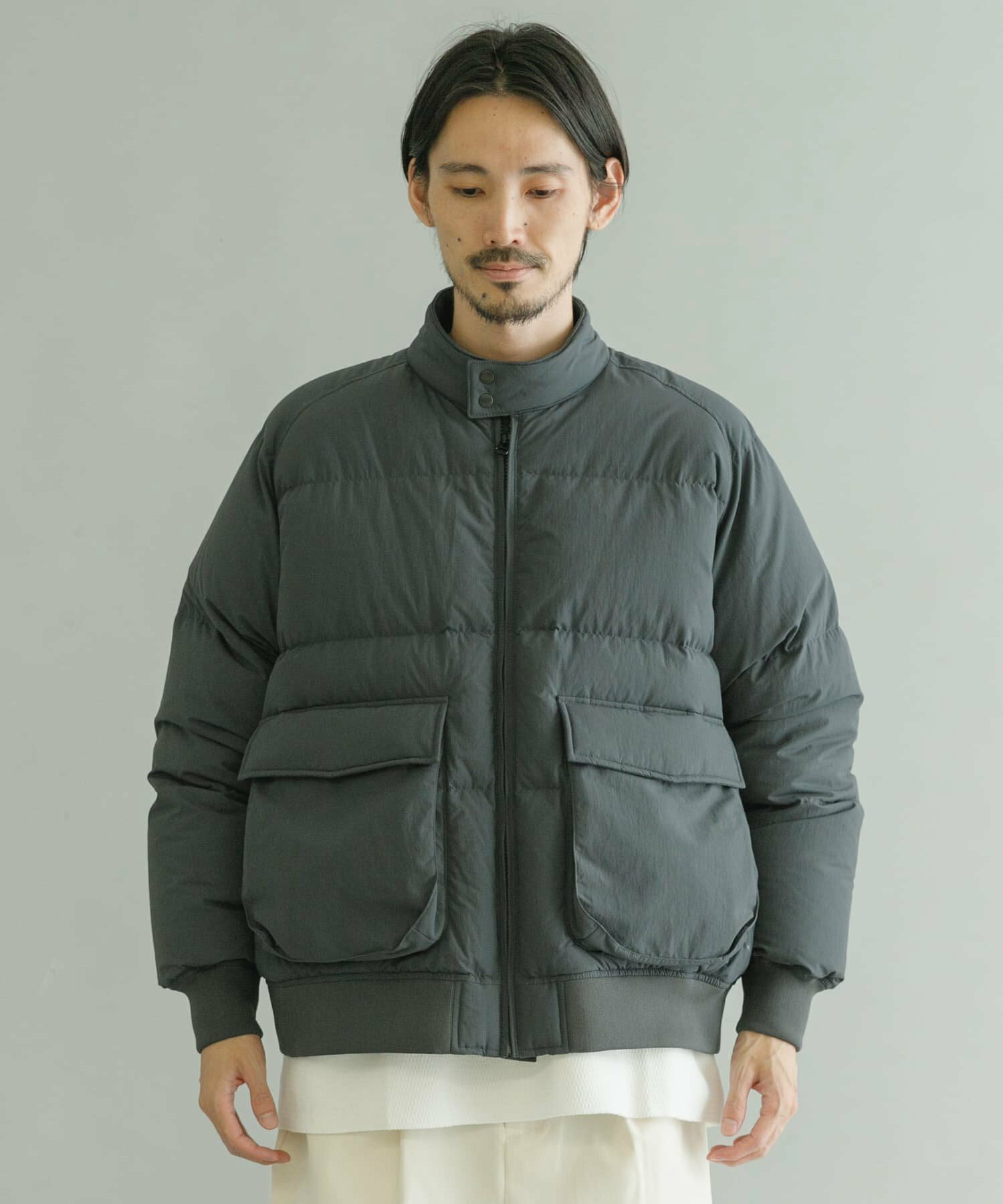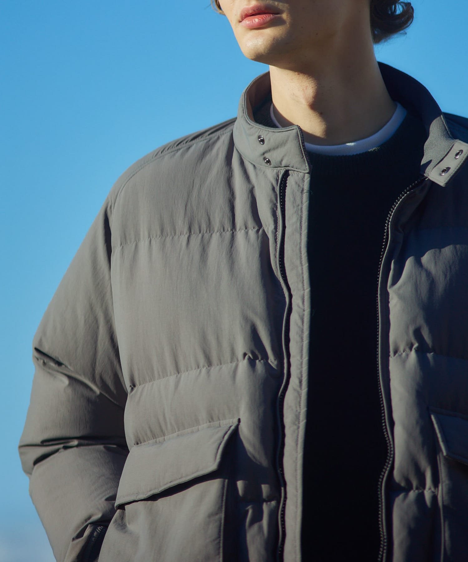 레트로 느낌이 있는 스탠드업 칼라의 볼륨 다운 재킷. 소재는 Komatsu Matere의 독자적인 “Dantotsu Water Repellent”를 사용하여 뛰어난 발수성, 내구성이 있습니다.