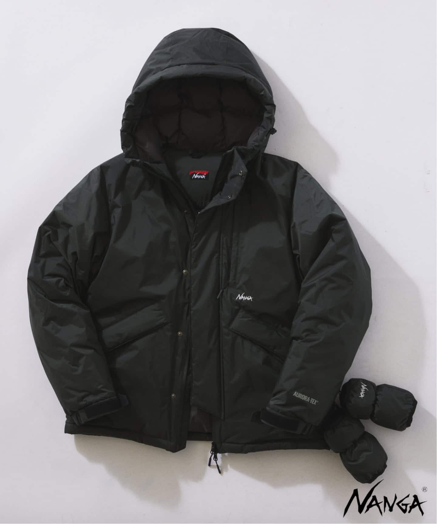 겉감에는 NANGA가 독자적으로 개발한 발수·방수·투습 소재 **AURORA-TEX®**를 사용하여 비와 눈 등 악천후로부터 몸을 보호하면서도 쾌적함을 유지할 수 있도록 설계되었습니다.