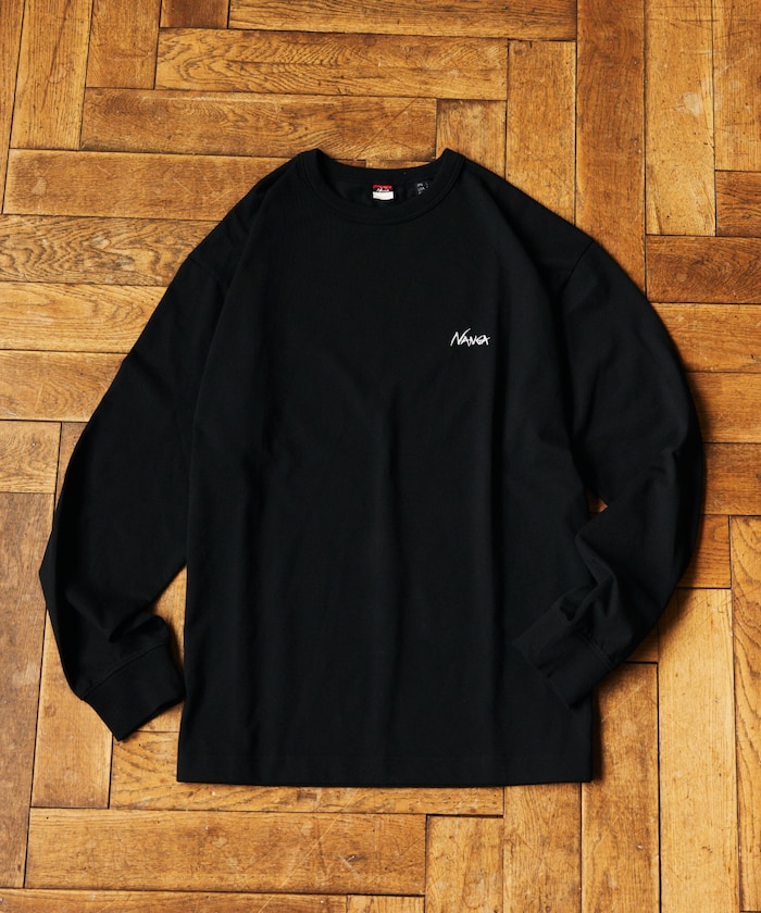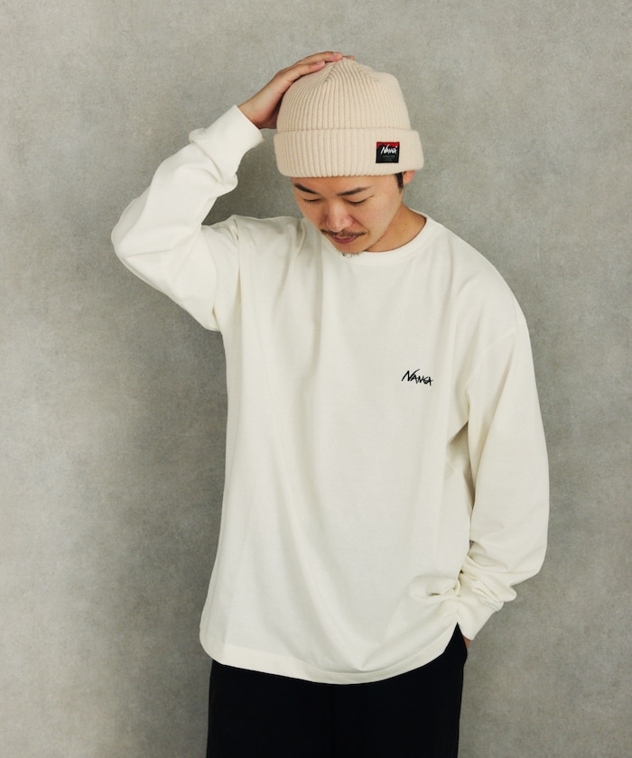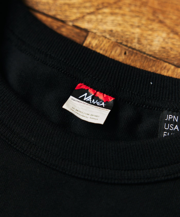 앞면에는 난가 로고 자수, 뒷면에 로고 프린트가 있는 디자인의 티. 구김이 적고 부드러운 촉감의 소재를 사용했습니다.