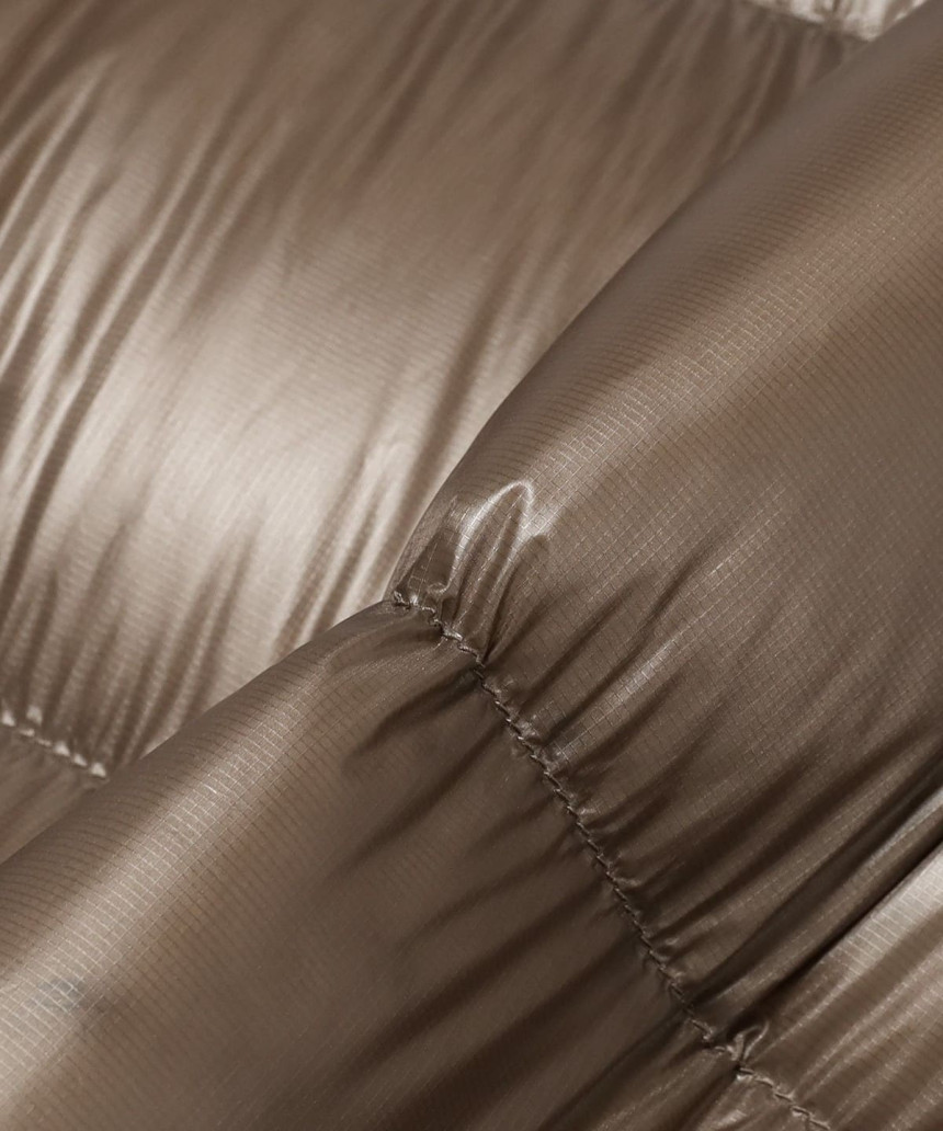 충전재로는 700 필파워의 리사이클 다운 을 사용하여 보온성을 확실히 유지함과 동시에 지속 가능성(서스테이너블)도 고려했습니다. 지퍼 뒷면의 덧대어진 부분(지퍼 플랩)에도 다운을 채워 넣어 지퍼 틈으로 들어오는 냉기 침투를 줄였습니다. 한겨울의 혹한의 NY에서도 따뜻하게 지낼 수 있는 다운 재킷 을 목표로 개발되었습니다.