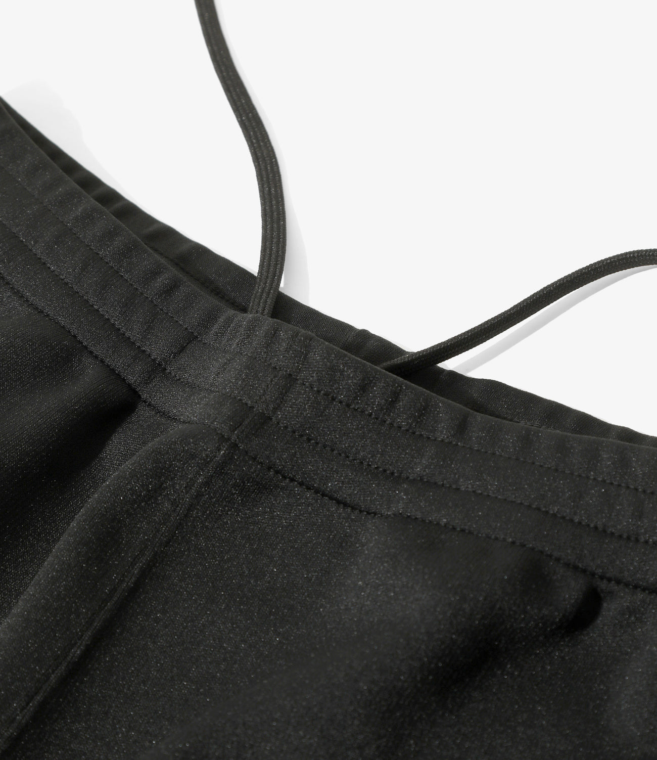 통기성과 신축성이 뛰어난 폴리에스터 저지 원단을 사용하여 하루 종일 편안한 착용감의 팬츠. 테이퍼드가 들어간 슬림한 실루엣과 허리 뒷부분의 지퍼 포켓 디테일이 특징입니다.