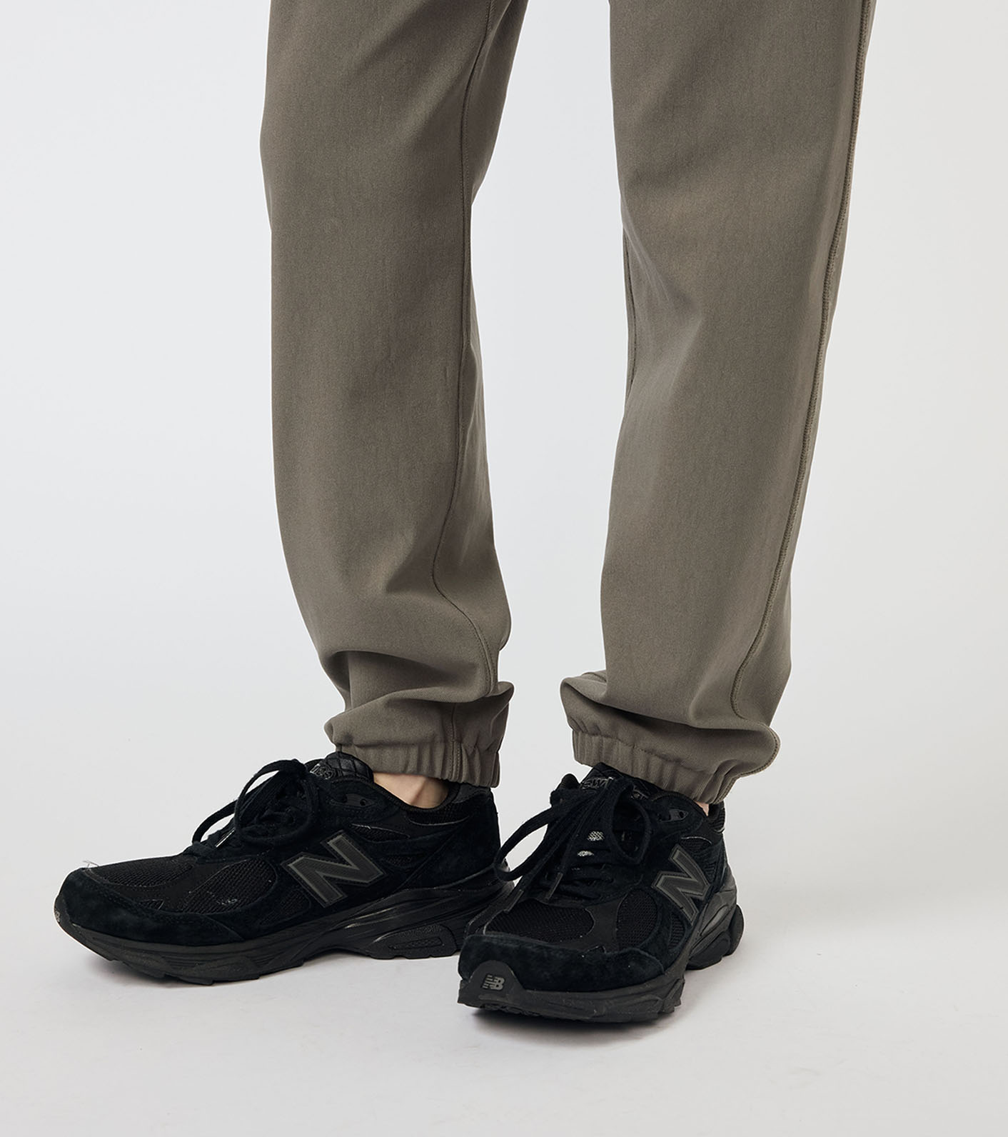 광택이 없는 트리코트 소재를 사용한 슬림 팬츠