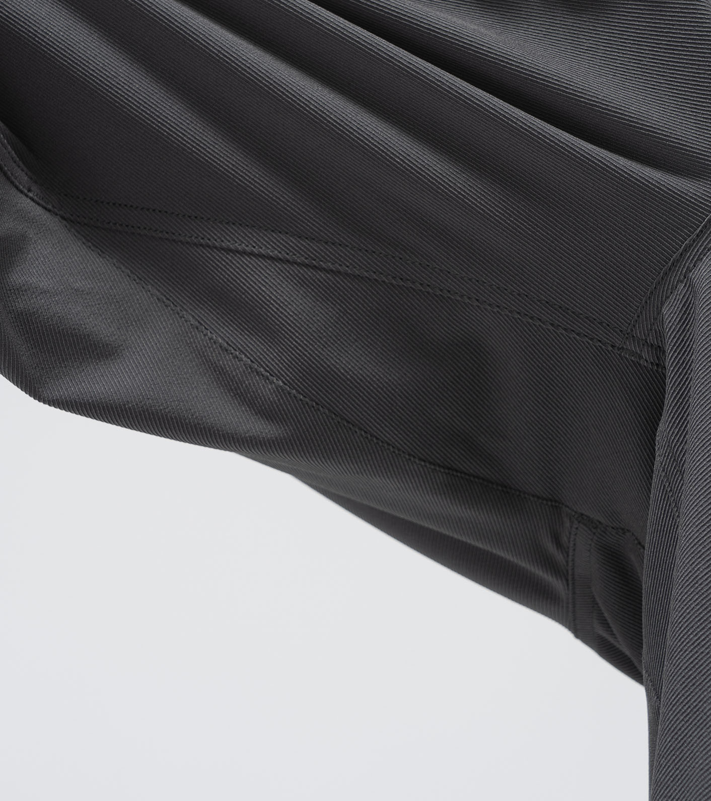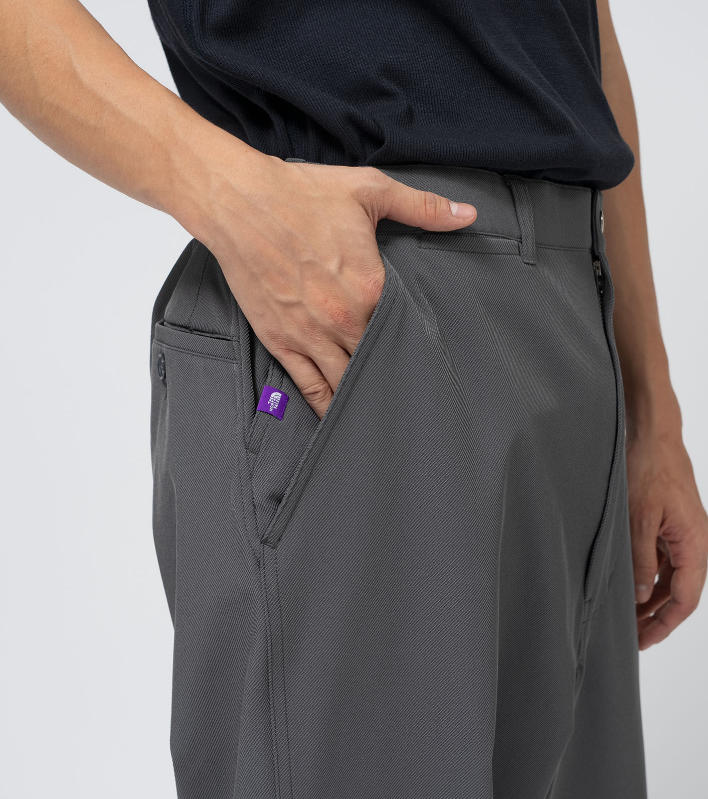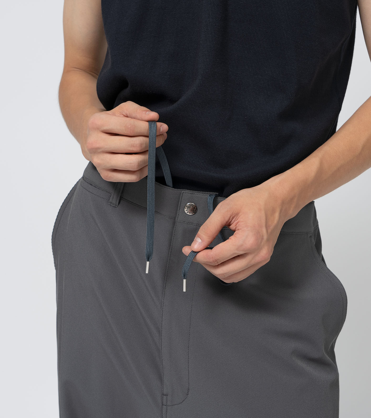 허리는 신축성 있는 셔링과 벨트 루프가 있으며 오른쪽 엉덩이에 더블 포켓이 있습니다.