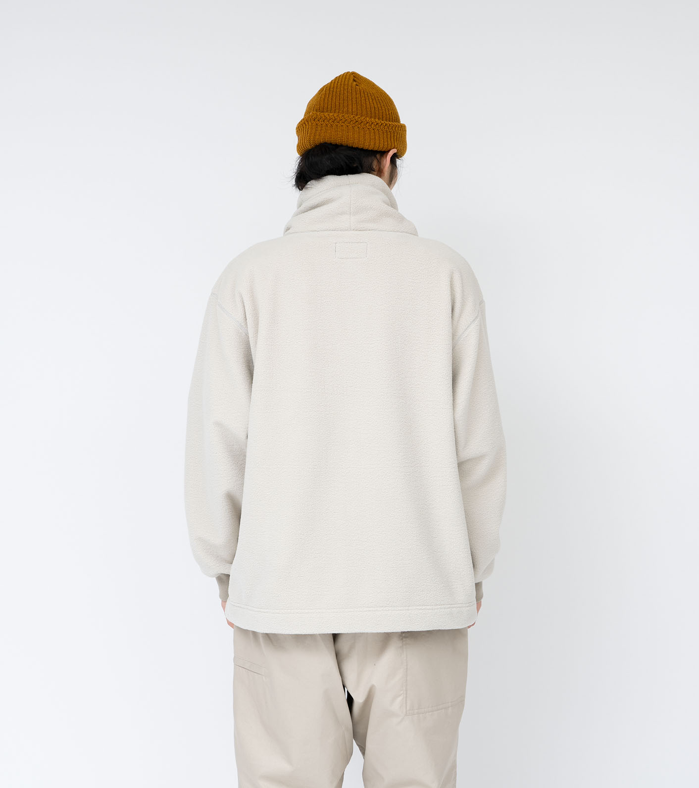 리사이클 폴리에스테르 플리스를 사용한 필드 풀오버. 독특한 라지 넥 디자인이며 밑단 스핀들 코드로 실루엣을 조절할 수 있습니다. 약간 긴 길이의 오버사이즈 실루엣입니다.