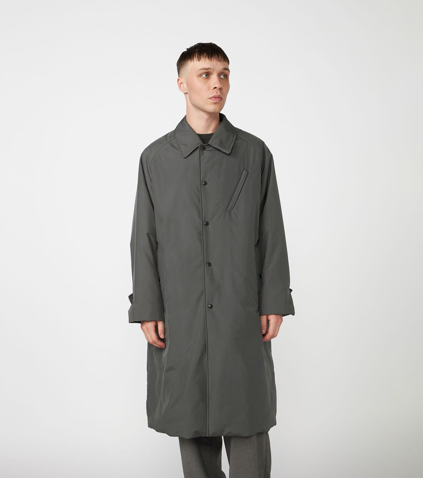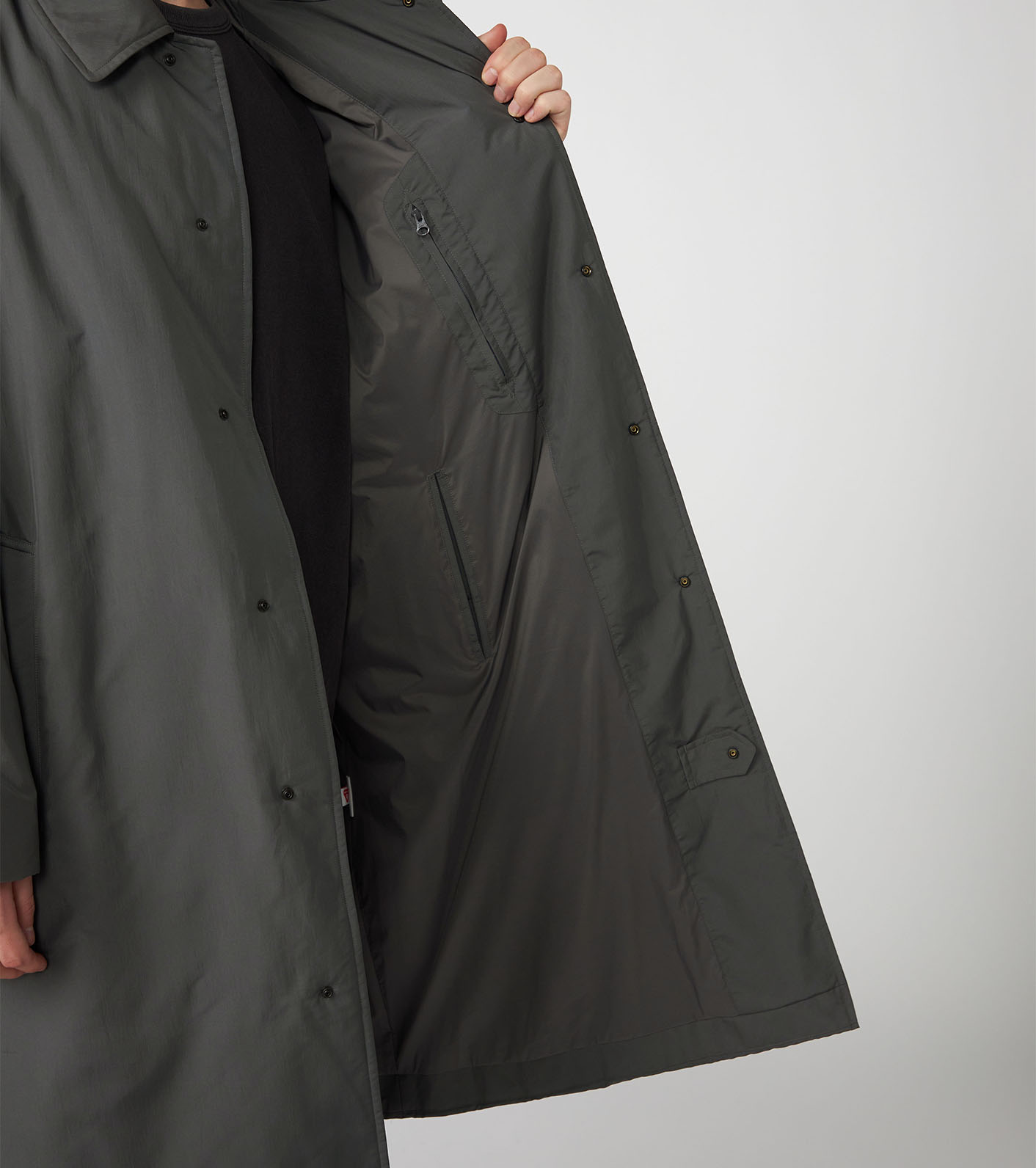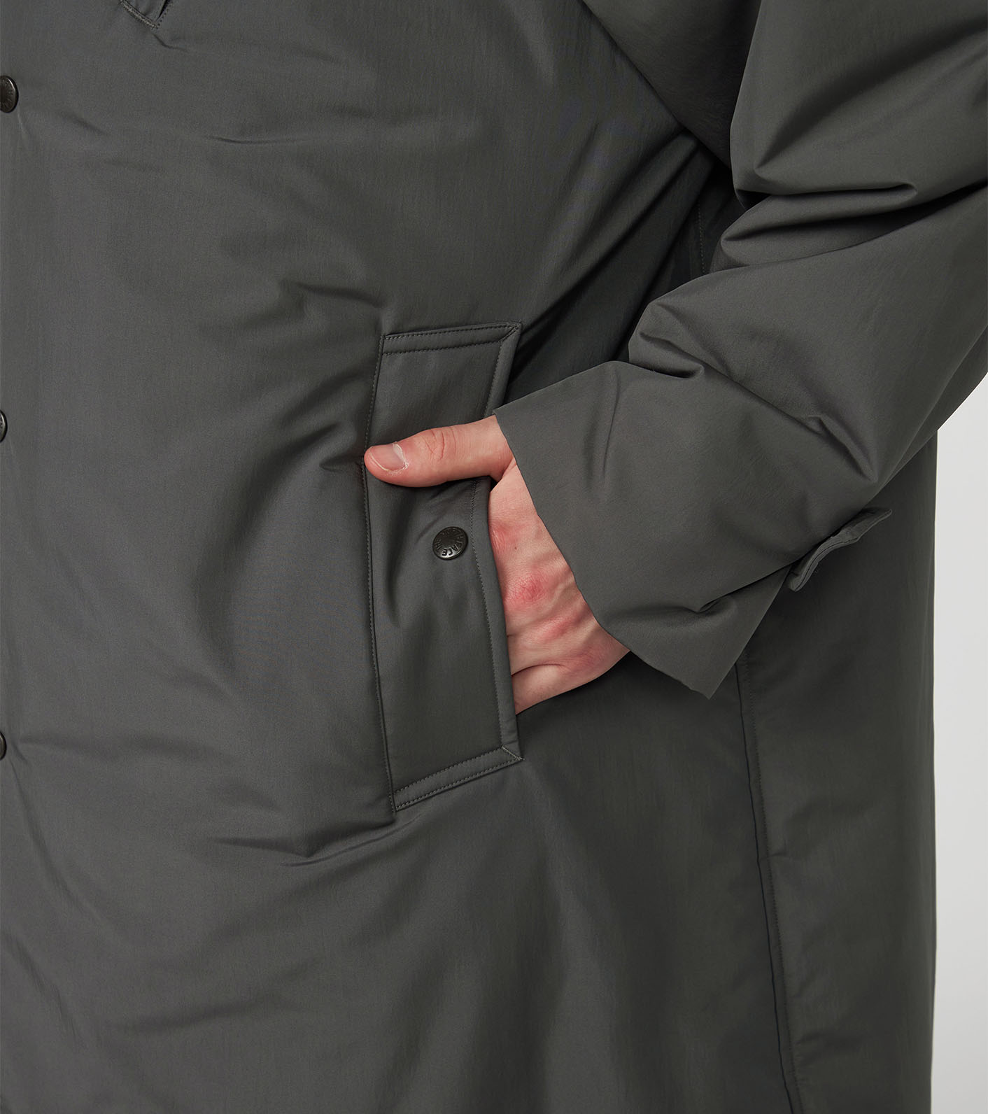 리사이클 폴리에스터 태피터를 사용한 Soutien 칼라 코트. Grizzly Peak 자켓의 포켓 디테일을 결합한 디자인입니다.
