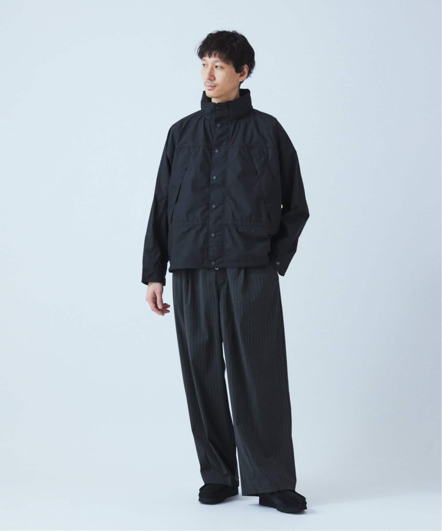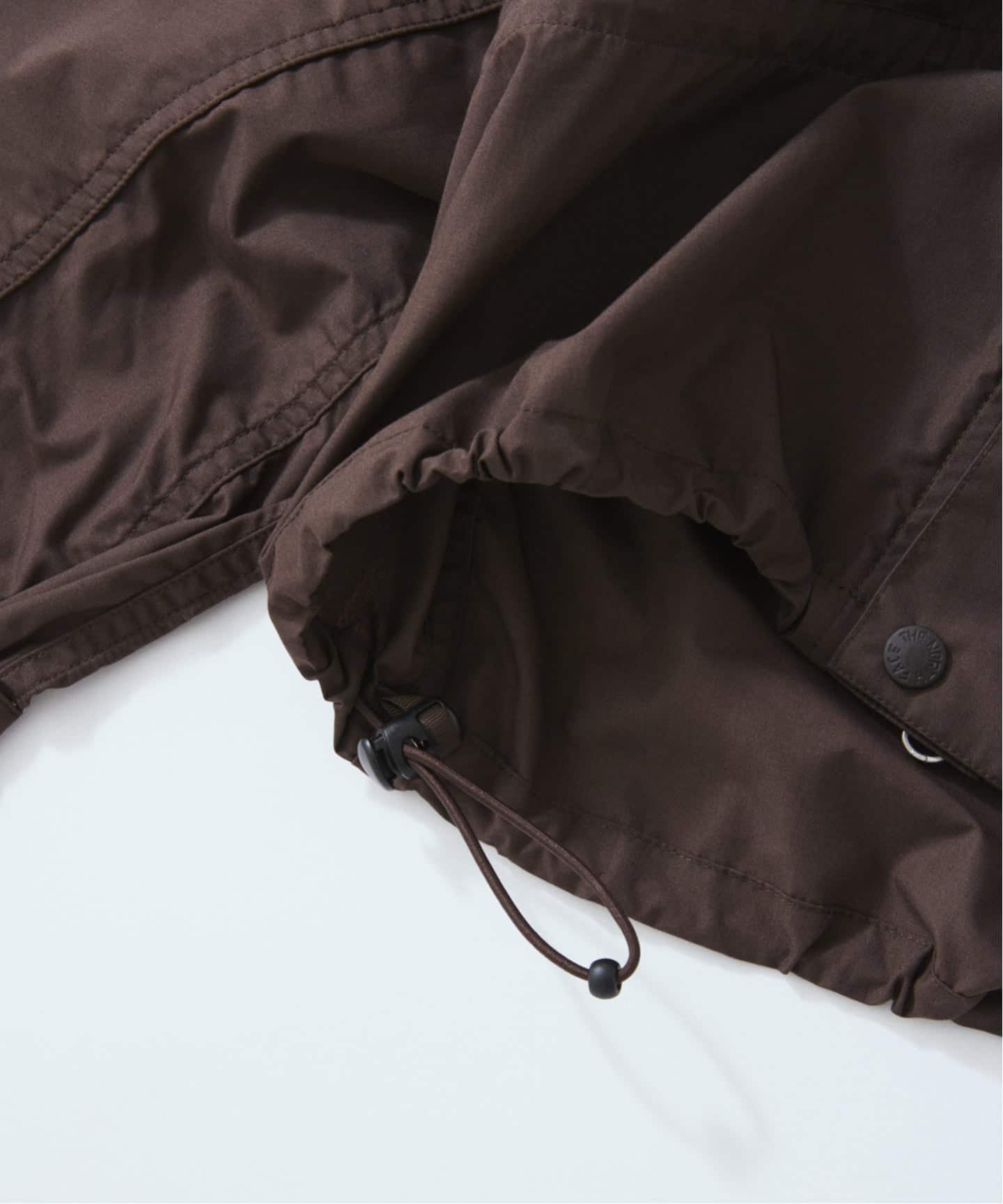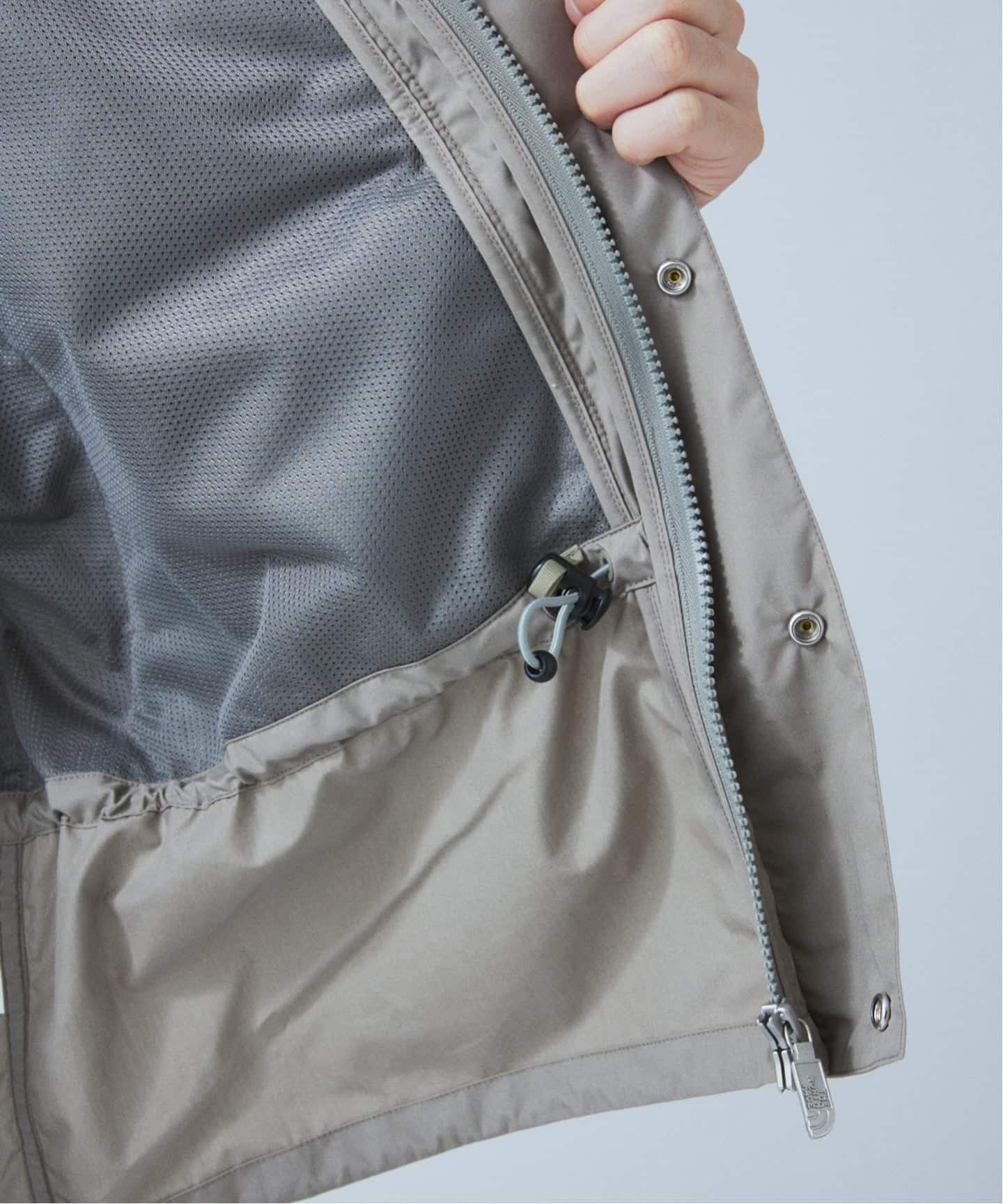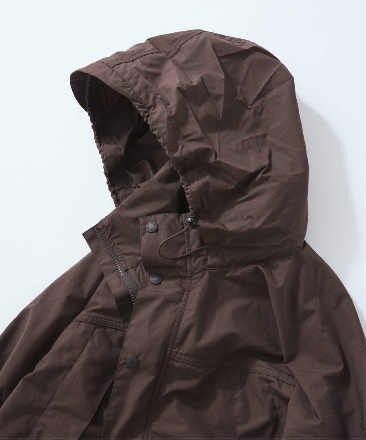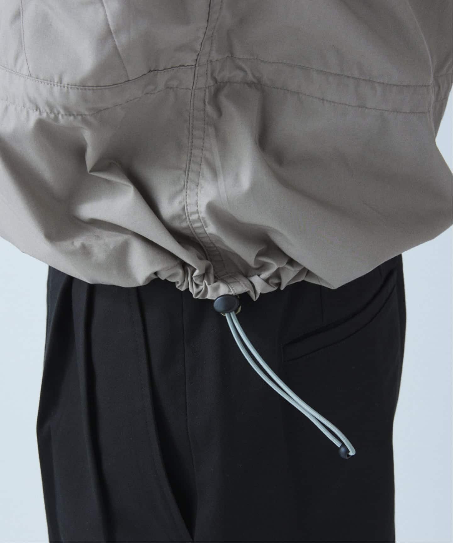 후드에 수납할 수 있는 스탠드 업 칼라, 실루엣을 조절할 수 있는 밑단의 드로우코드가 있습니다.
