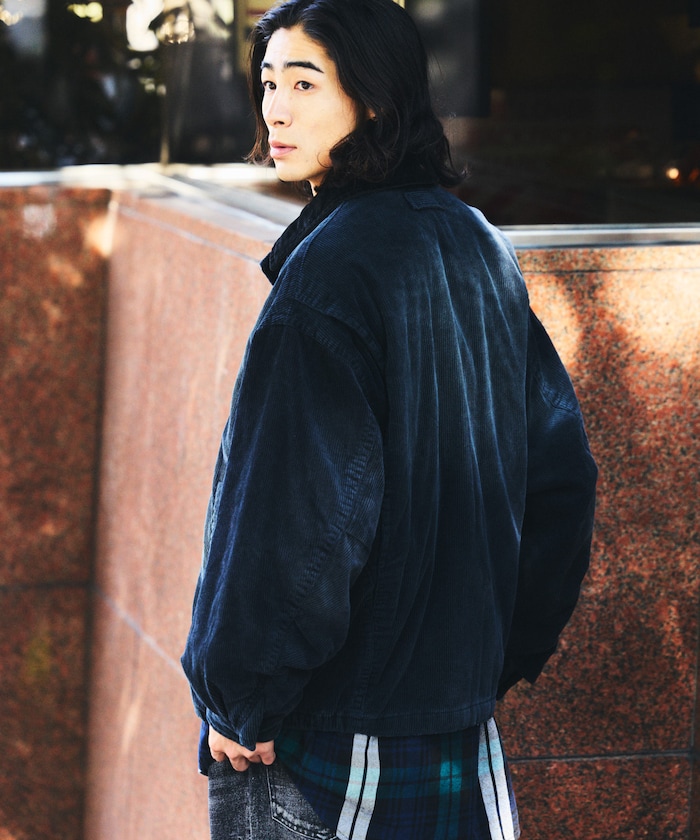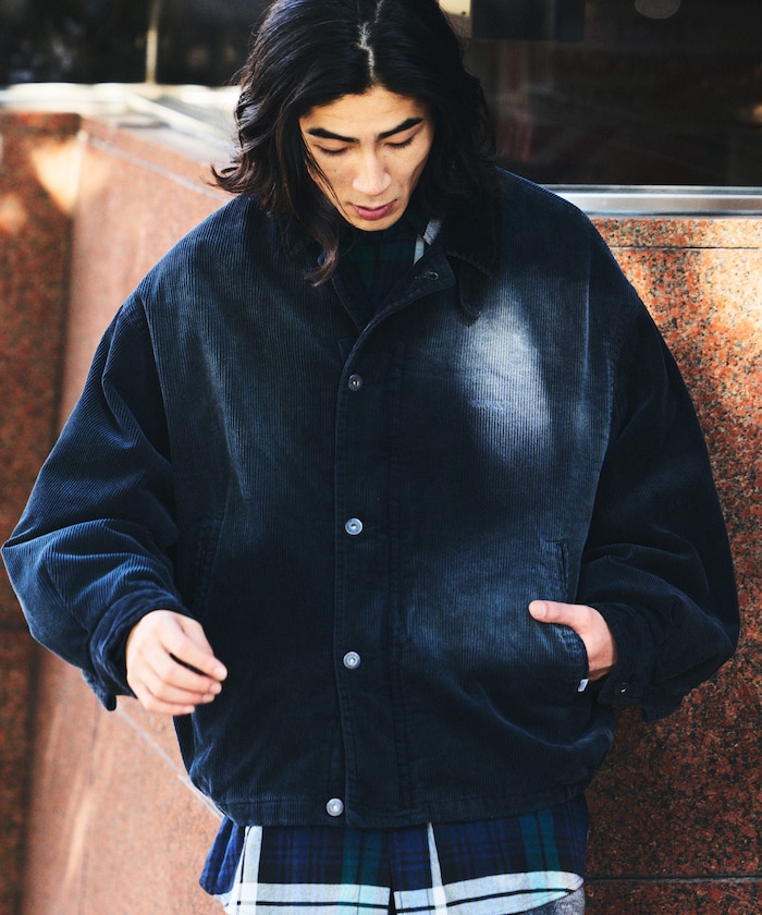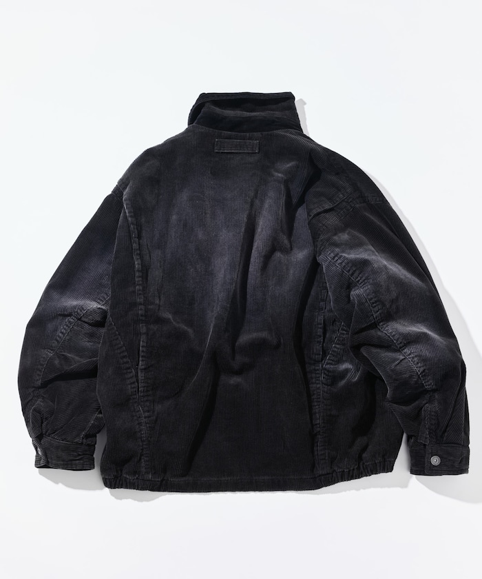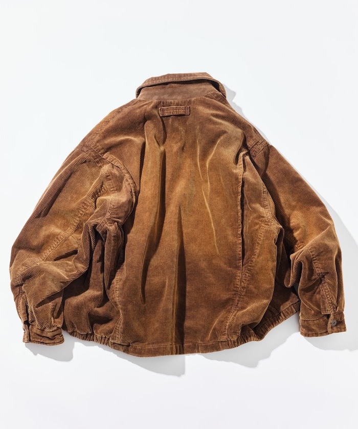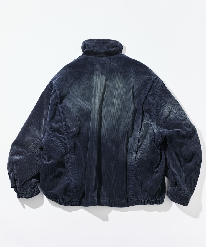 굵은 골의 코듀로이 원단을 사용한 블루종. 목부분에 친 스트랩이 있어 스탠드넥으로 입을 수 있습니다.밑단 고무 셔링으로 둥근 실루엣이며 안감 퀼팅으로 보온성이 우수합니다.