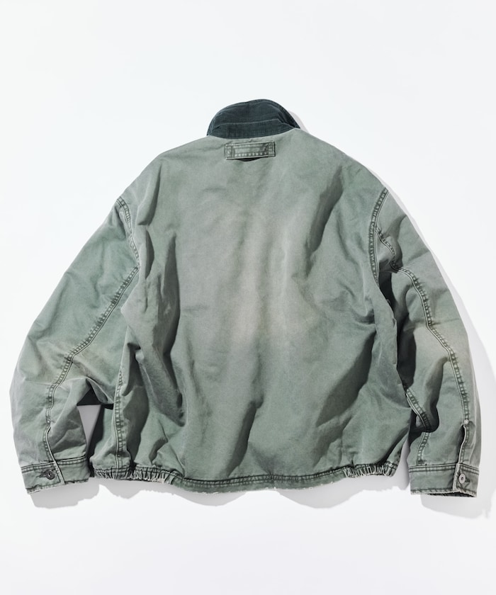 고밀도 치노 트윌 원단을 사용하고, 가먼트다잉과 가공 처리로 독특한 에이징과 빈티지한 분위기의 재킷.