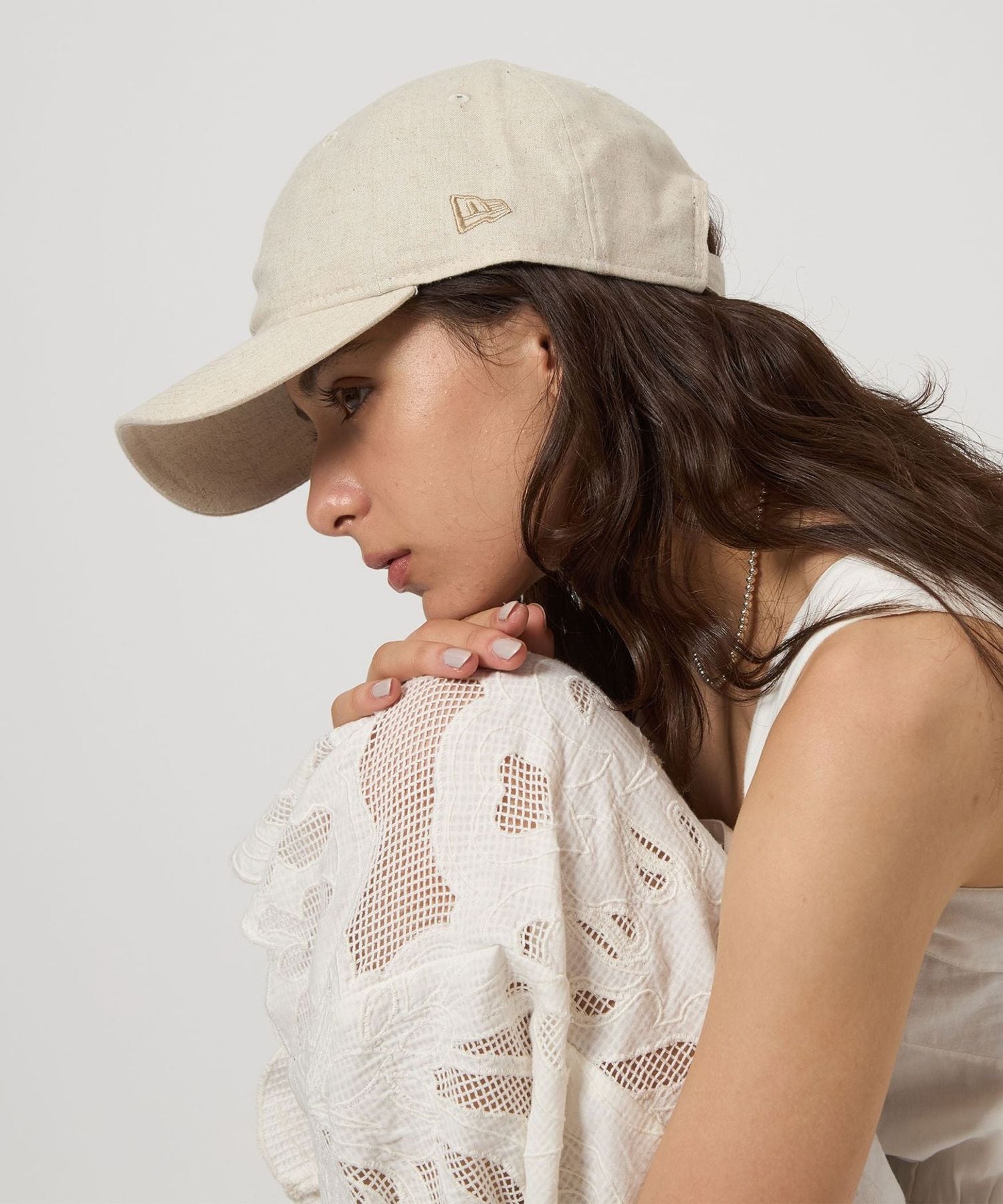 앞면에 자수가 없는 심플한 디자인이며 뉴에라의 로고는 원단과 동일한 컬러 자수로 고급스럽고 은은한 포인트입니다.