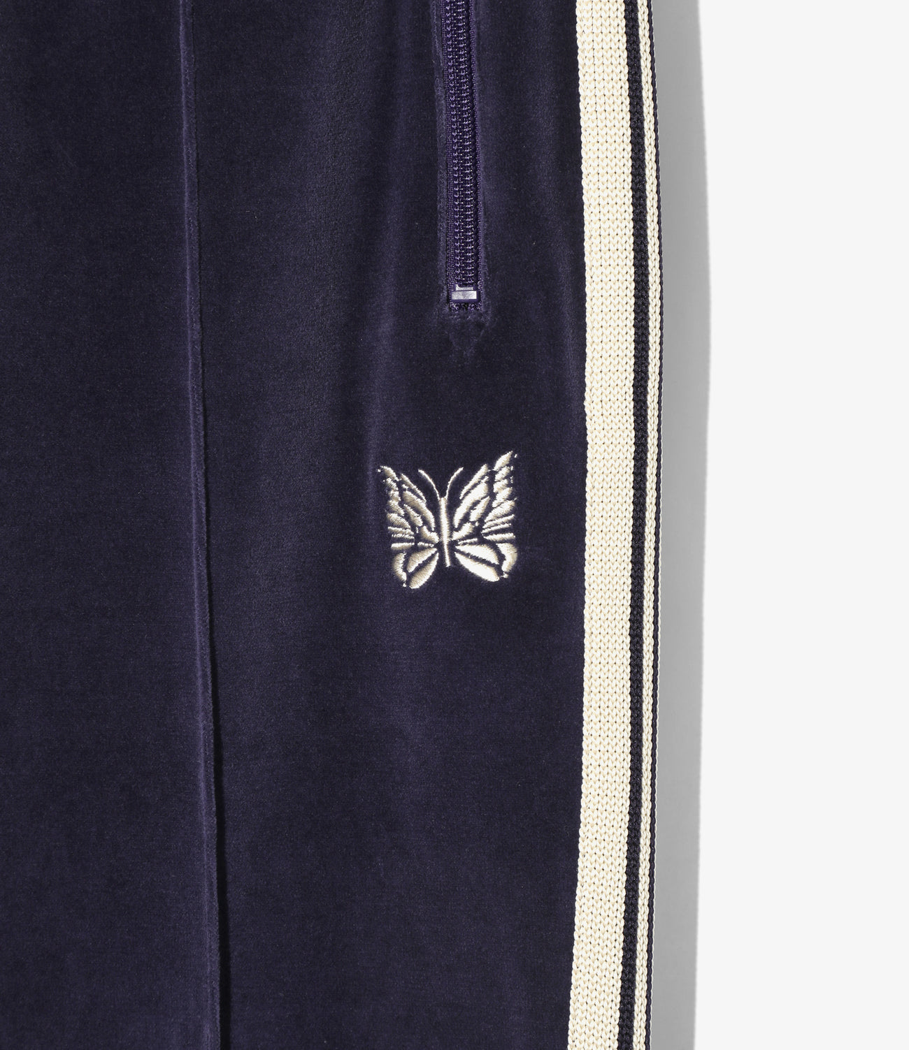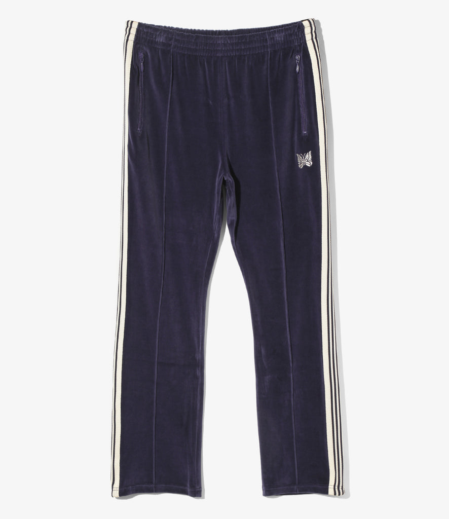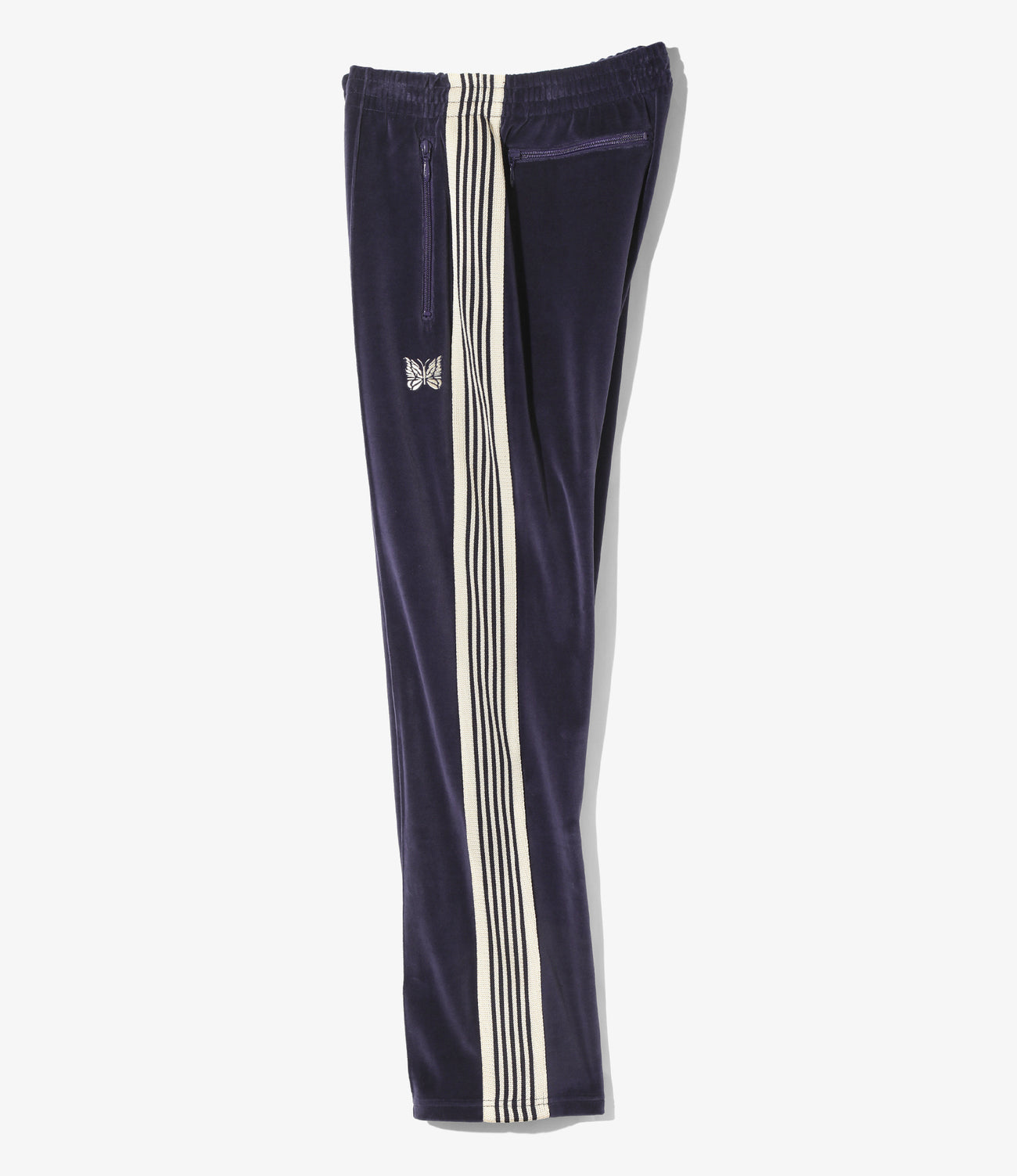 NEEDLES의 인기 소재 중 하나인 벨벳 소재를 사용한 트랙 팬츠. 은은한 광택감과 부드러운 색감이 특징입니다.