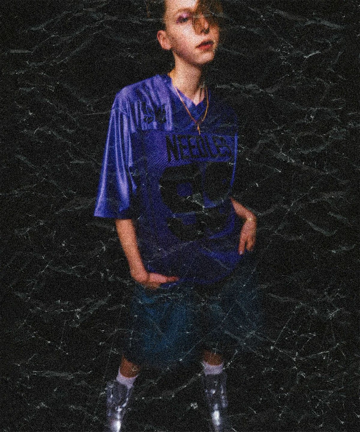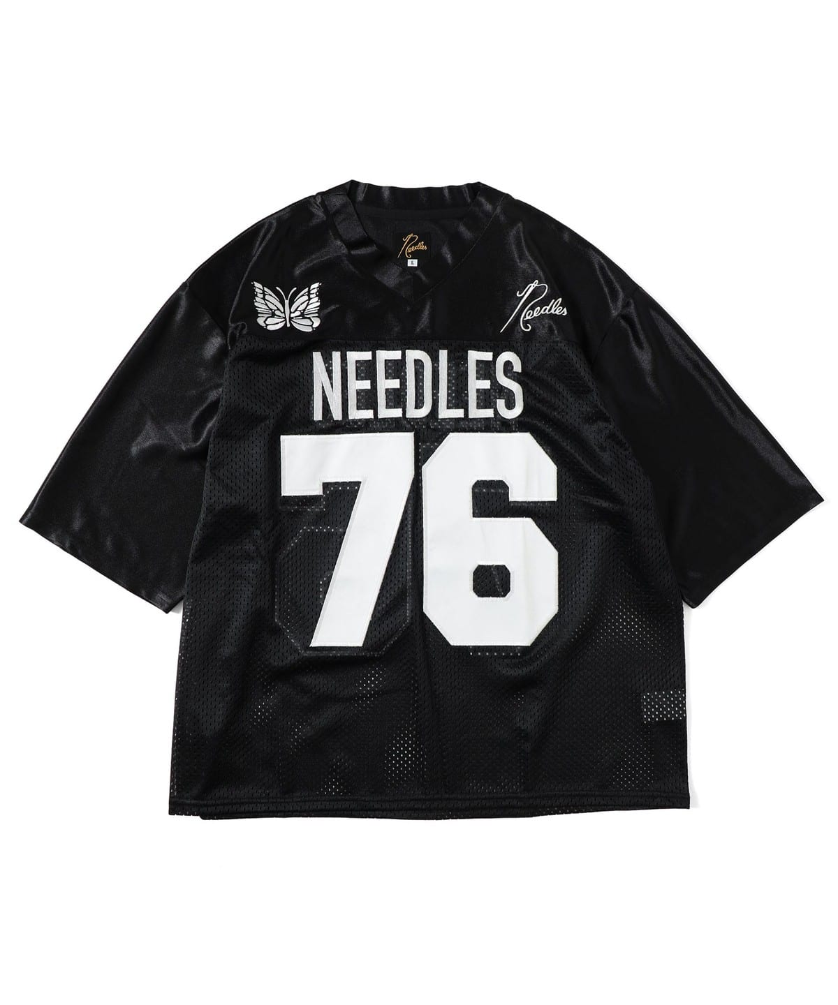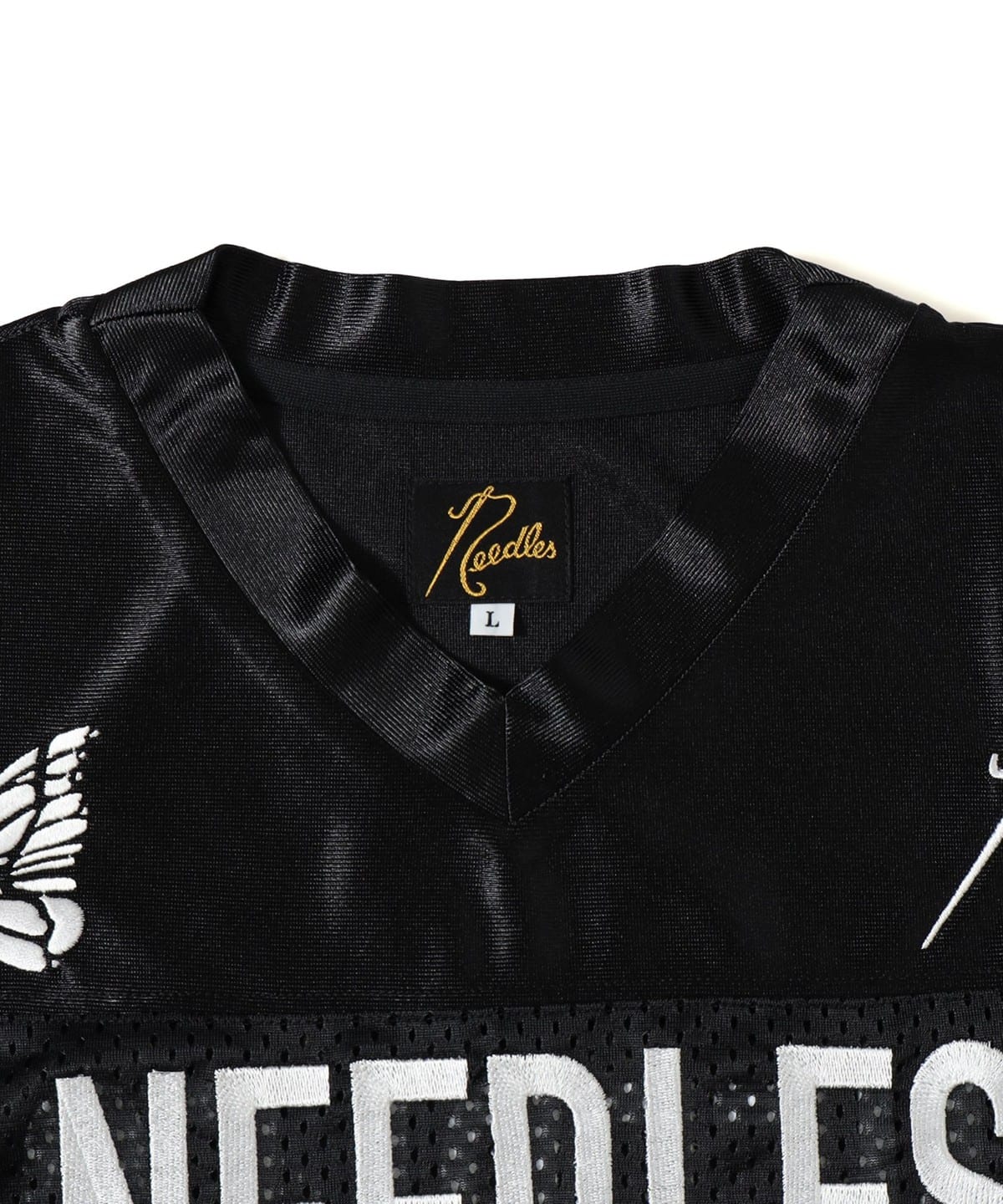 풋볼티셔츠를 베이스로 니들스와 빔즈의 콜라보 디자인 티.