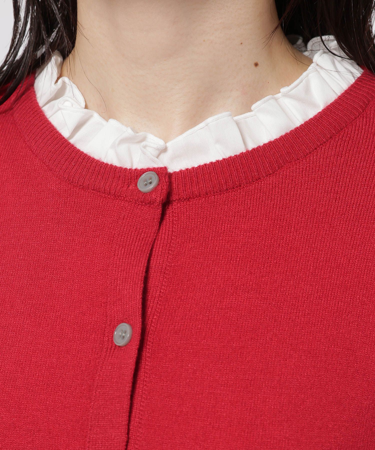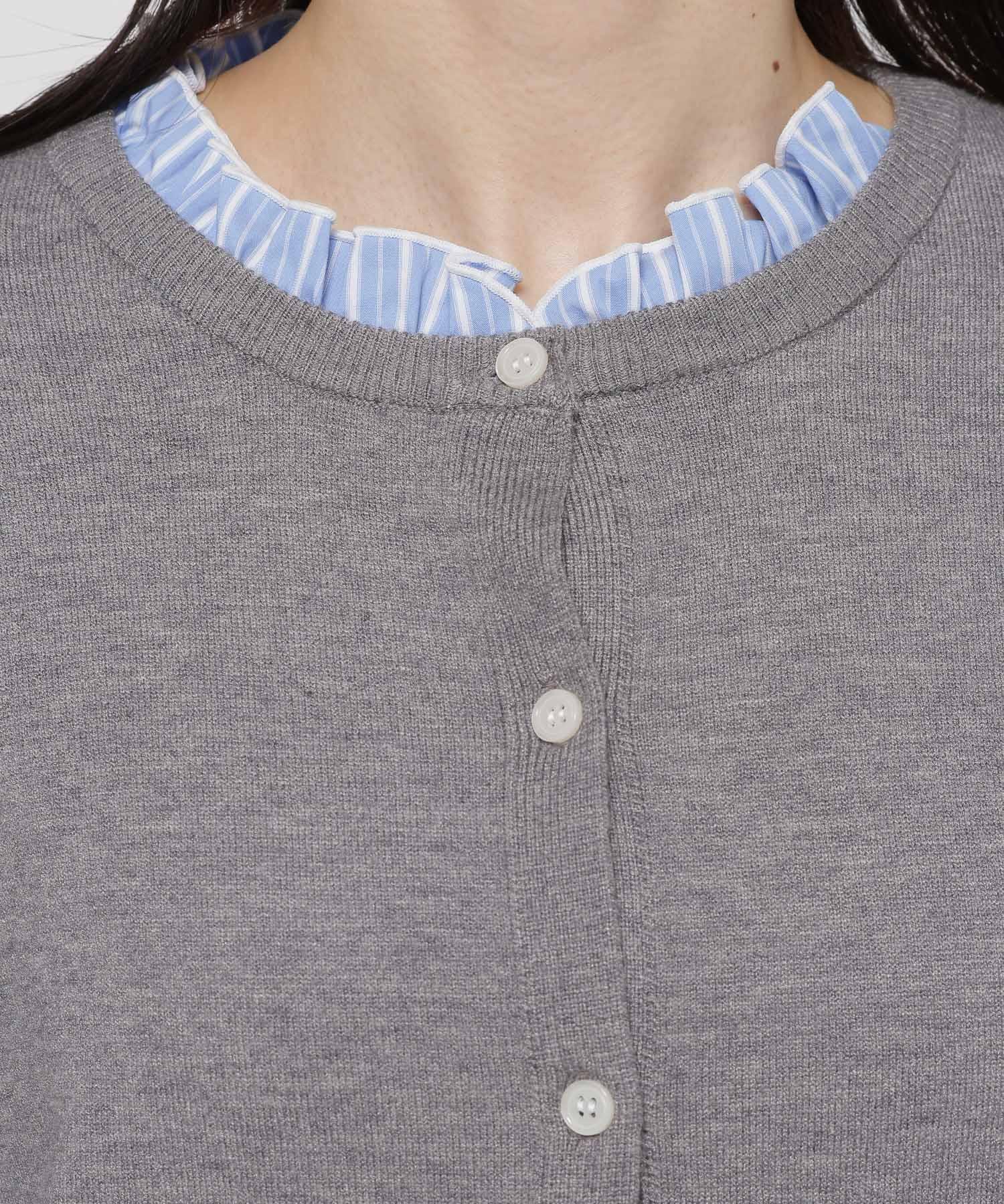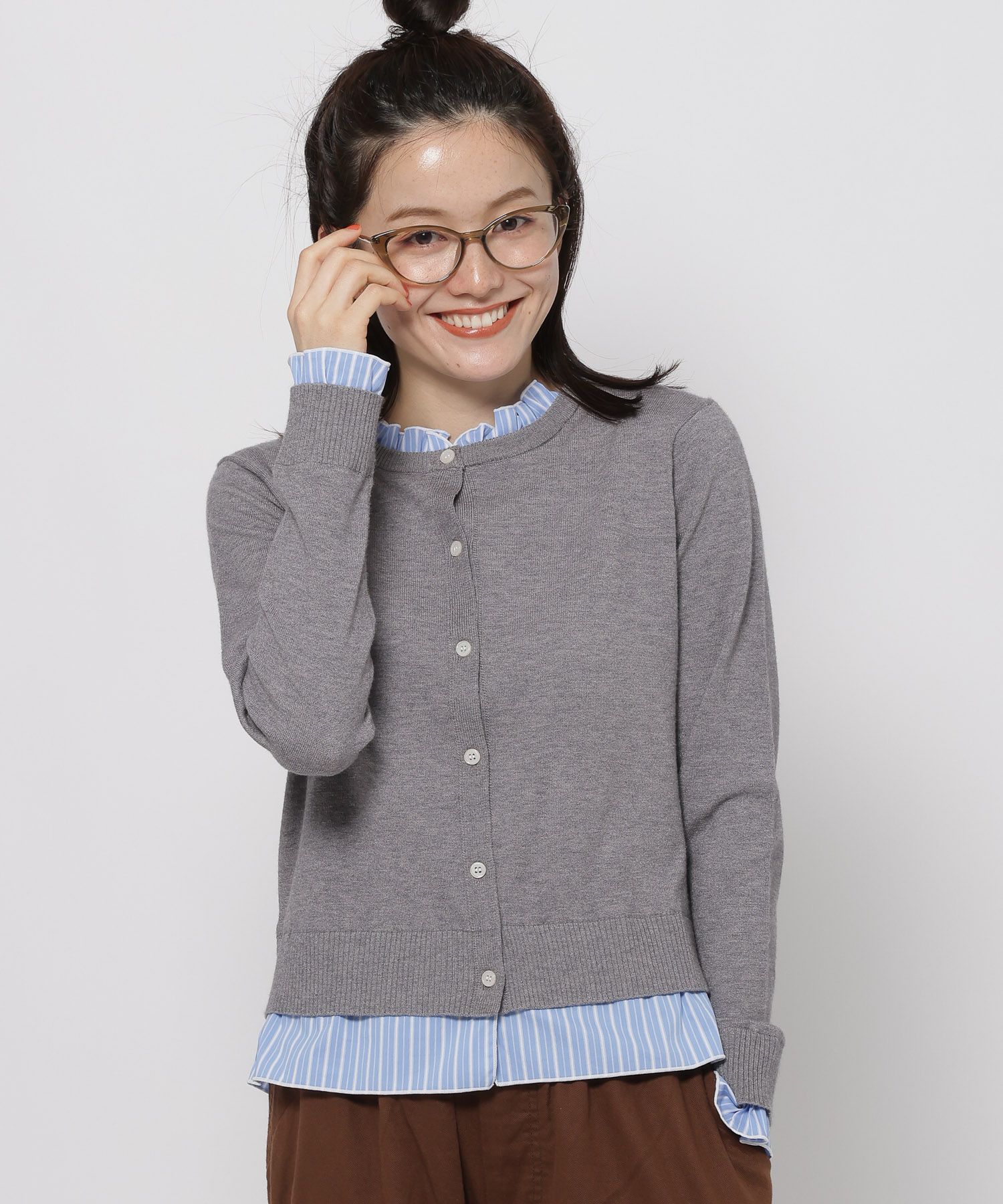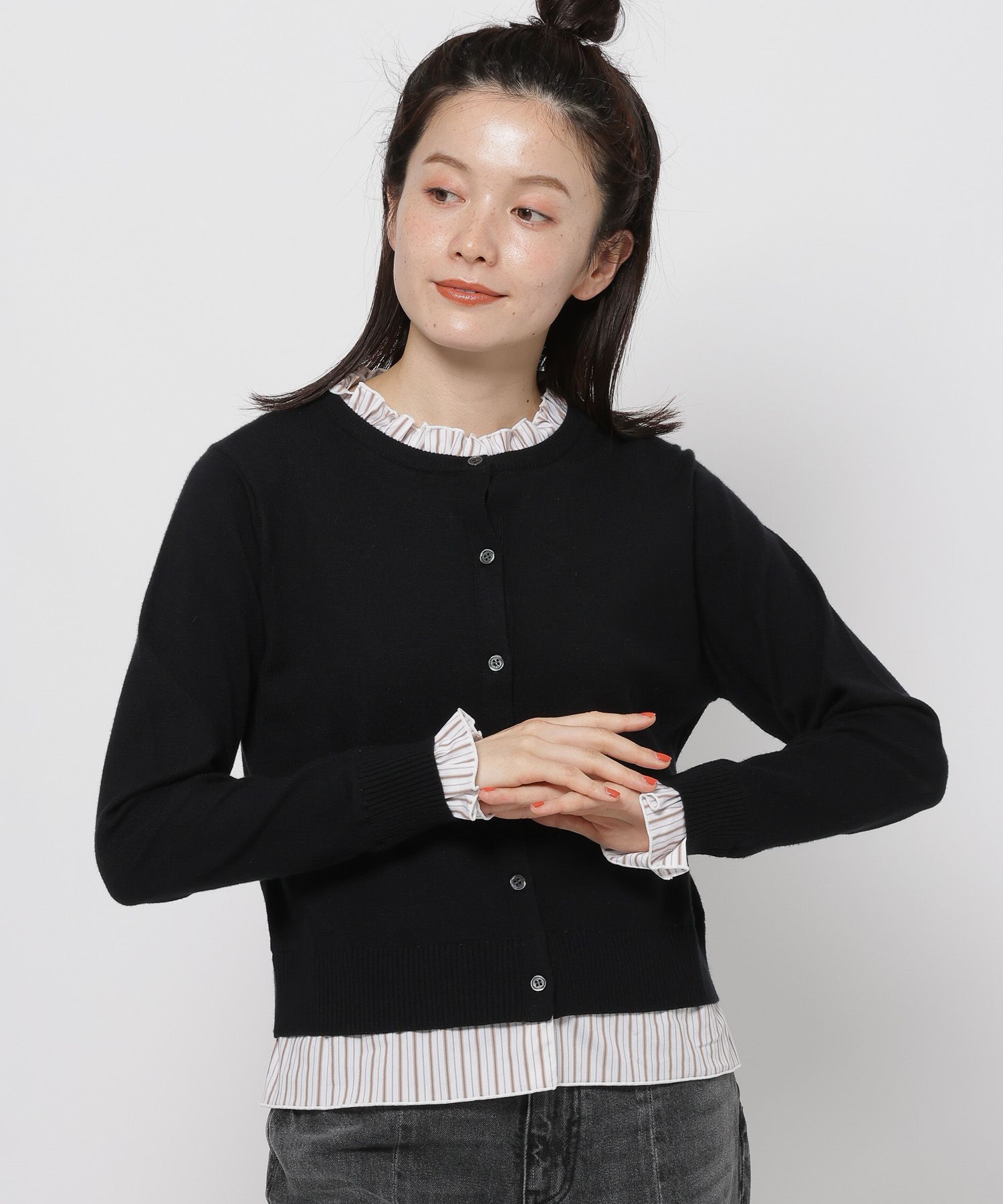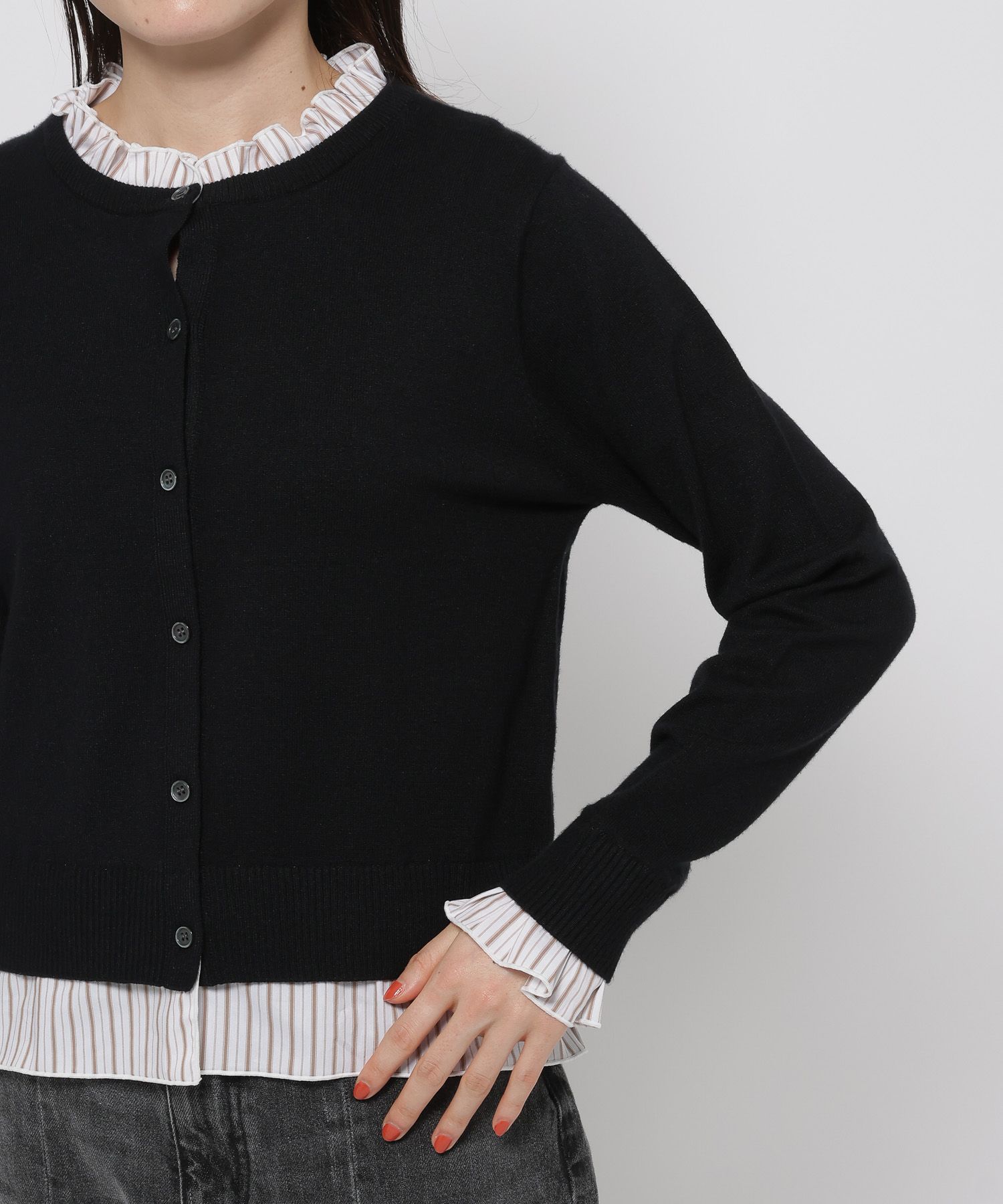 프릴 블라우스를 레이어드 한듯한 디자인의 가디건