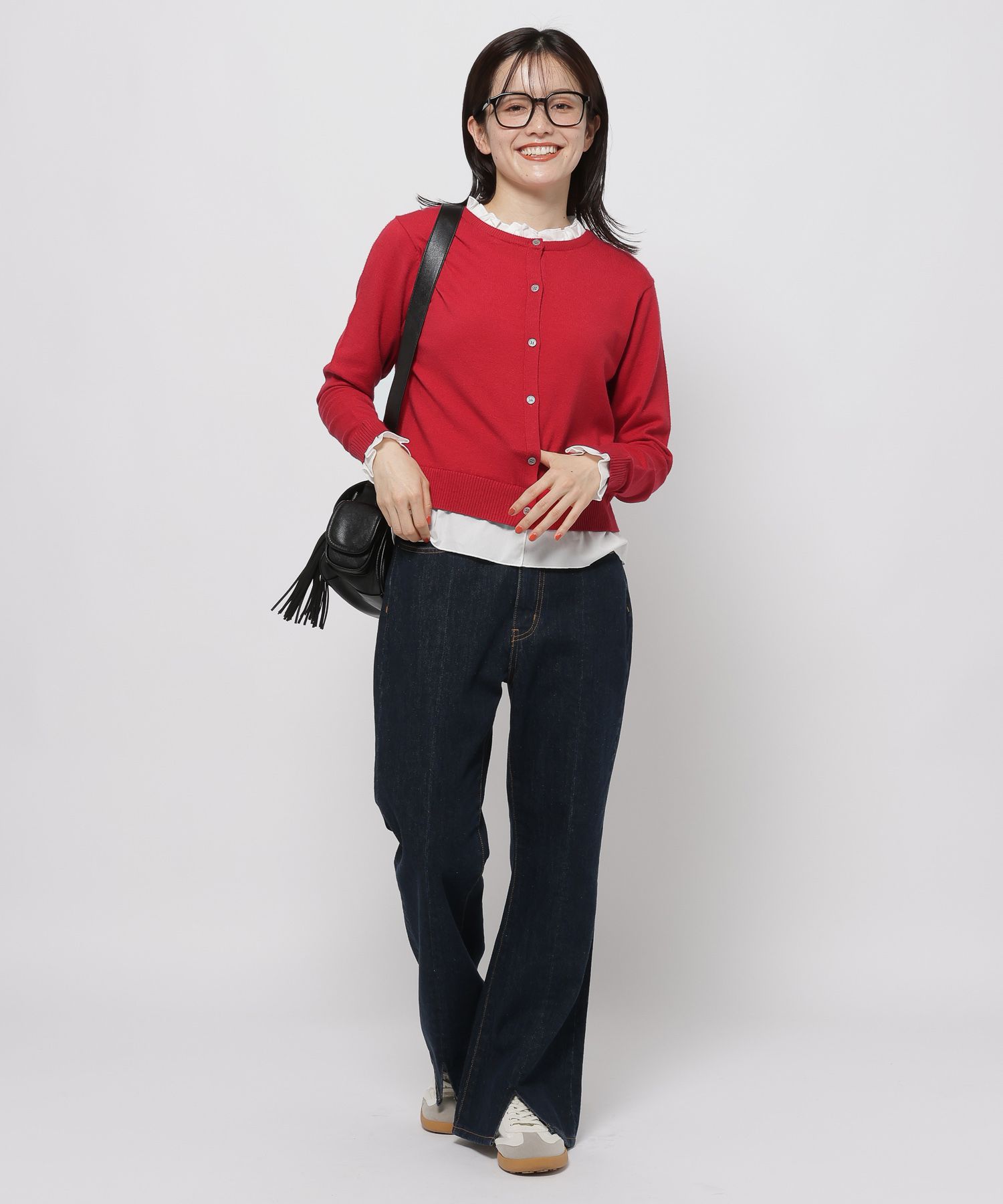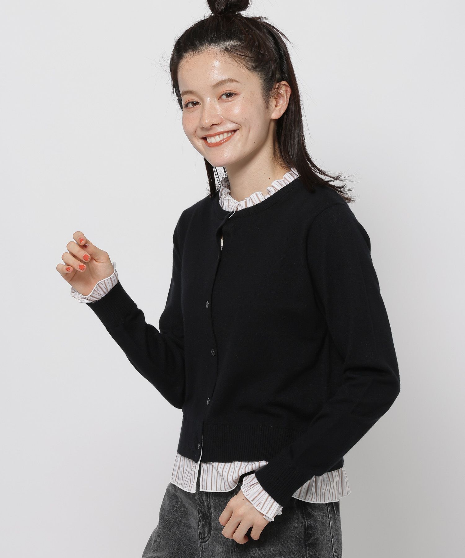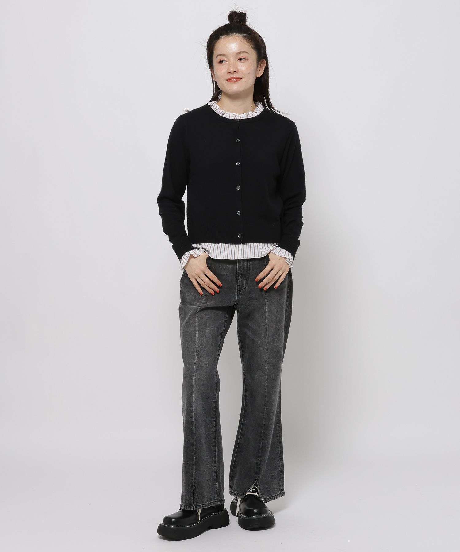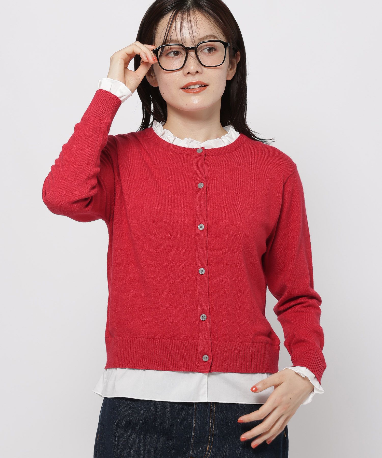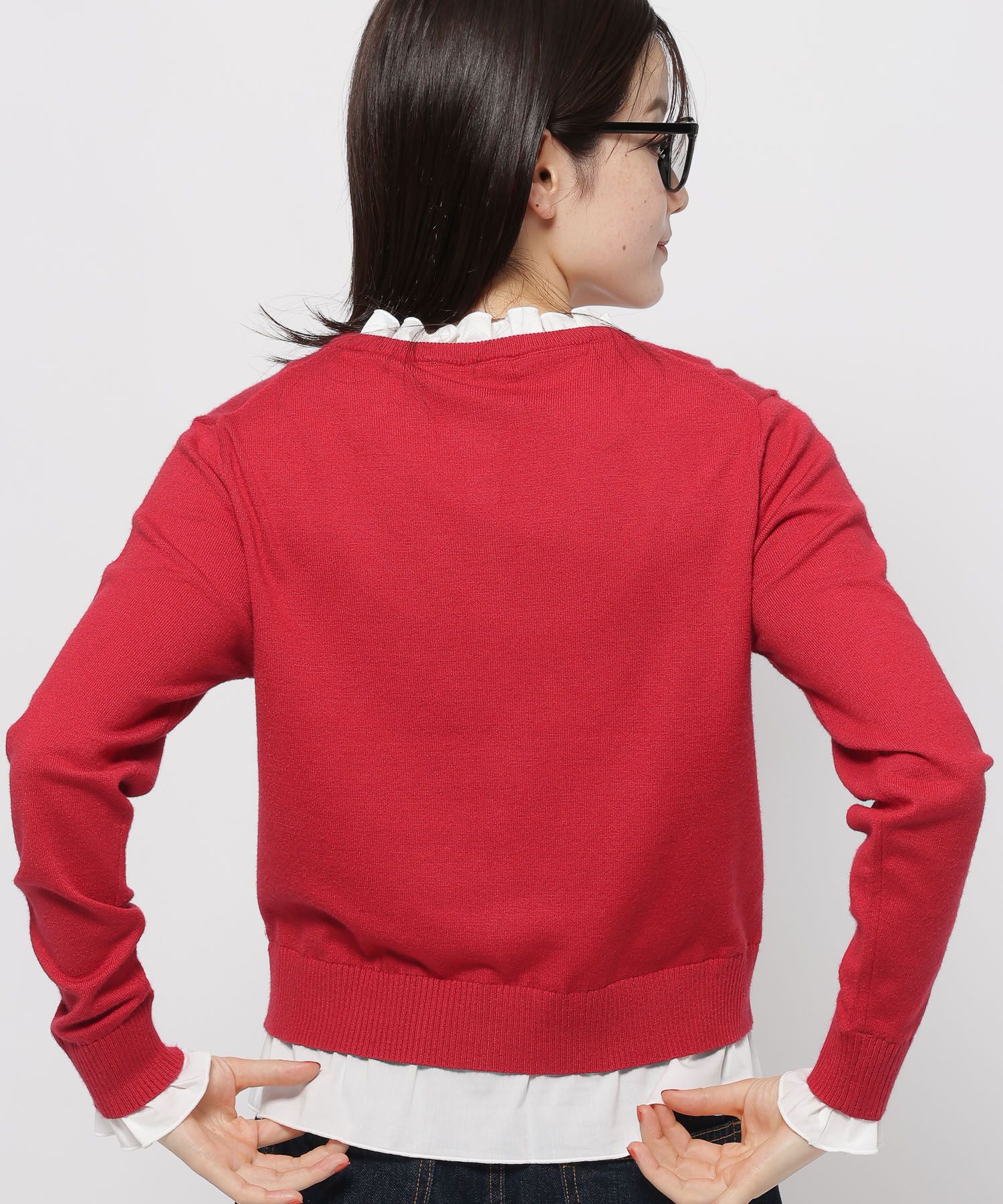 프릴 블라우스를 레이어드 한듯한 디자인의 가디건