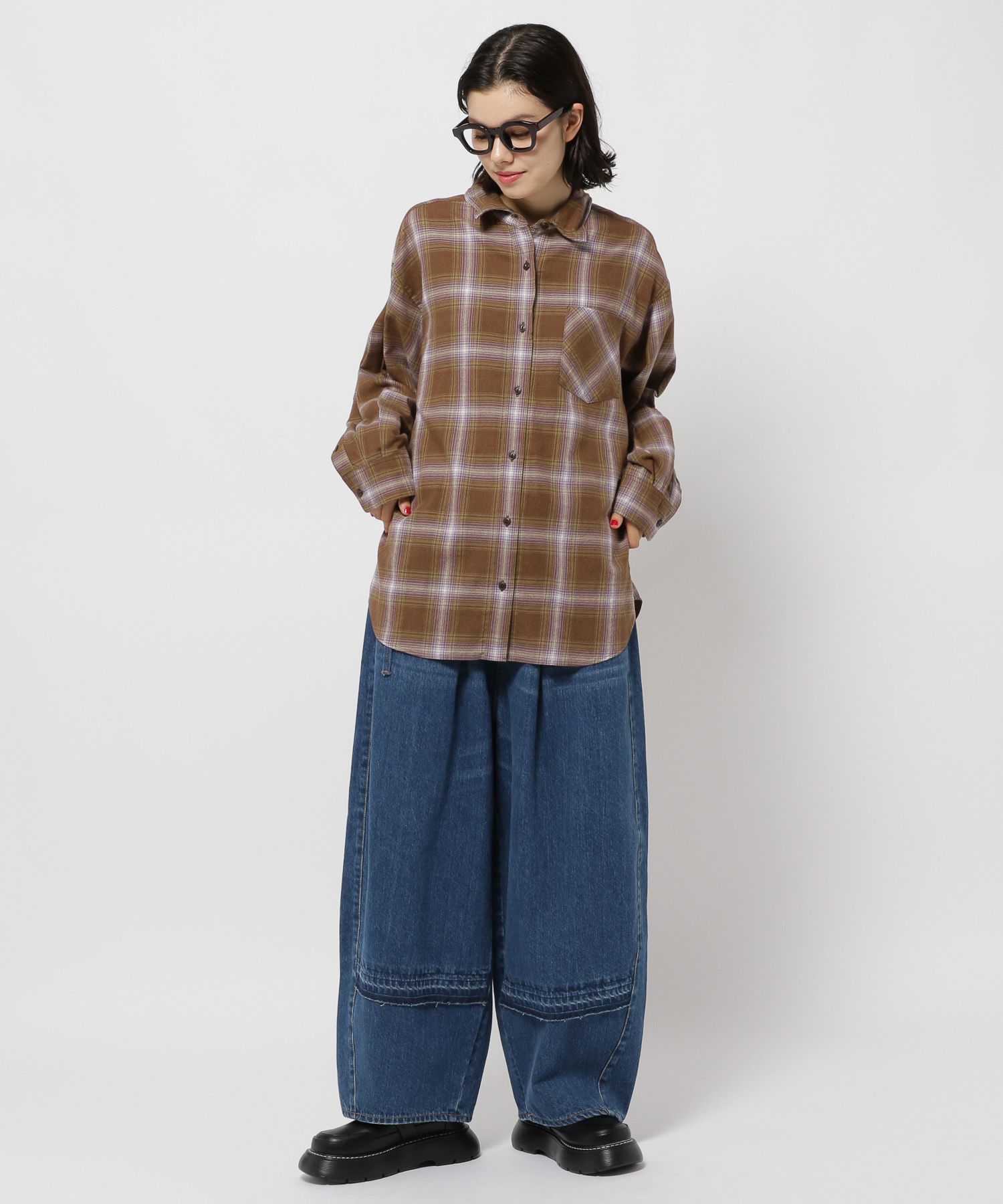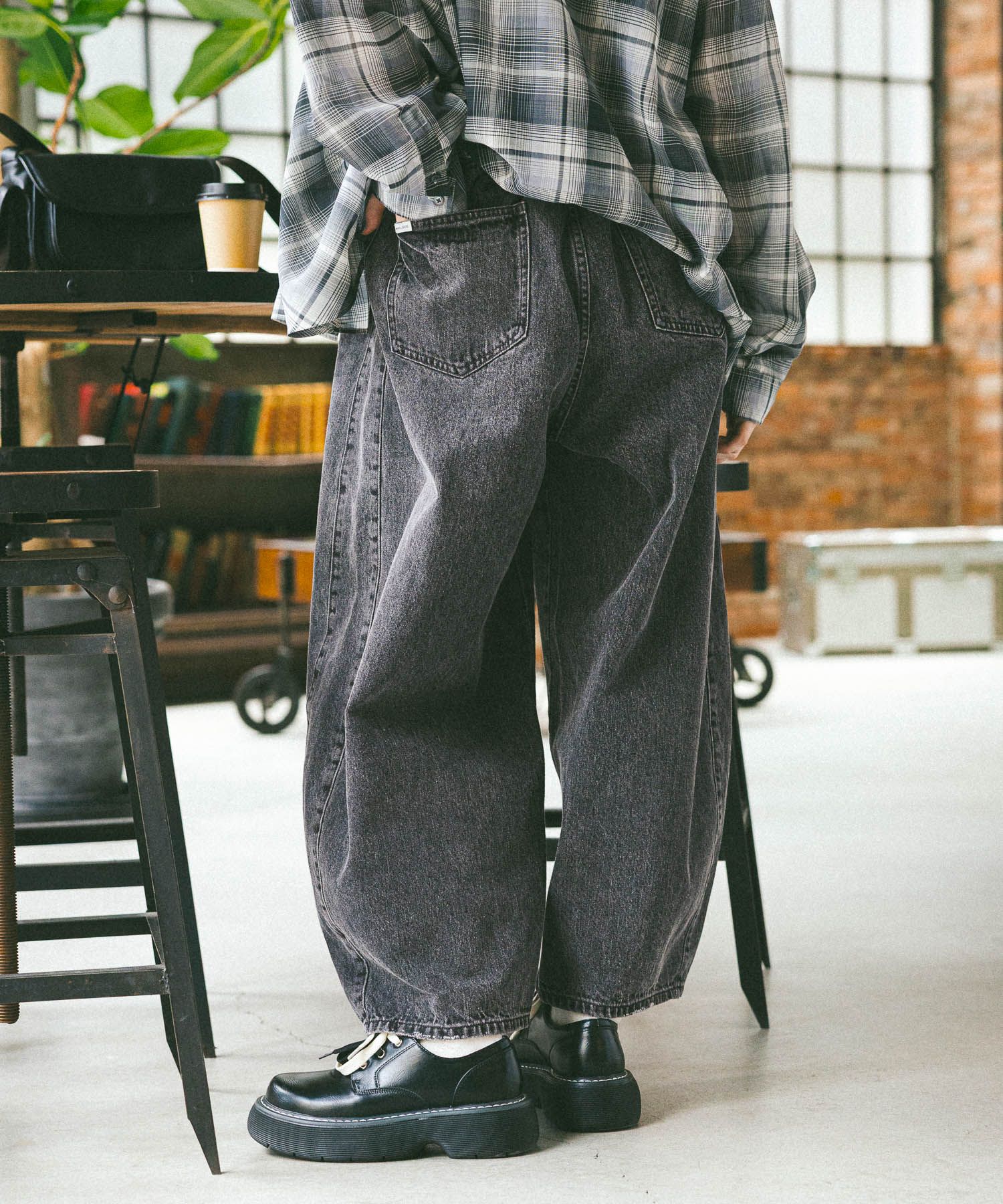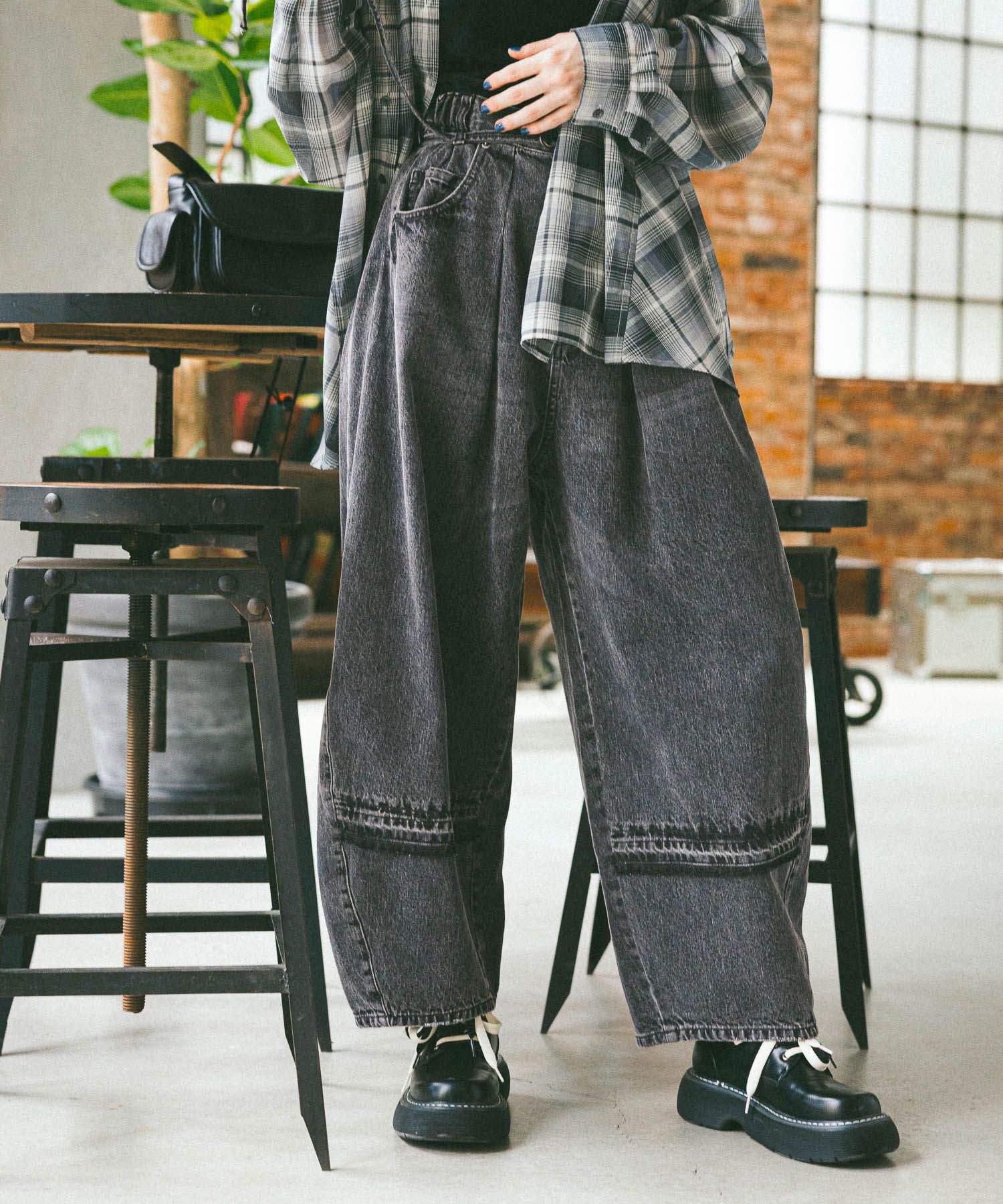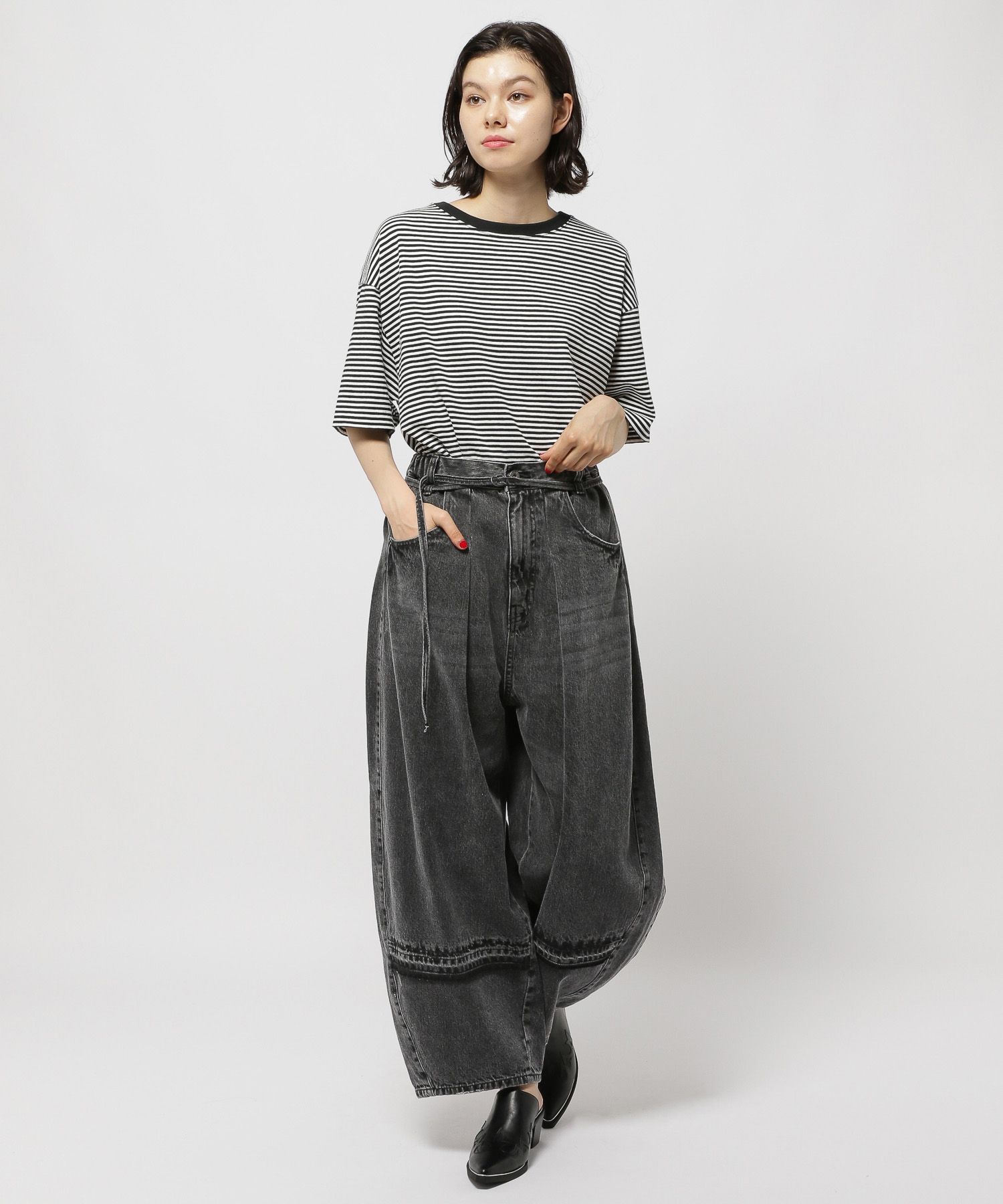 옆선 곡선을 낮게 설정해 밑단으로 자연스럽게 볼륨감이 생기는 배럴 실루엣으로 제작되었으며, 허리는 올밴딩 처리로 착용감이 매우 편안합니다.