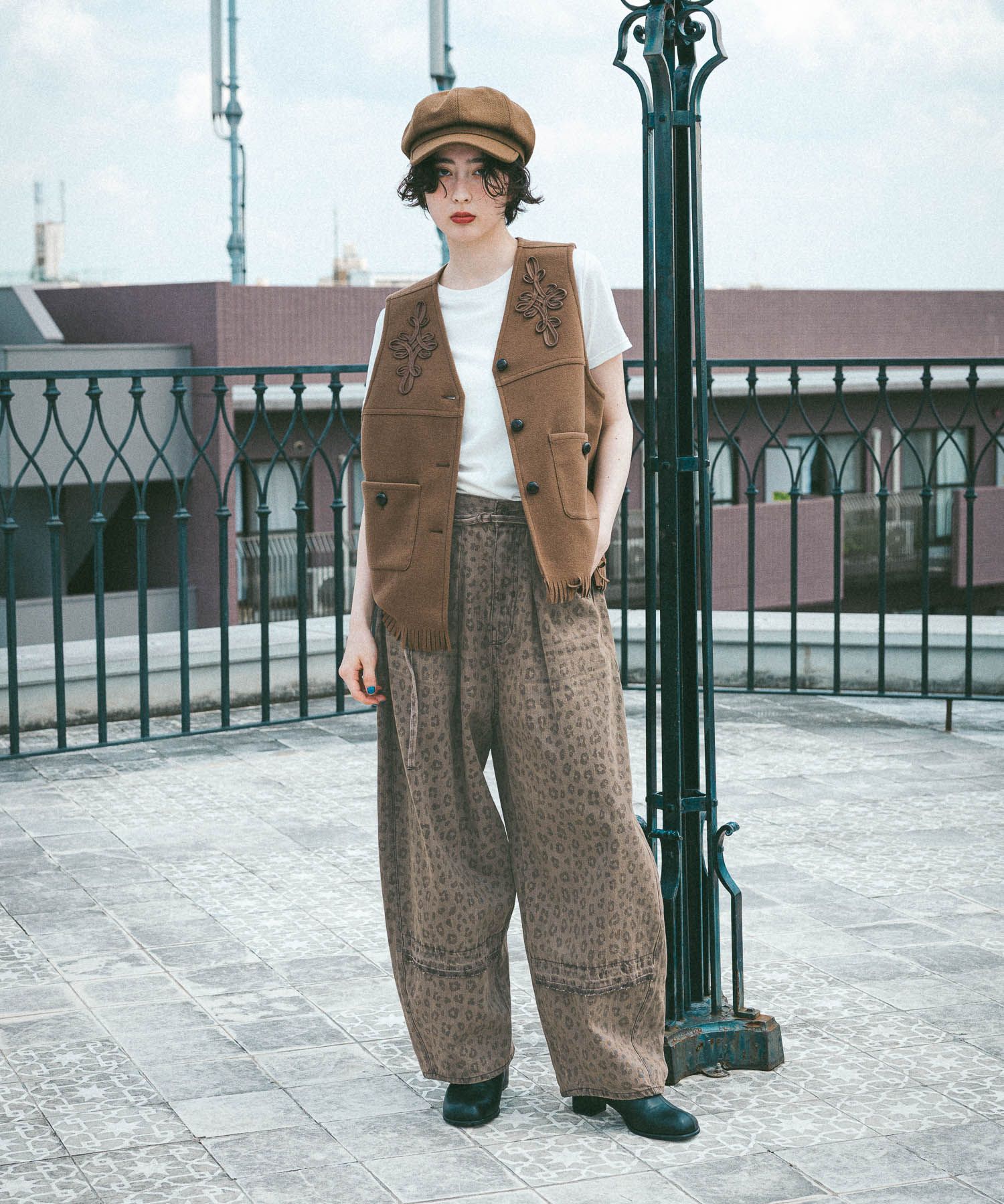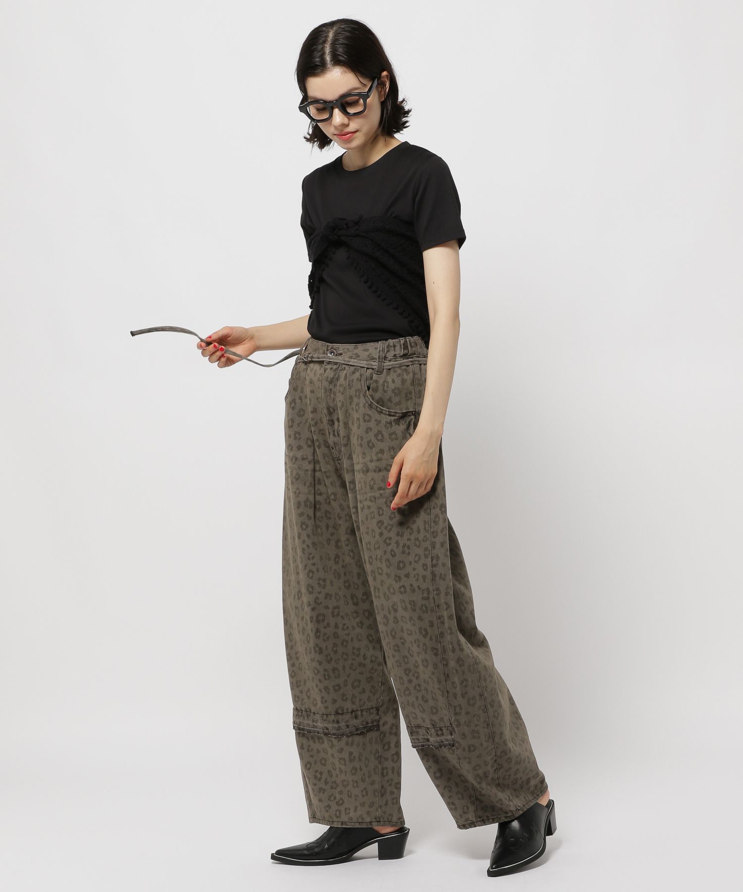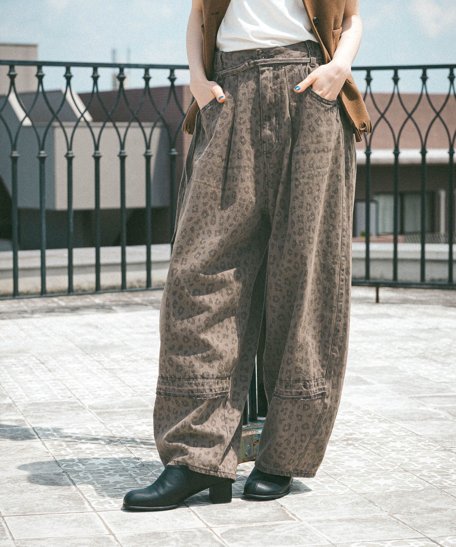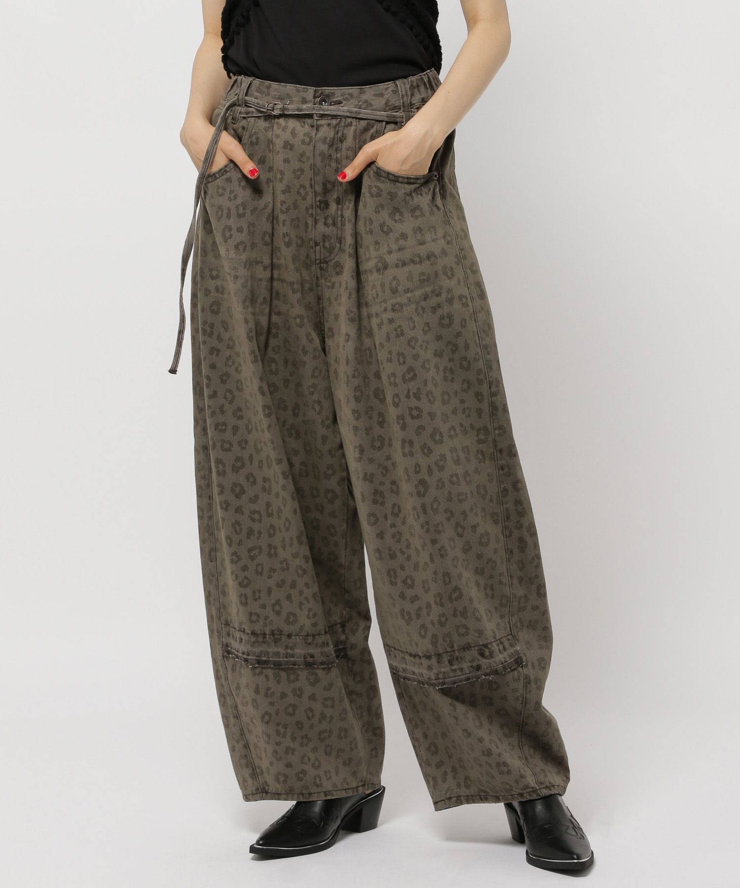 패치워크를 연상케하는 리메이크 분위기의 디자인의 이지 와이드 팬츠입니다.
