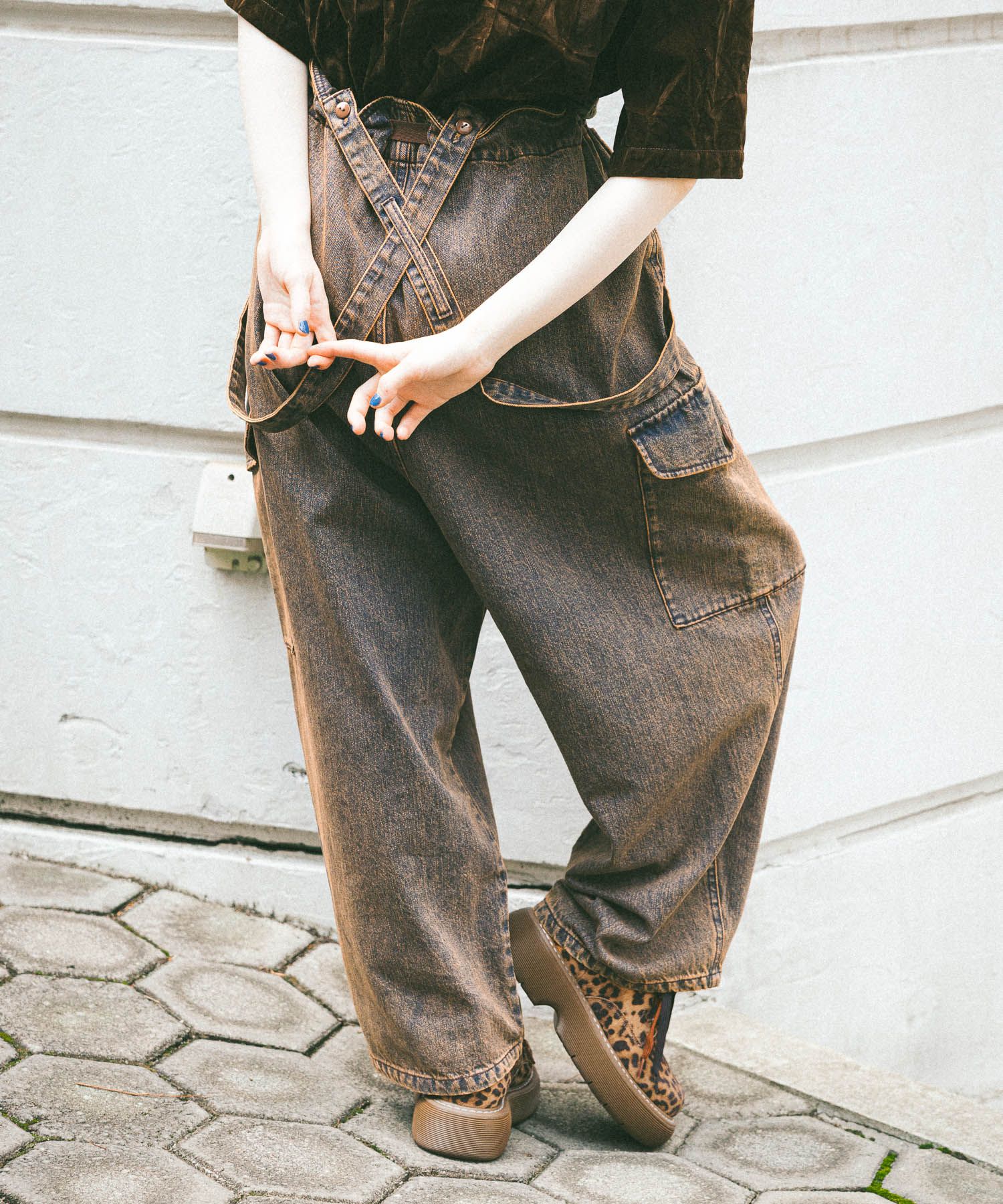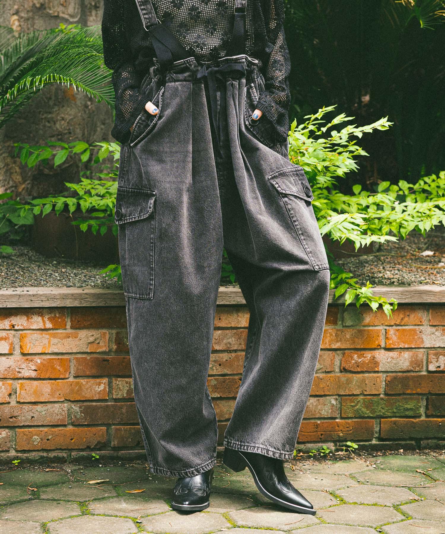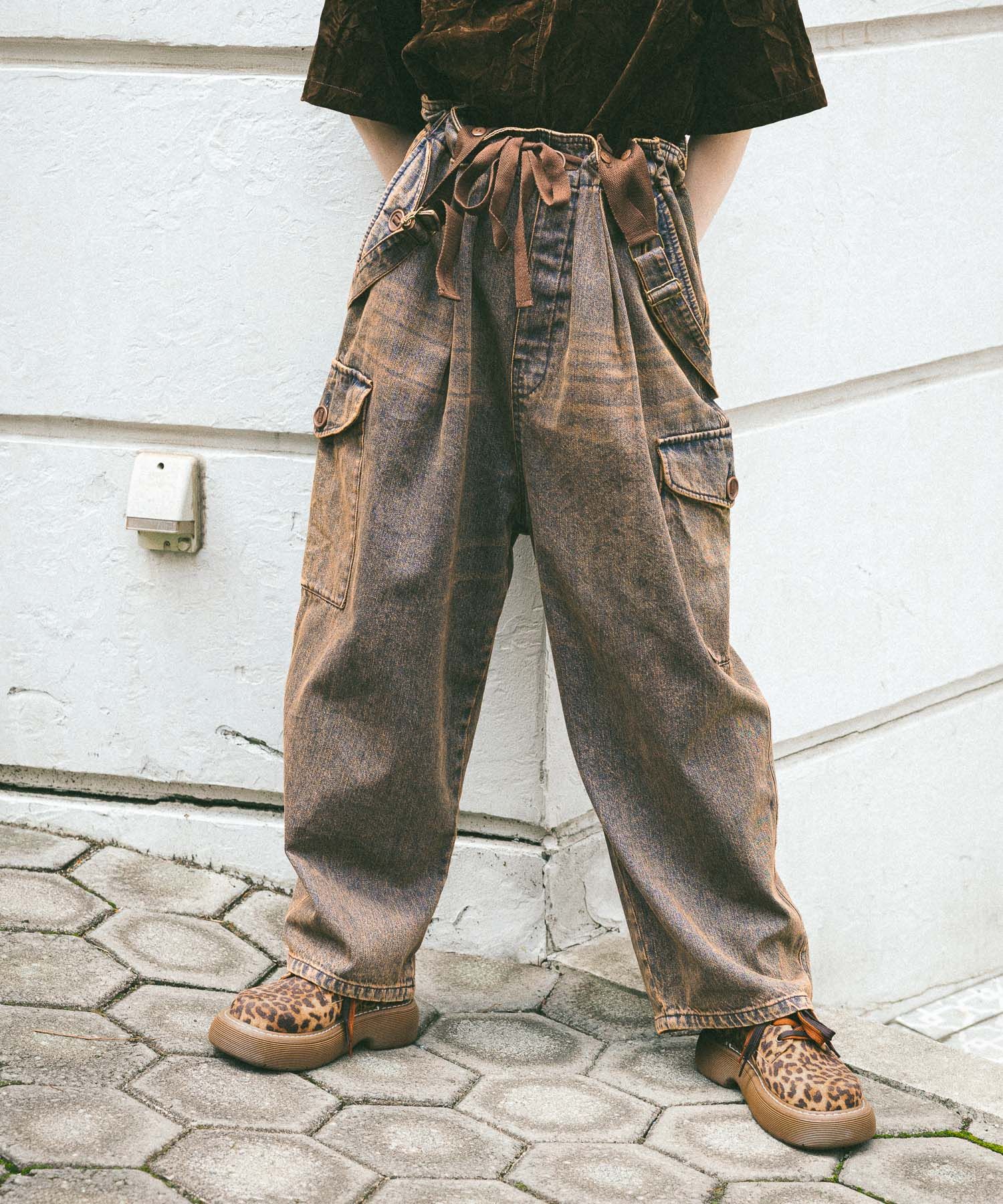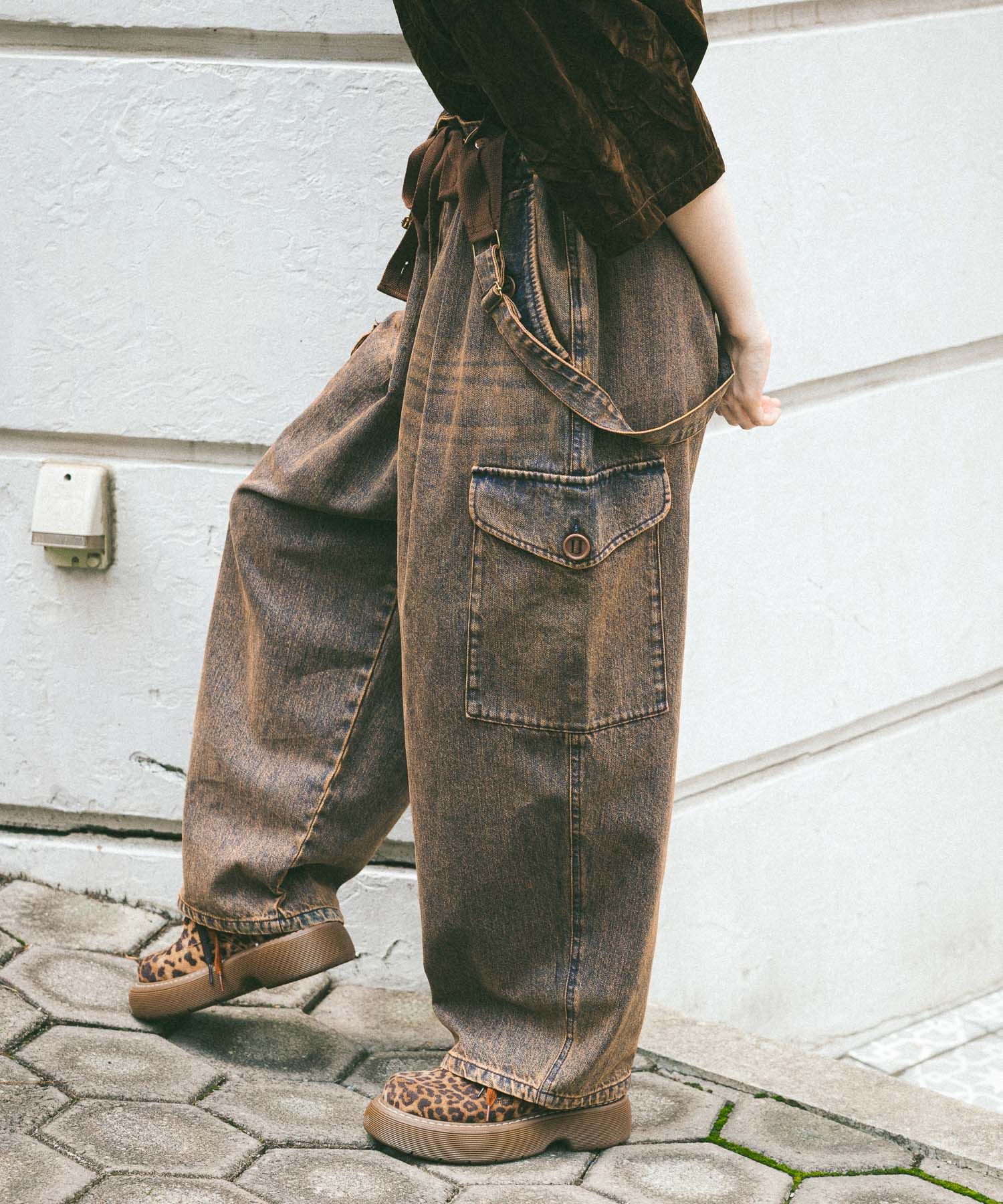 밀리터리 분위기의 오버 카고 팬츠를 베이스로 탈부착 가능한 서스팬더를 더한 디자인입니다.