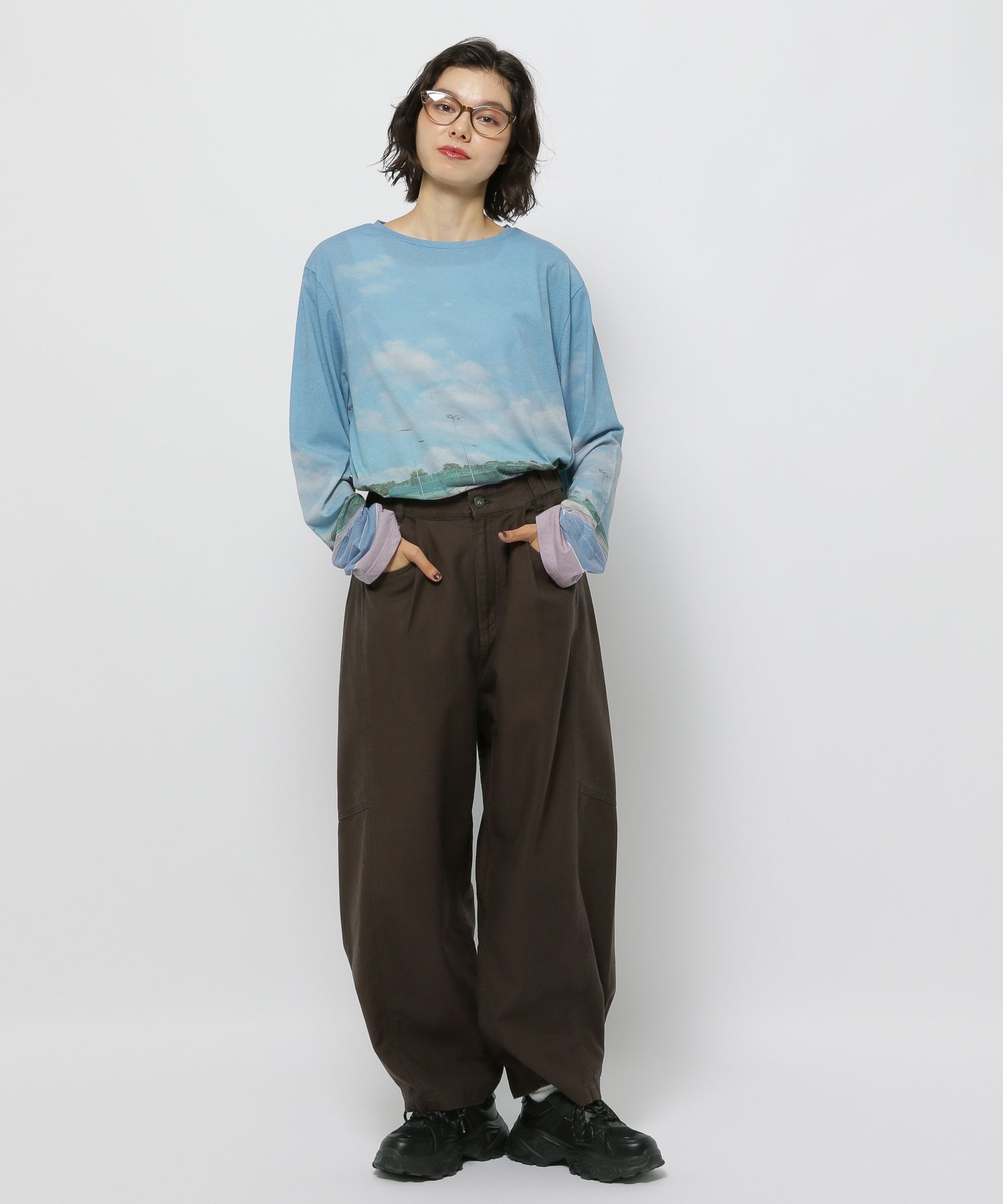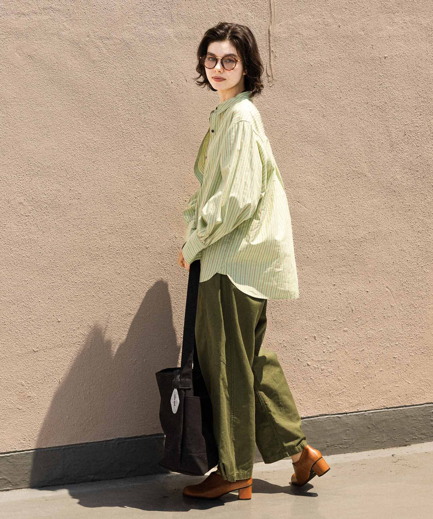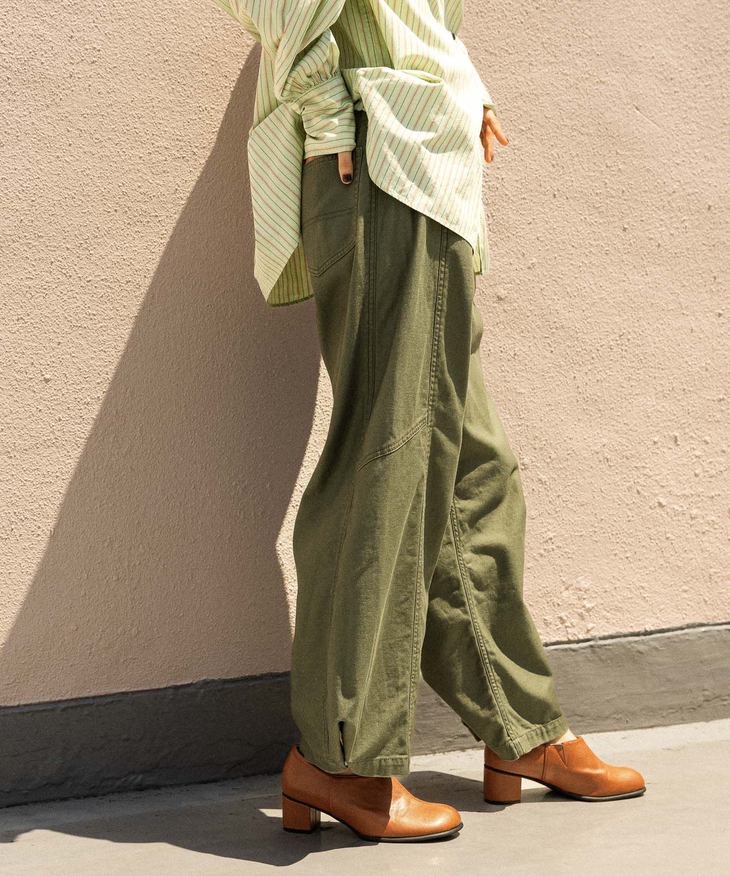 넉넉한 와이드스트레이트 실루엣의 팬츠.
