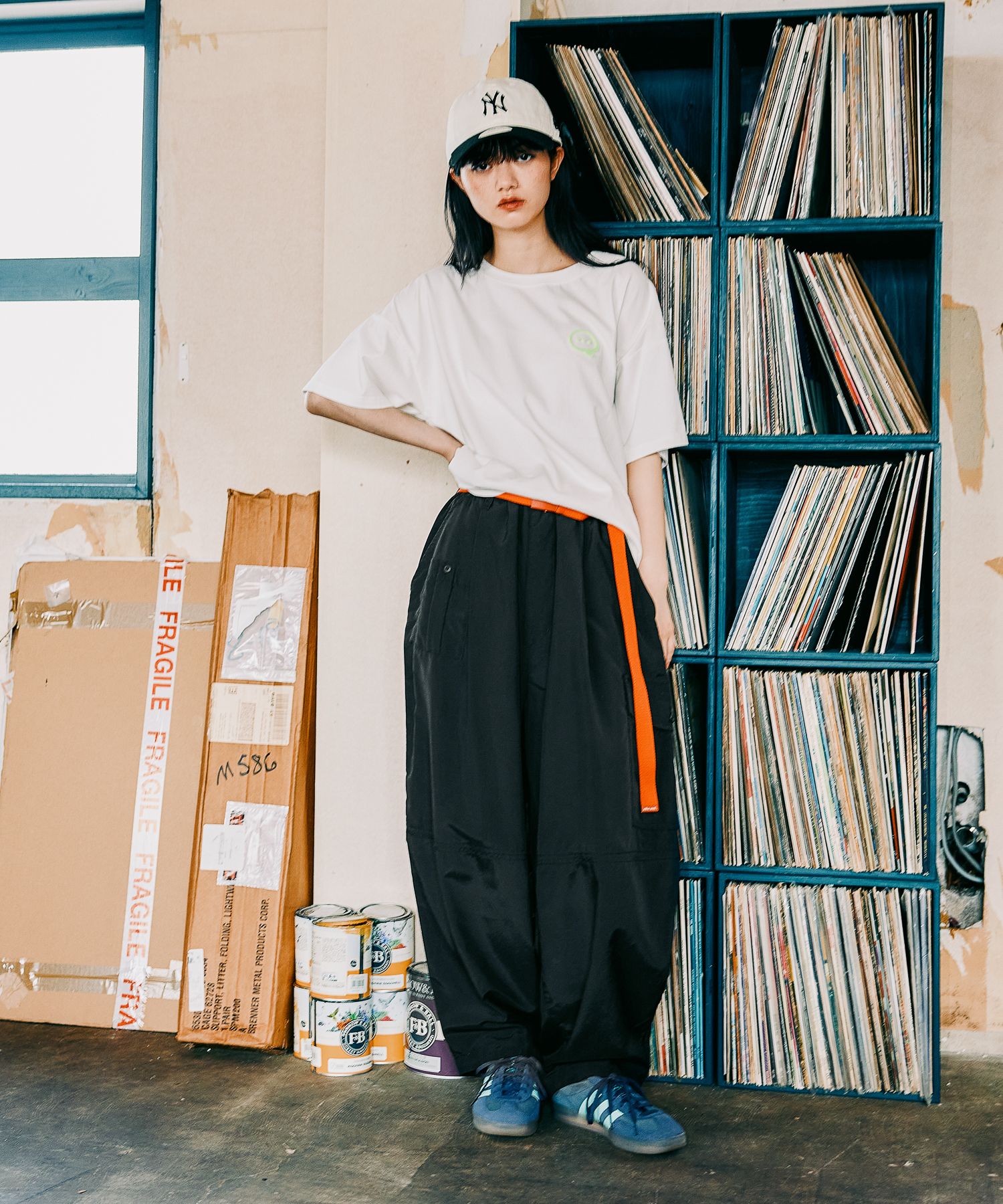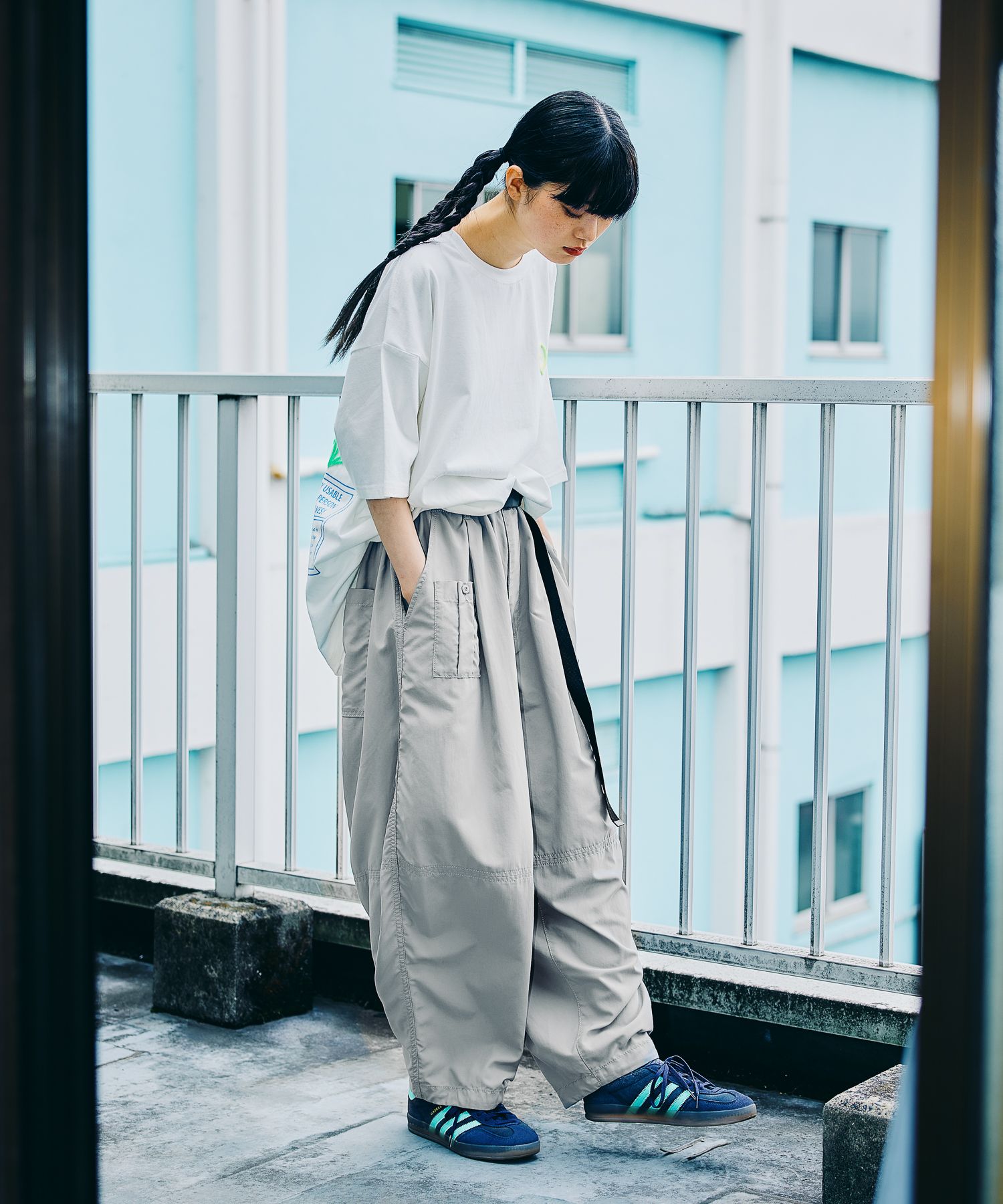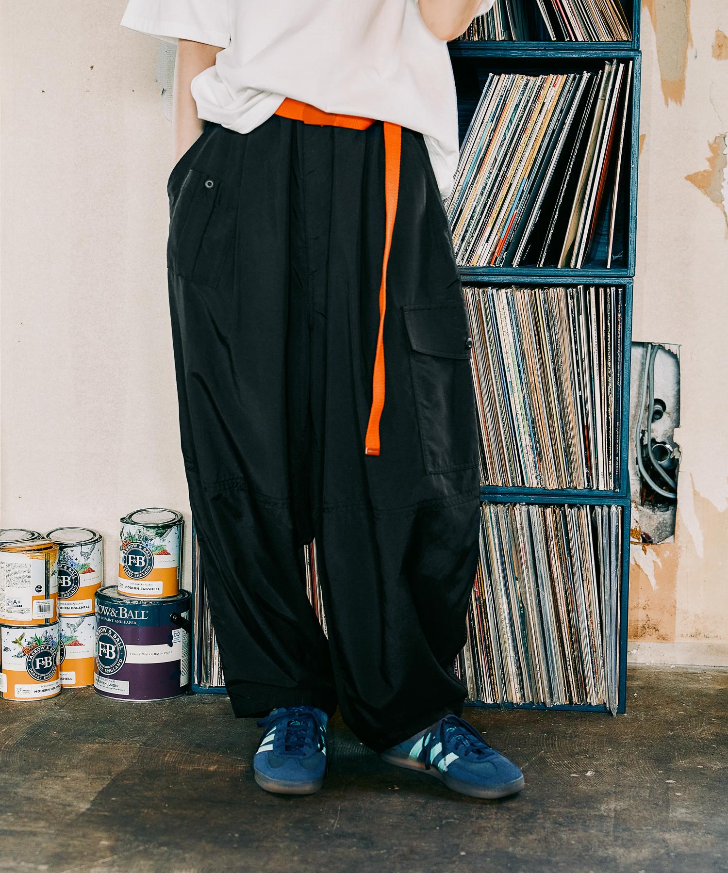 볼륨감 있는 입체 벌룬 실루엣의 팬츠.