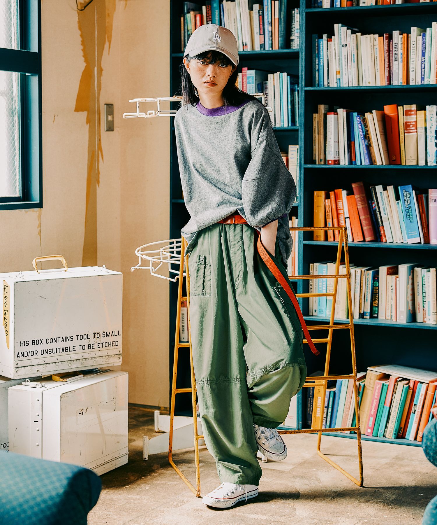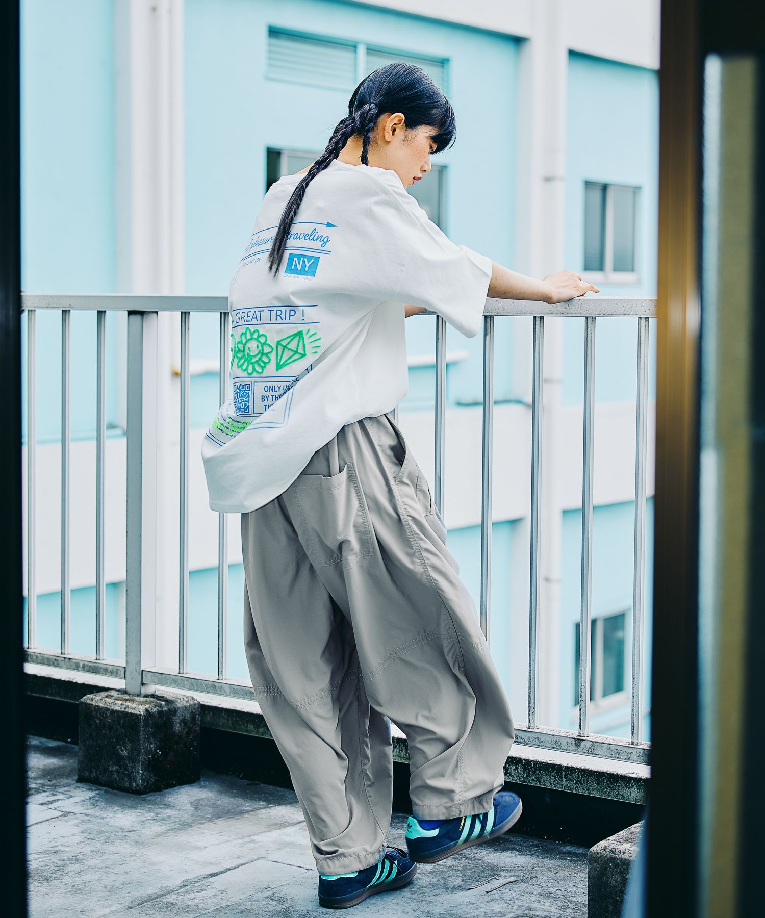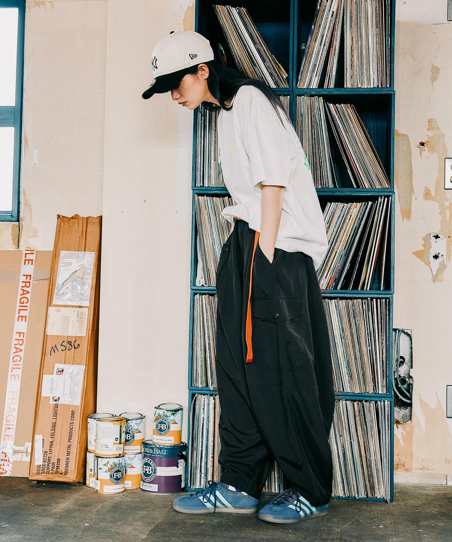 볼륨감 있는 입체 벌룬 실루엣의 팬츠.