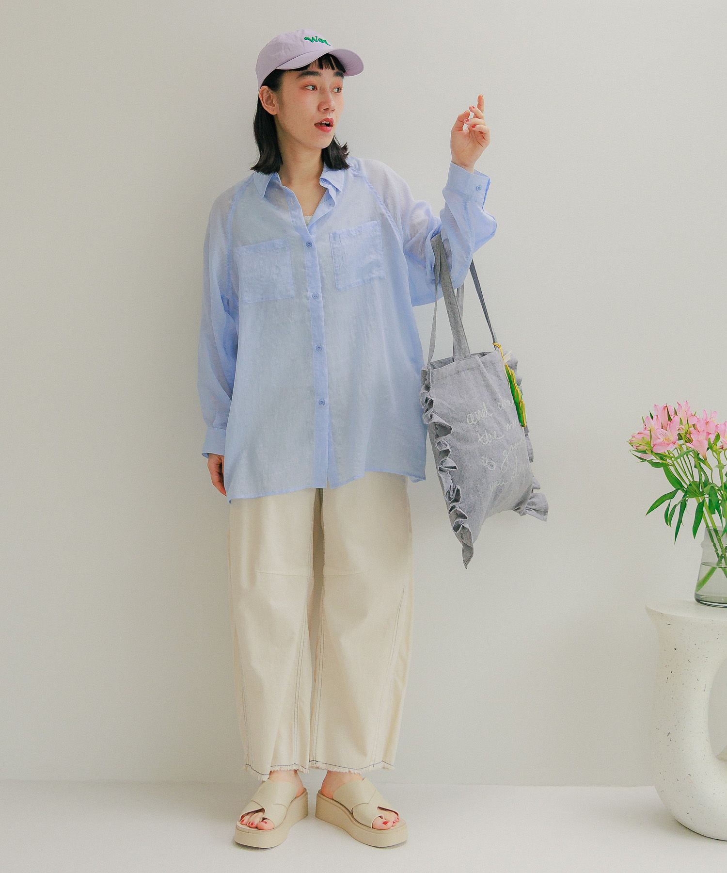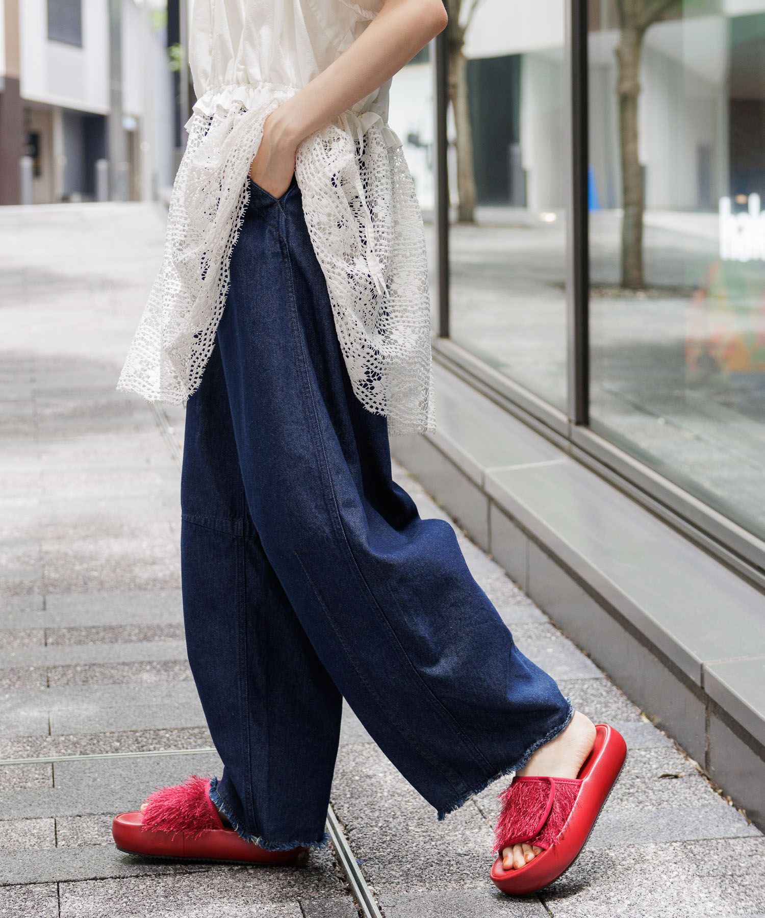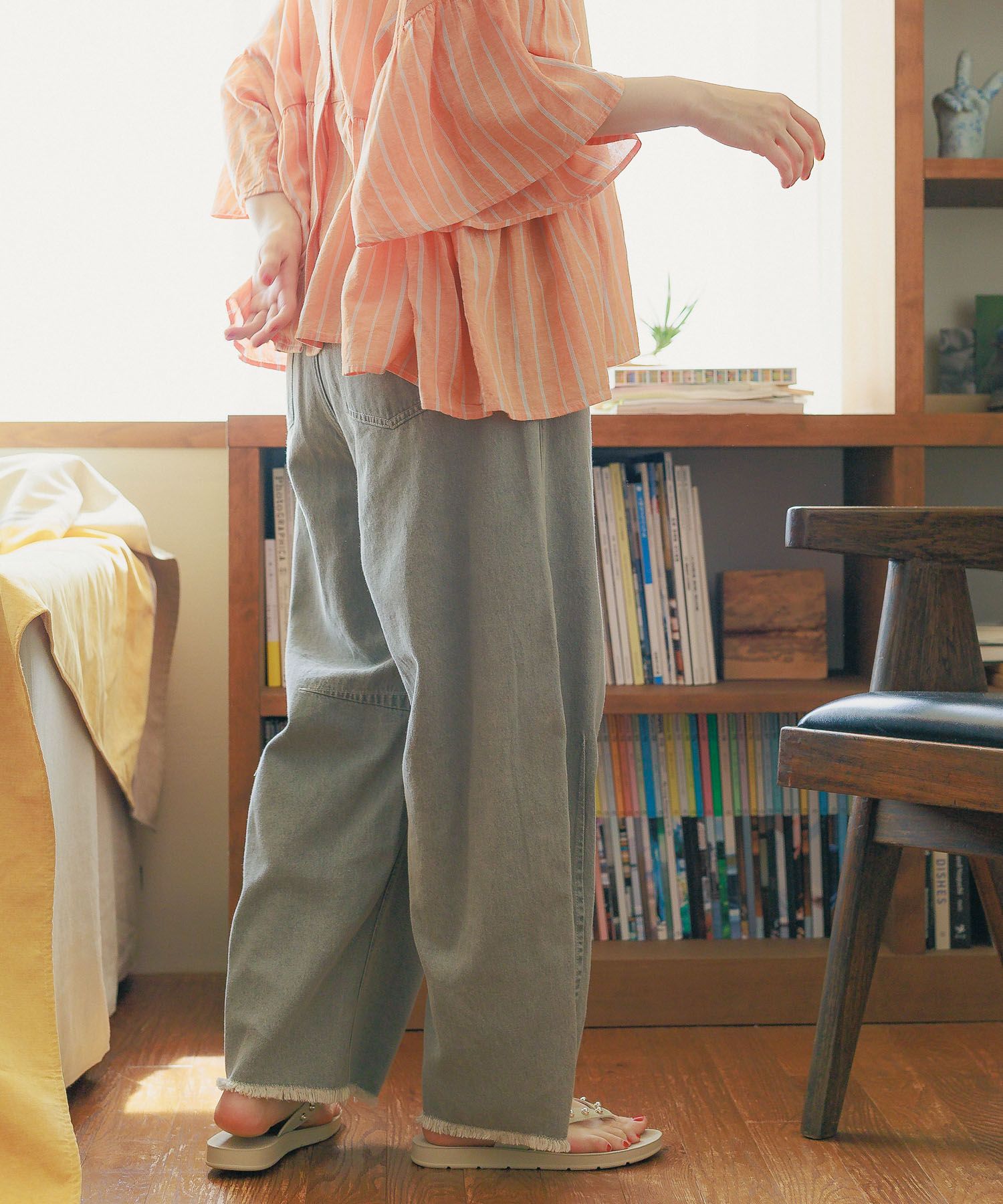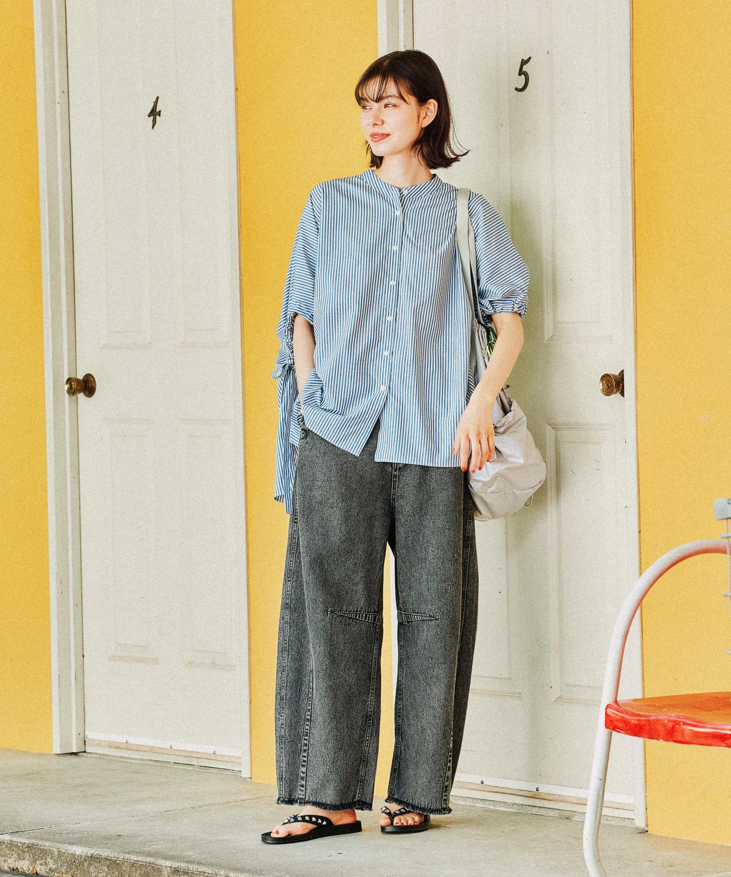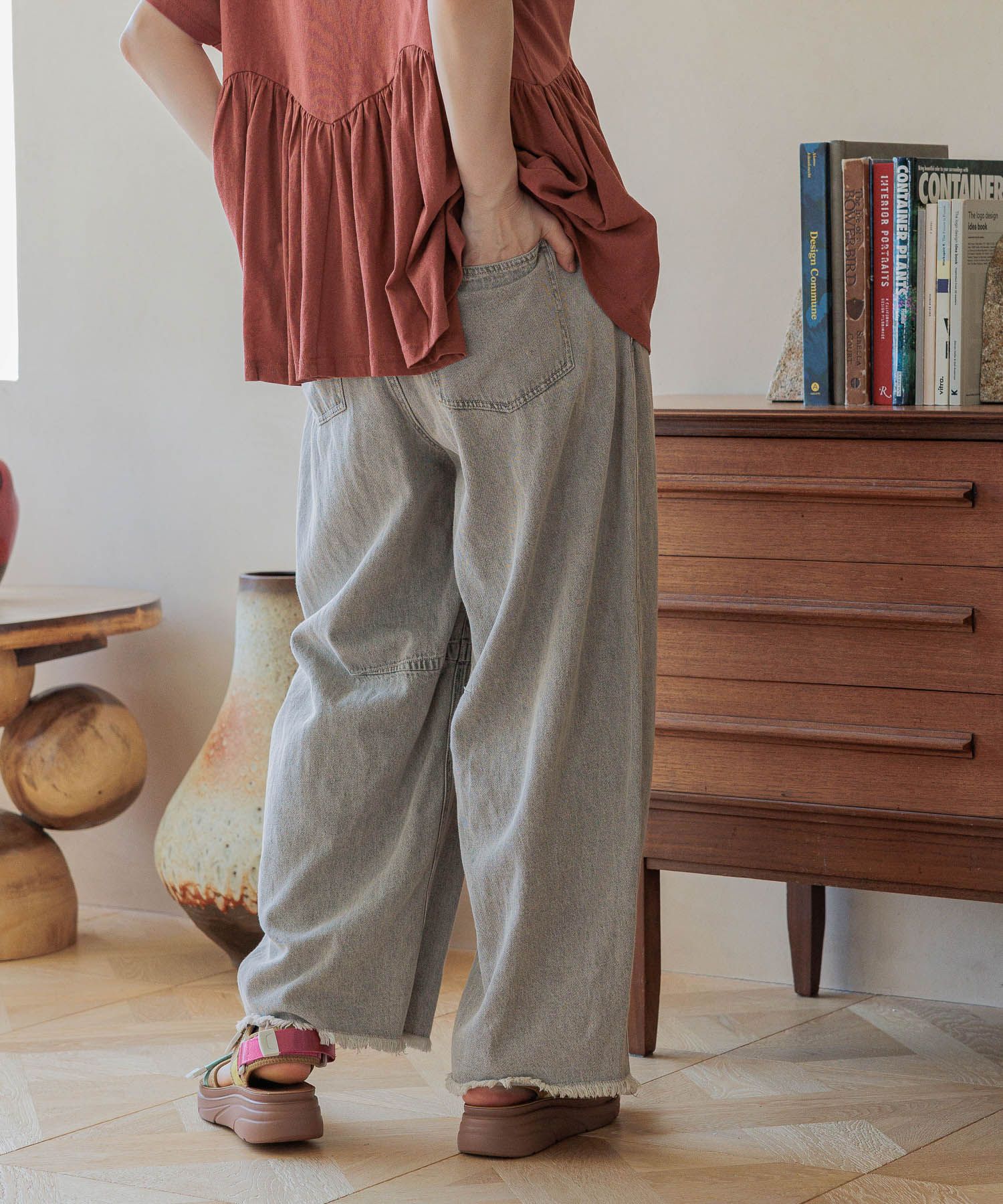 둥근 통 형태의 실루엣이 매력적인 배럴 실루엣 팬츠 입니다.
