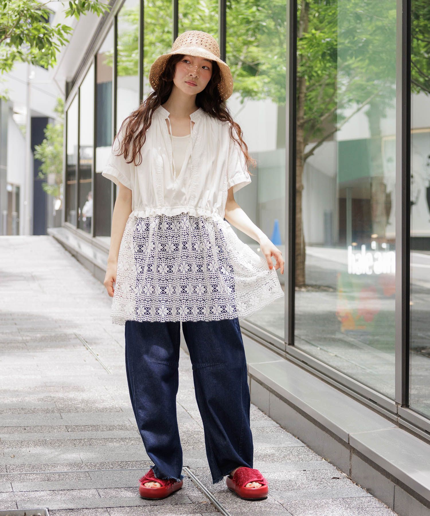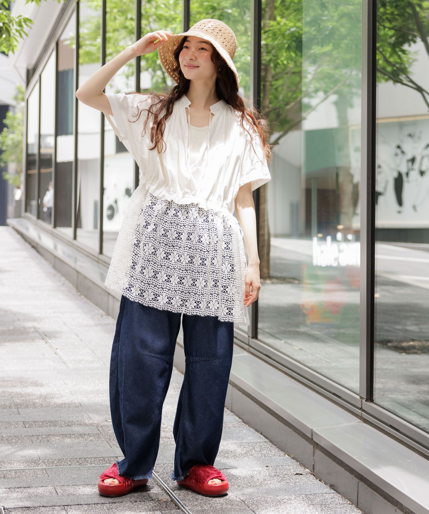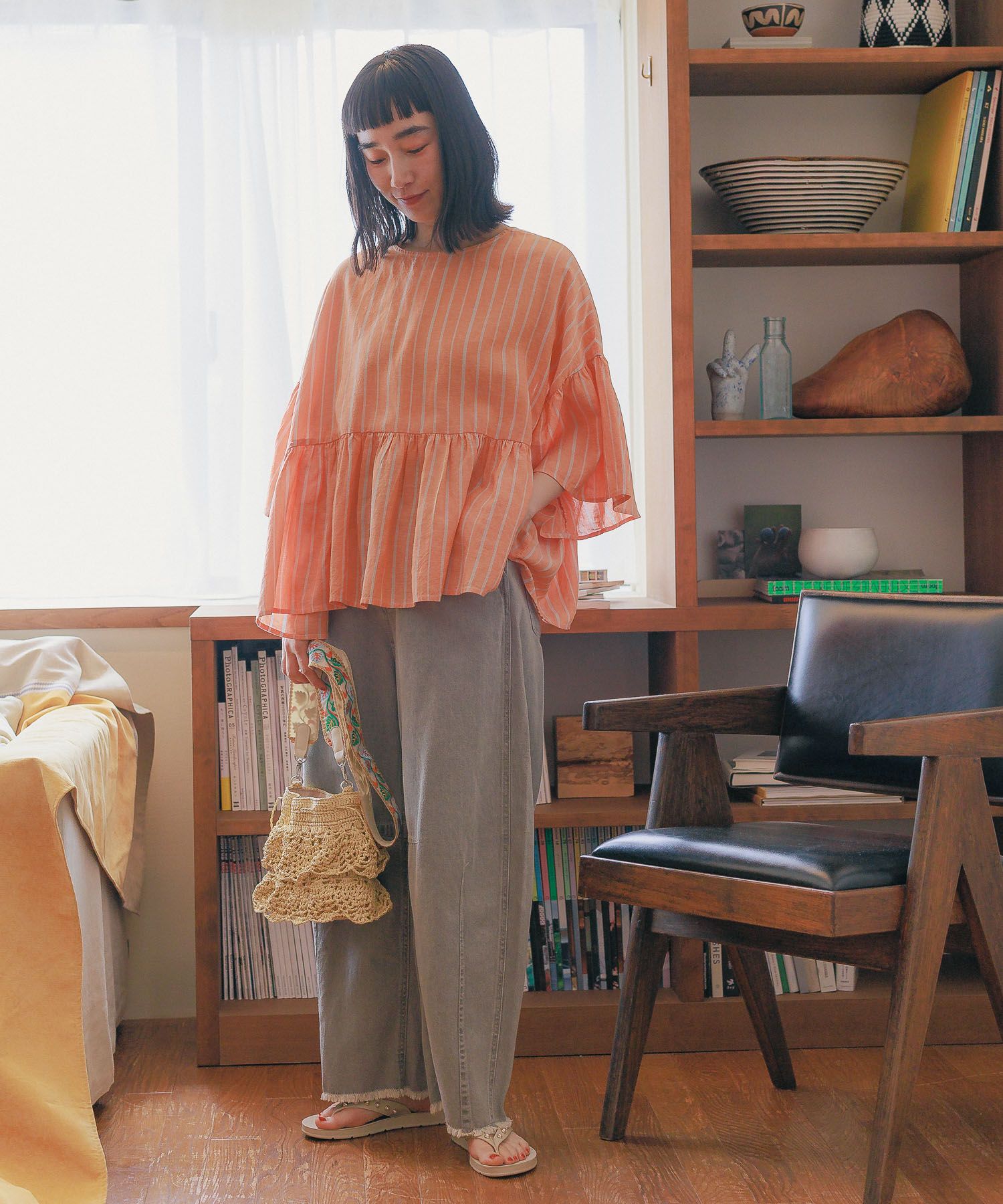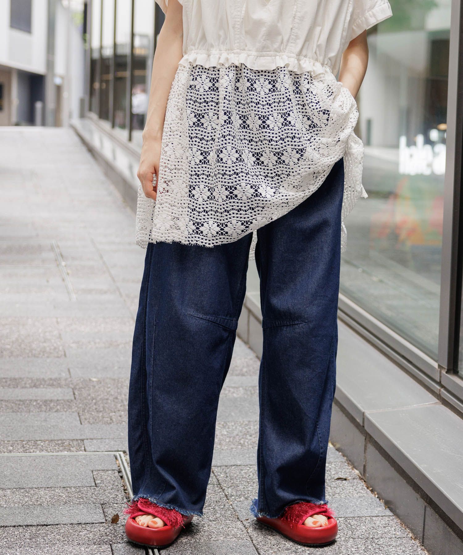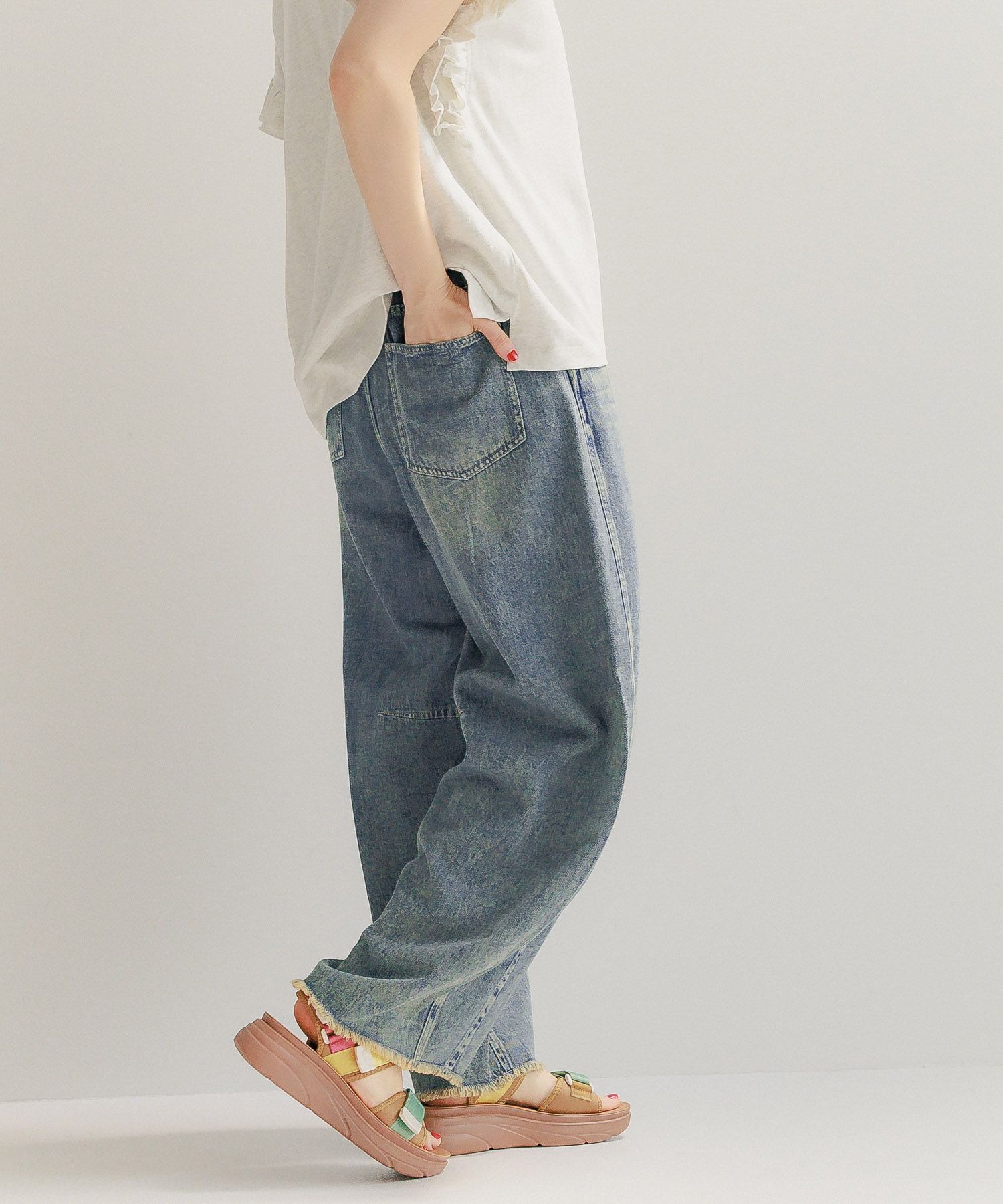 둥근 통 형태의 실루엣이 매력적인 배럴 실루엣 팬츠 입니다.