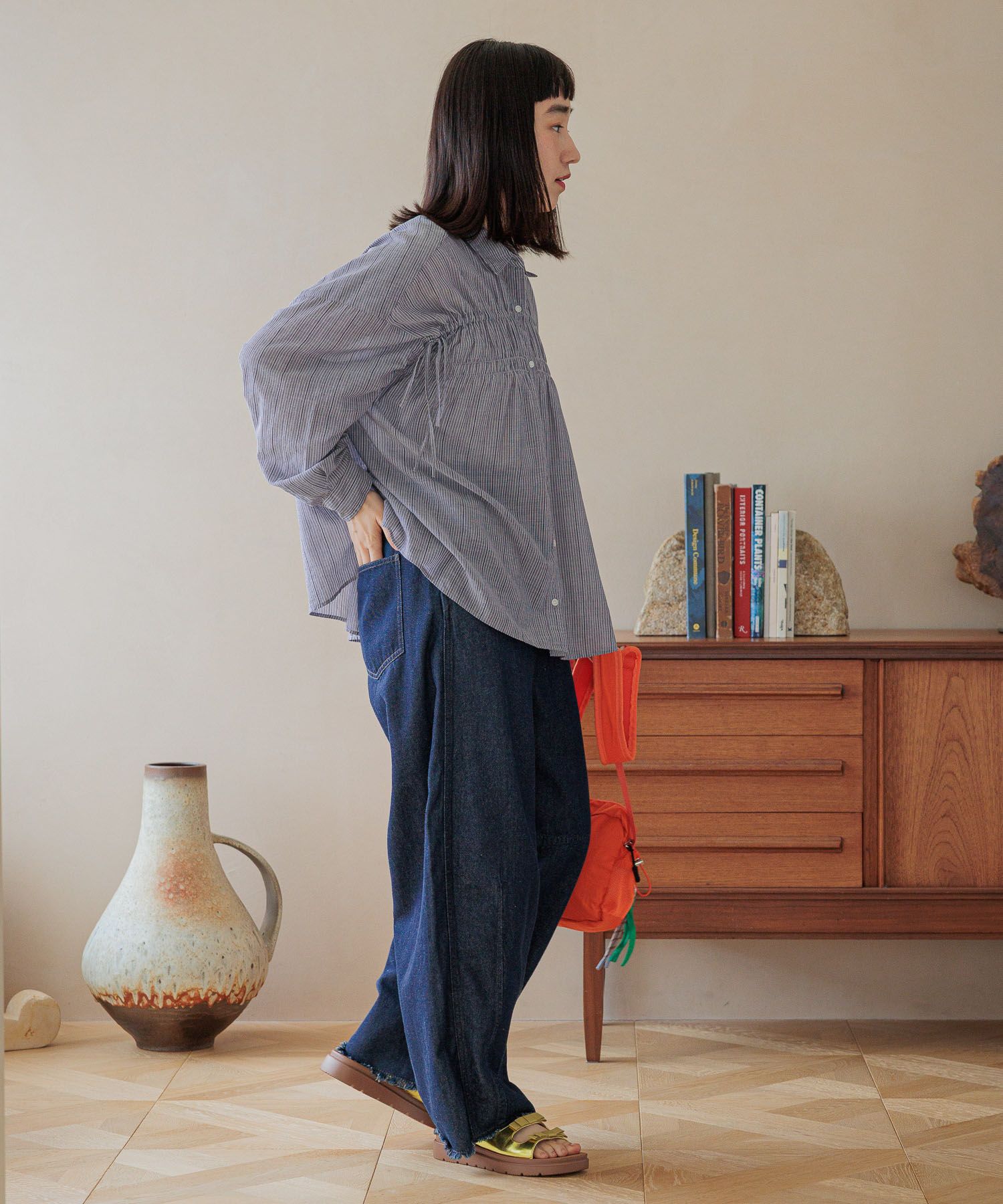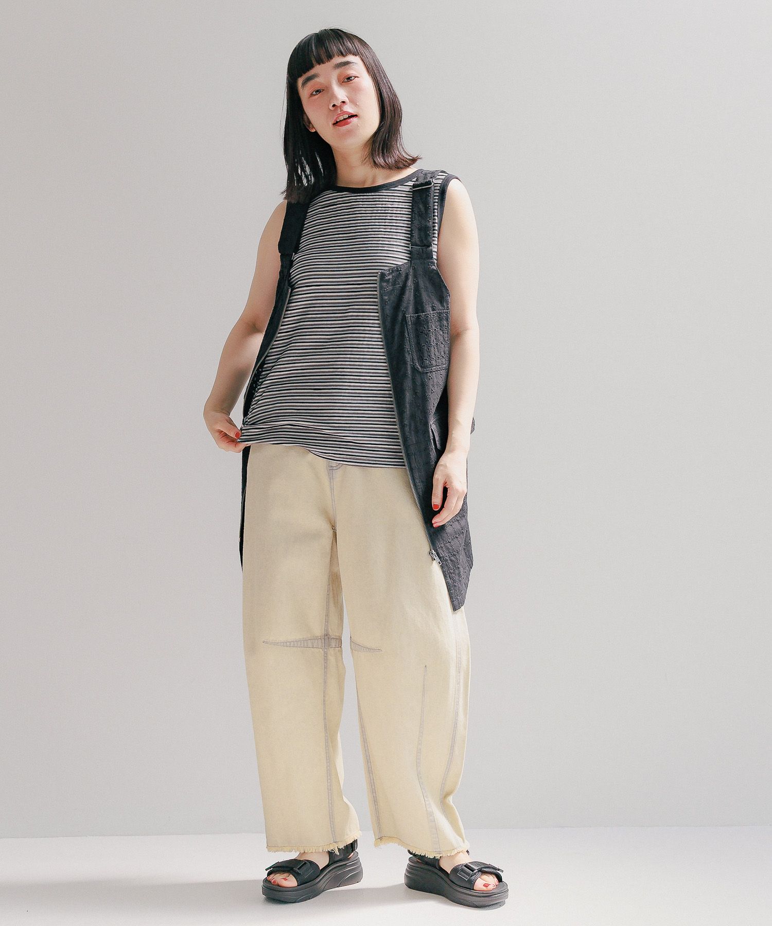 다트를 더해 입체감 있는 핏이며 밑단 프린지 디테일로 캐주얼해보입니다.