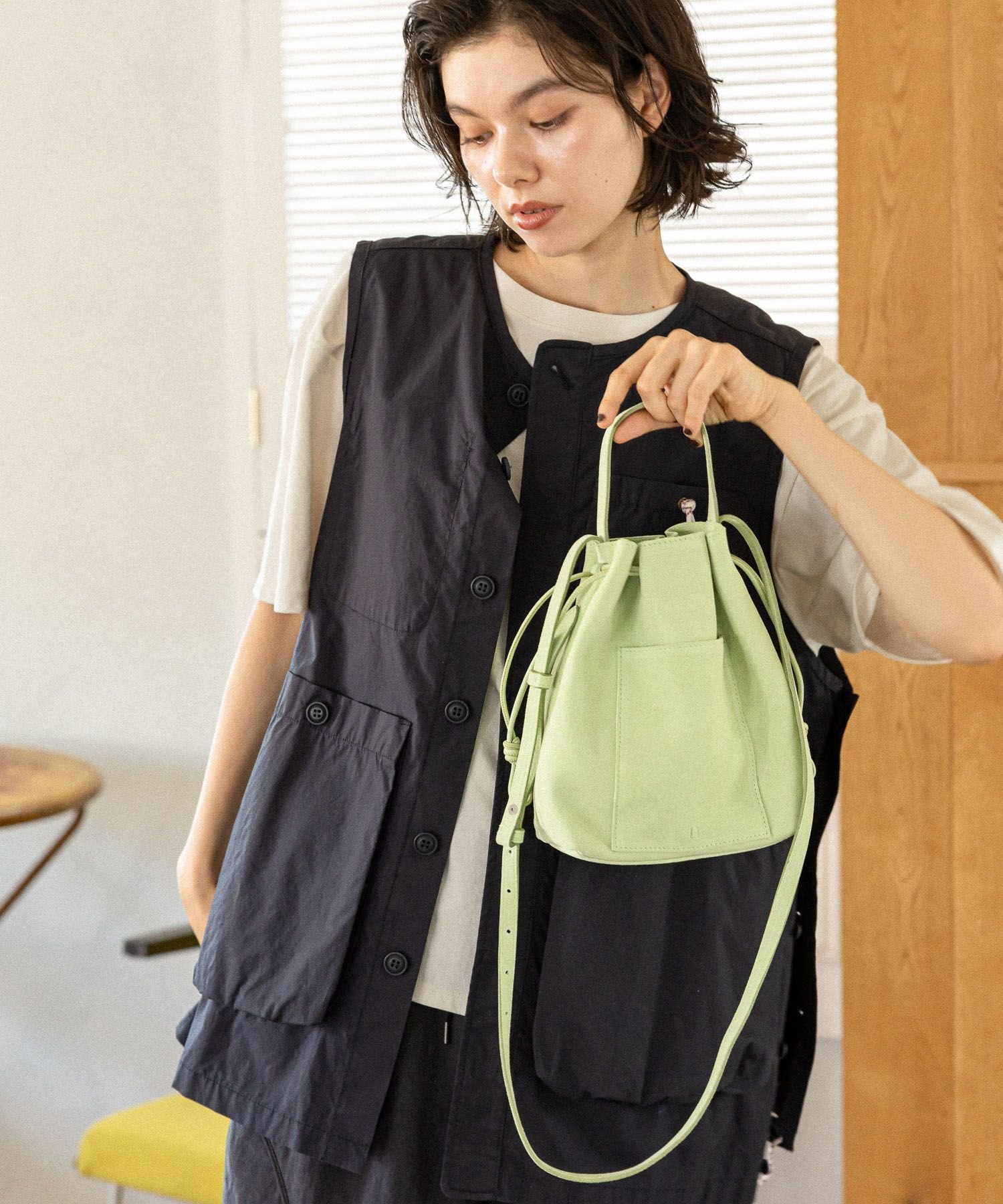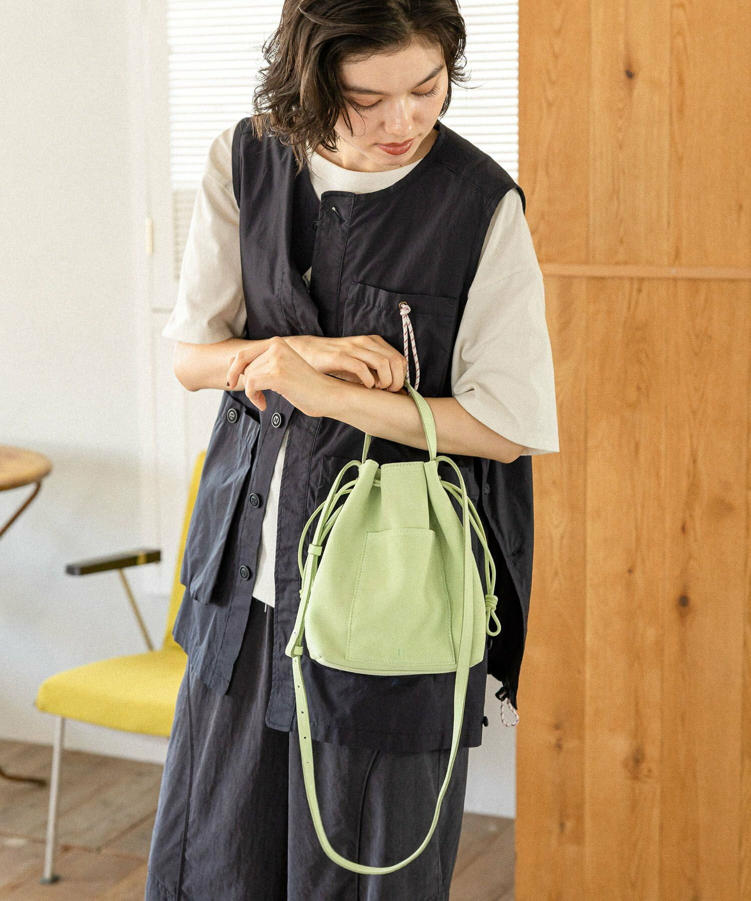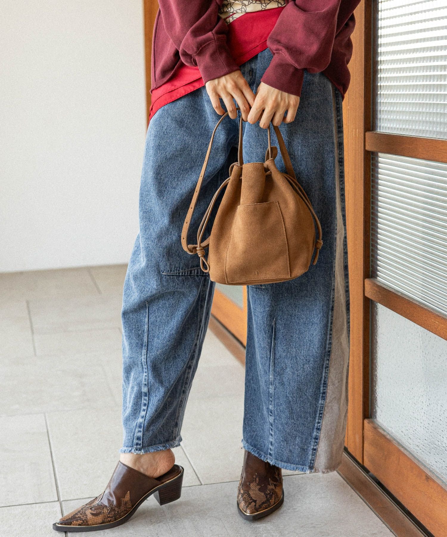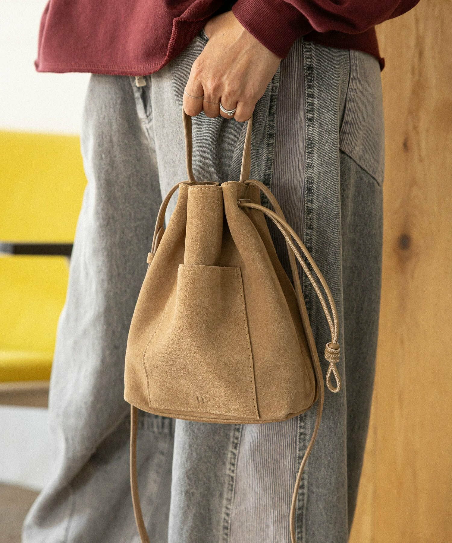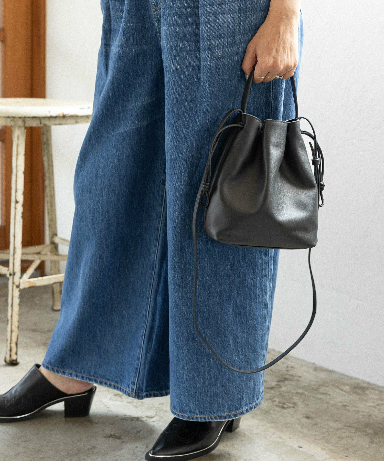 내구성이 뛰어난 천연 소가죽으로 제작된 복조리 숄더백입니다. 필요한 물건을 넣고 끈을 가볍게 조이기만 하면 완성되는 간단한 구조입니다.
