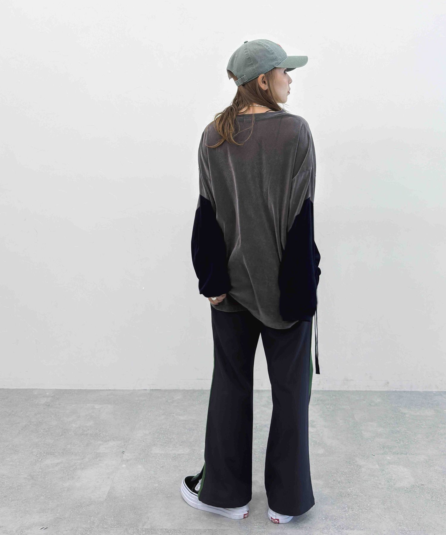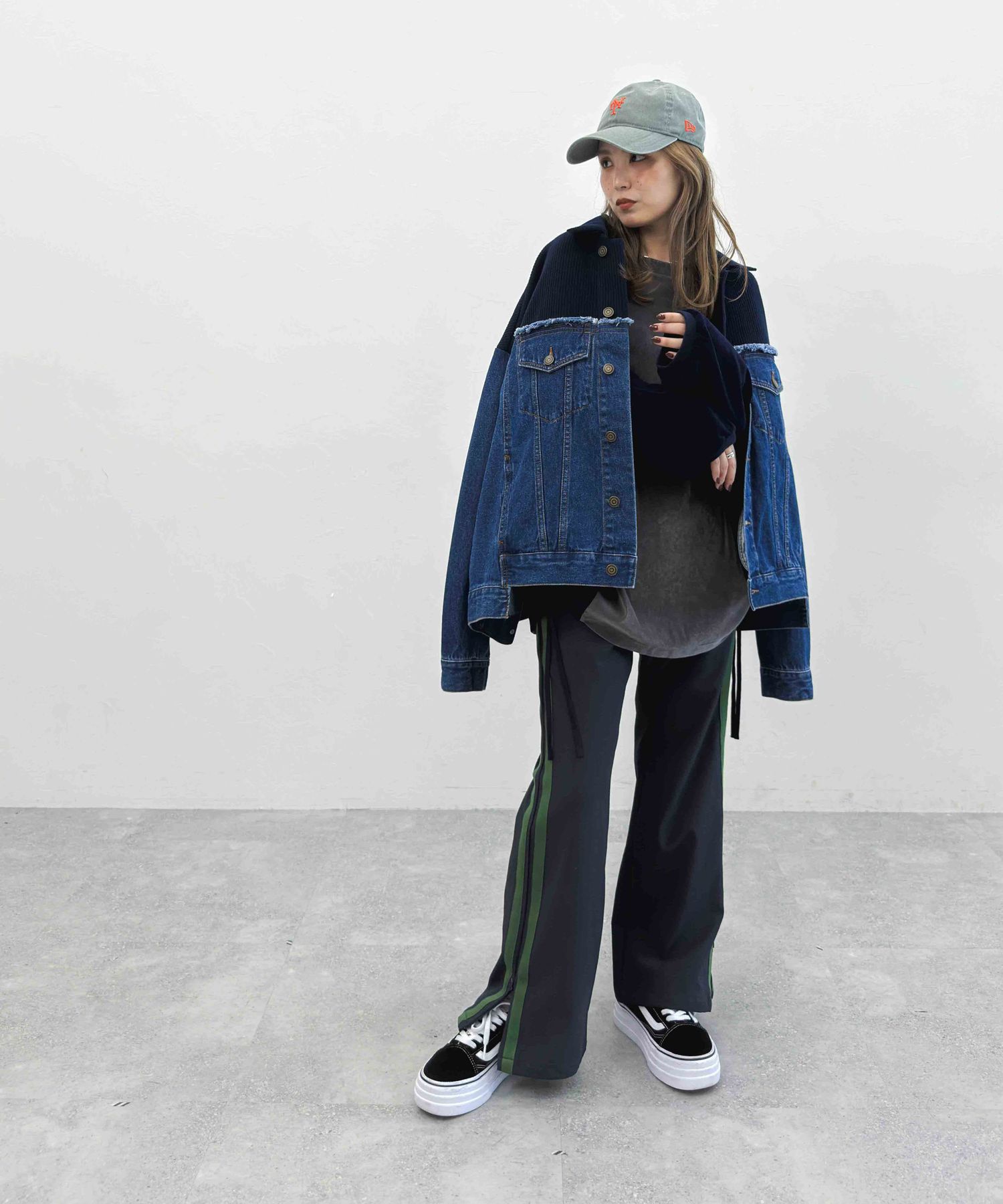 밑단에 숨은 지퍼가 있으며 슬릿으로 캐주얼한 분위기입니다.