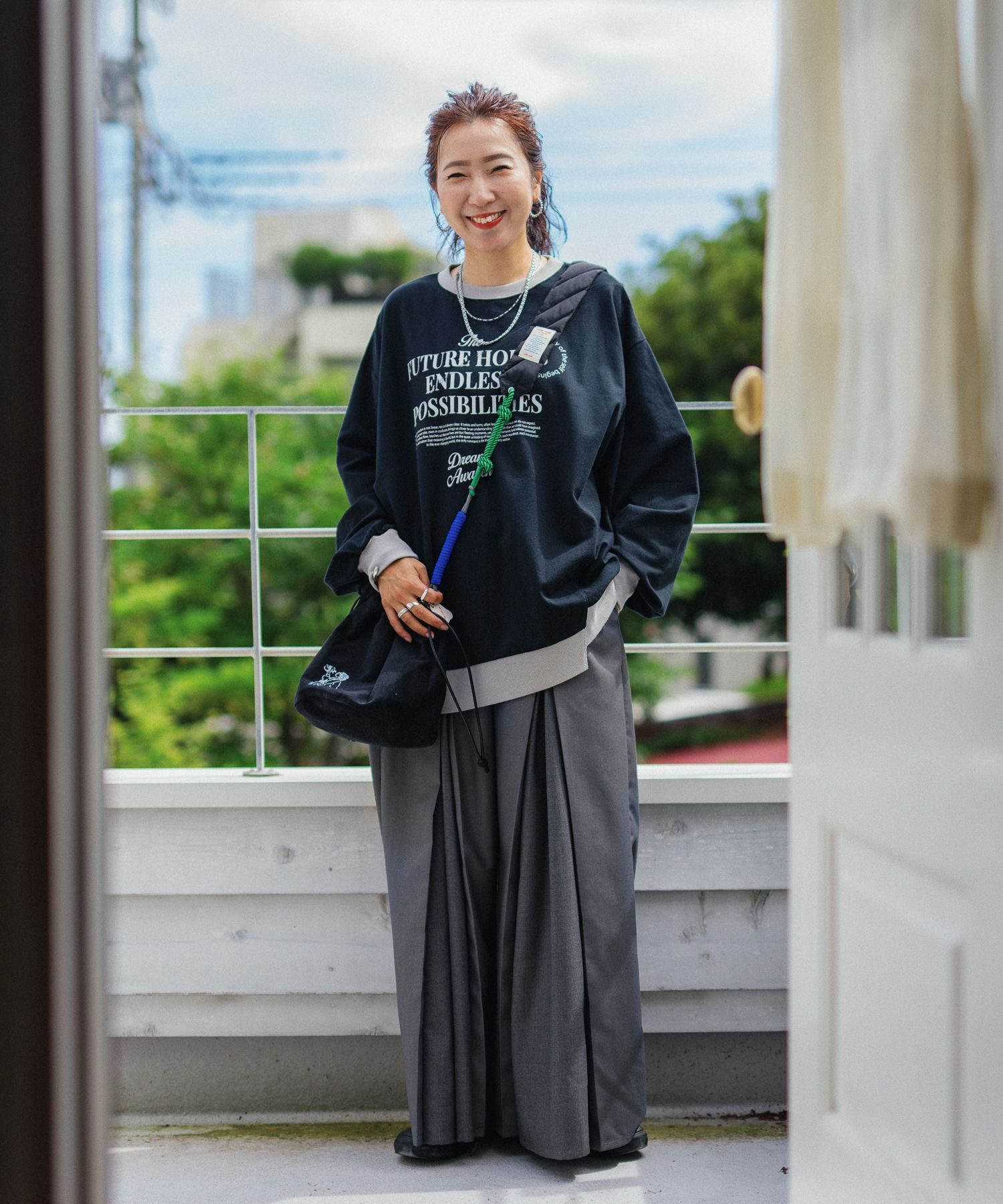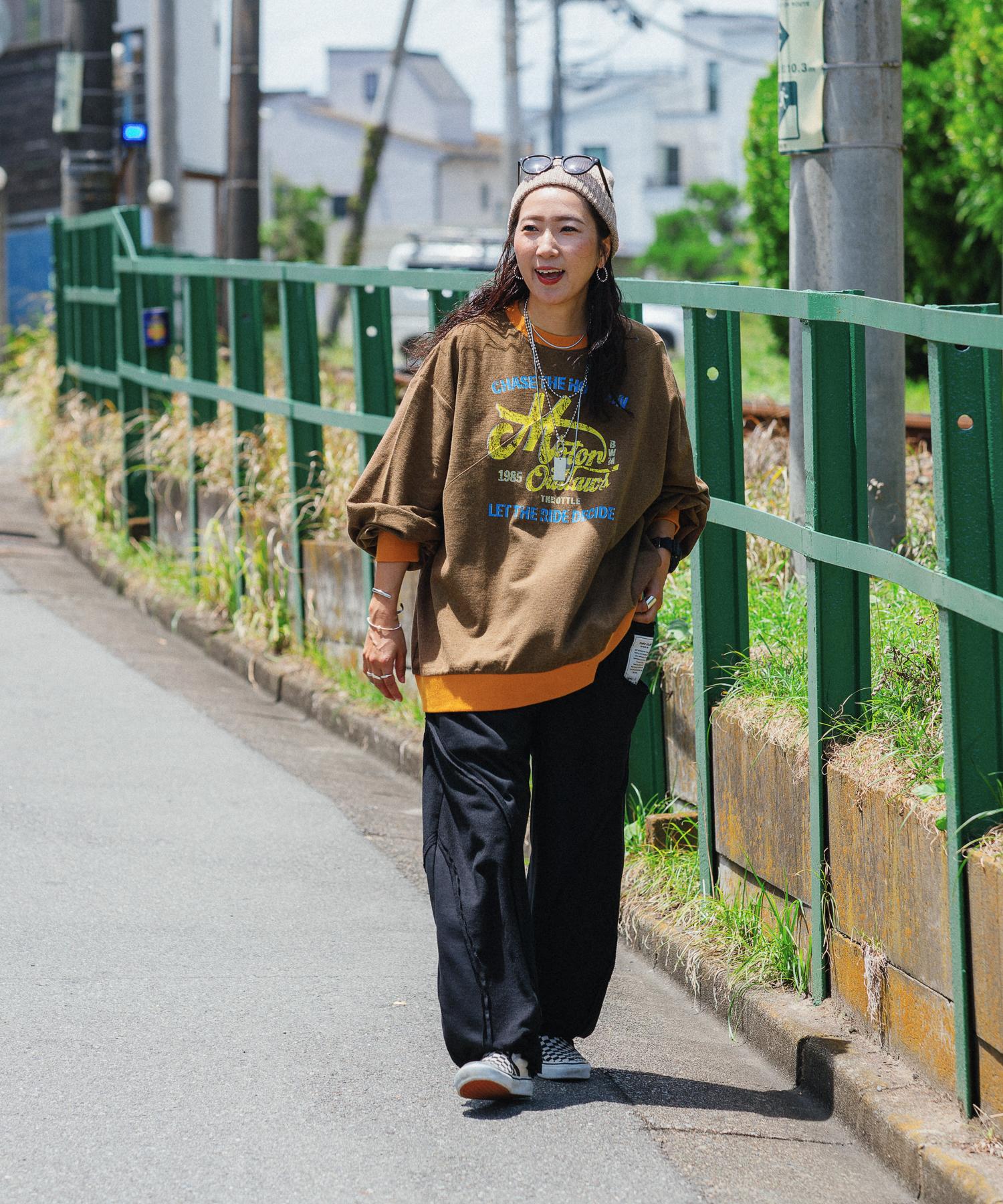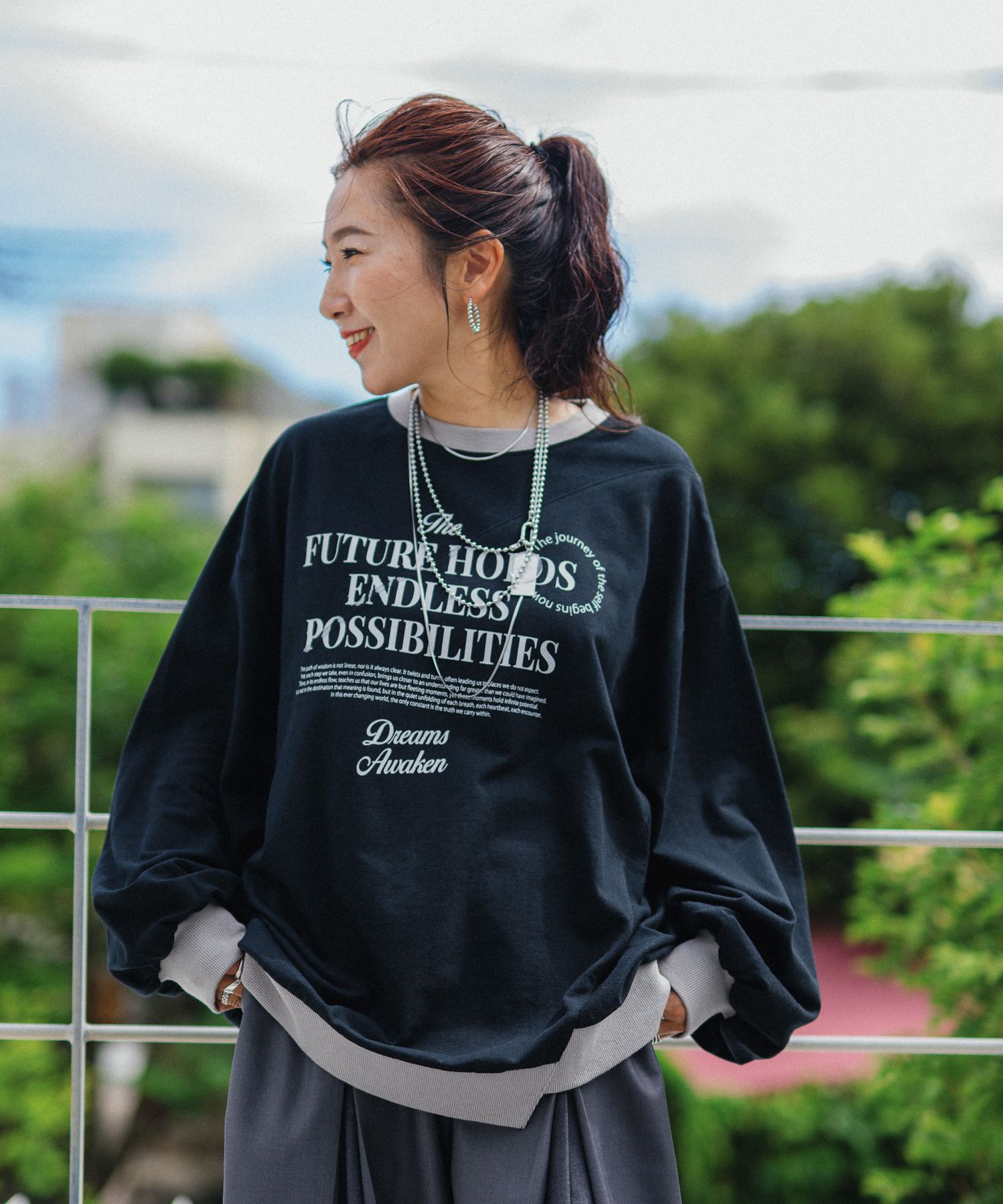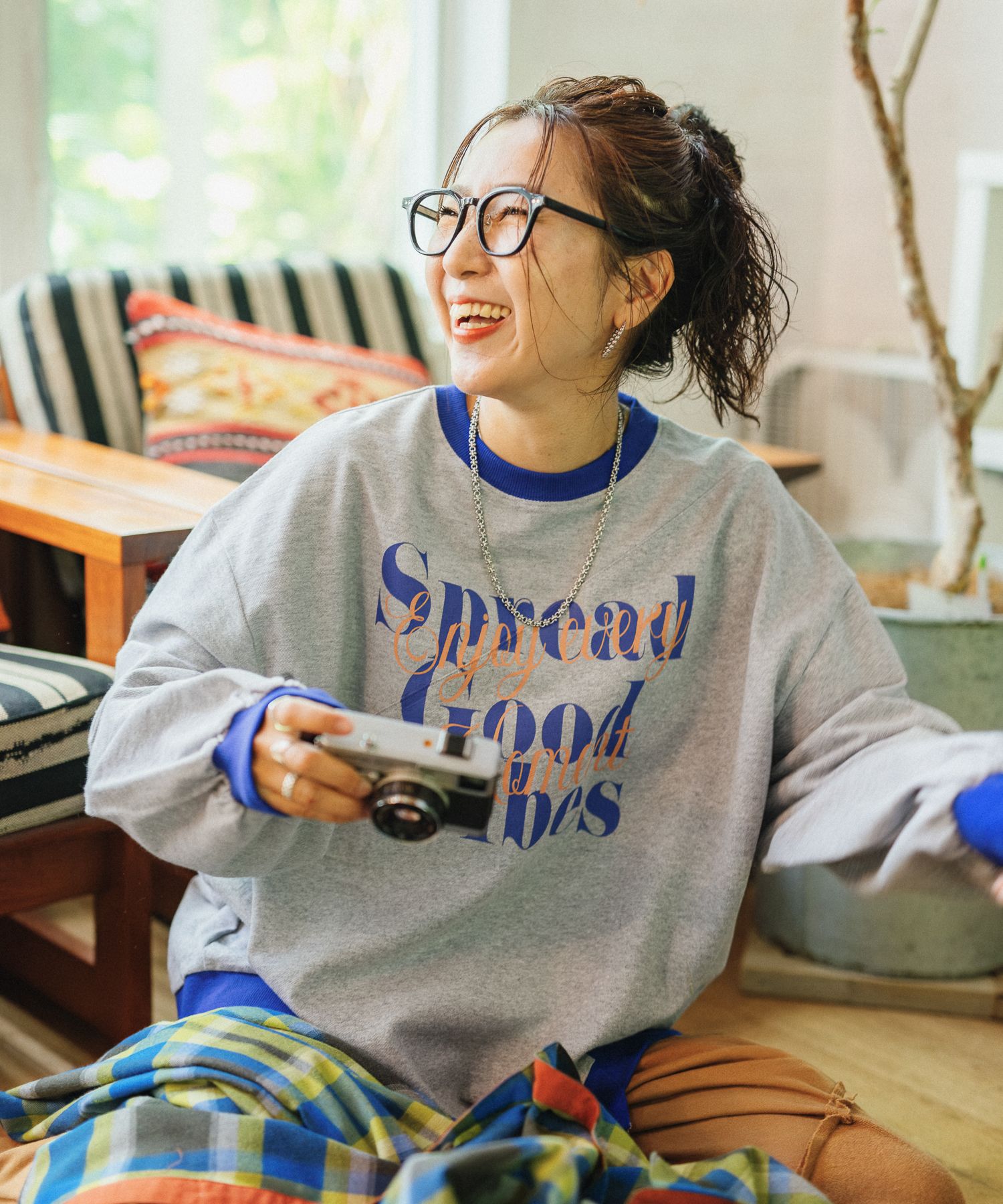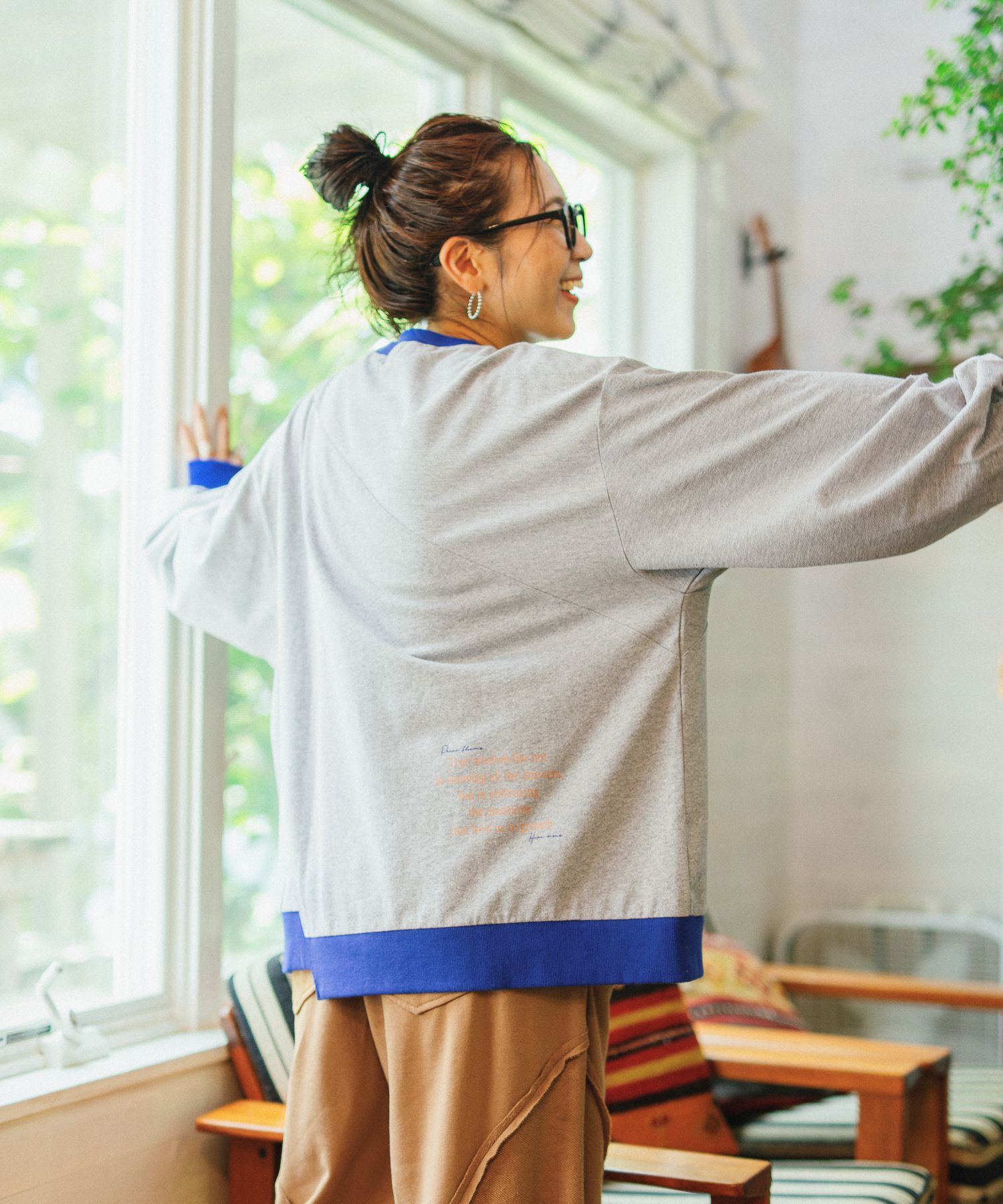 맨투맨처럼 포근하면서도 롱T처럼 가볍게 입기 좋은 중간 두께감의 티.