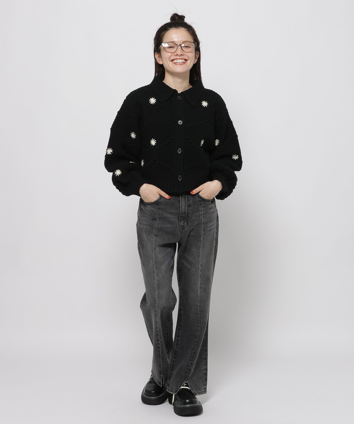 니코앤드 플라워 자수 크로셰 니트 가디건