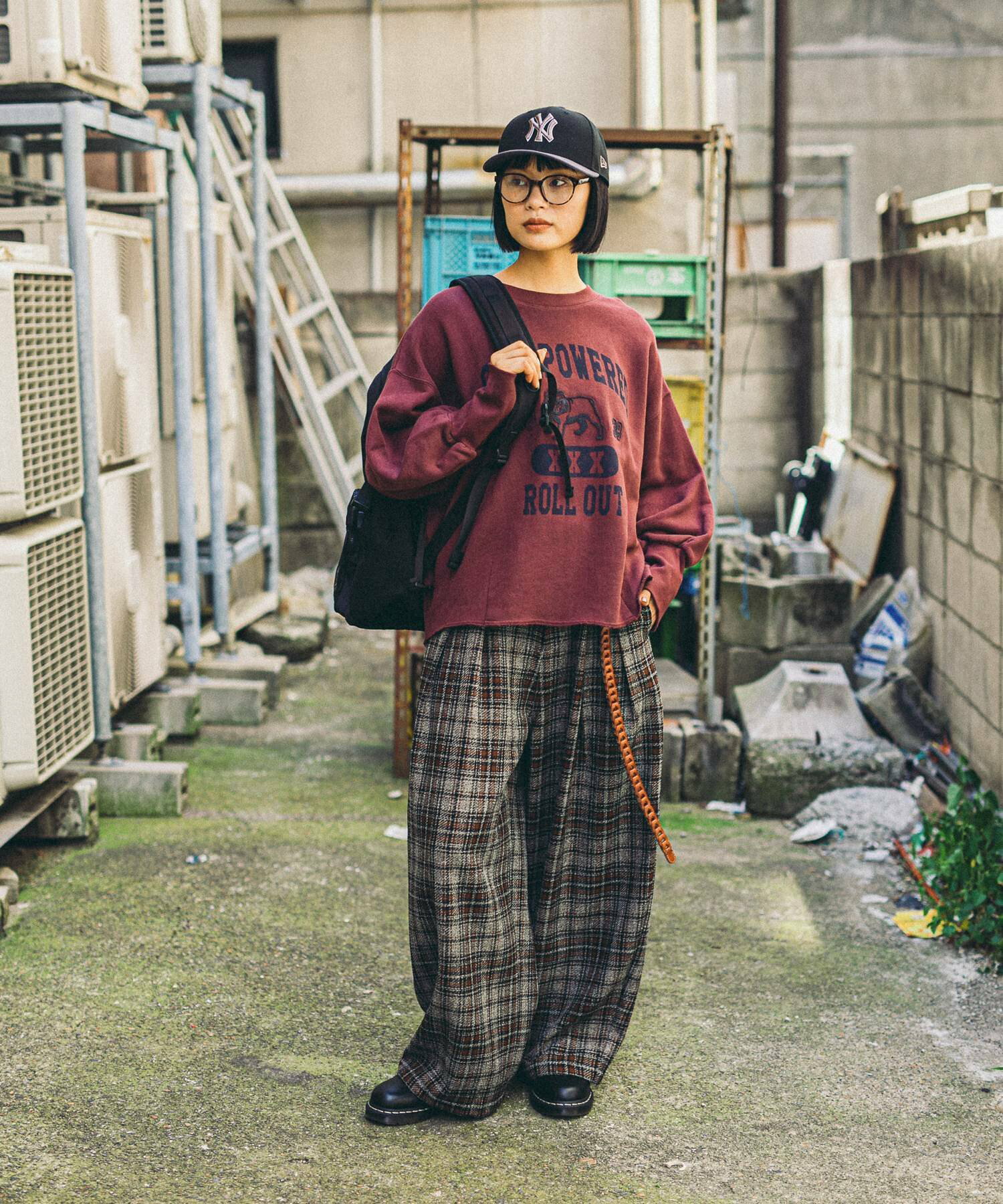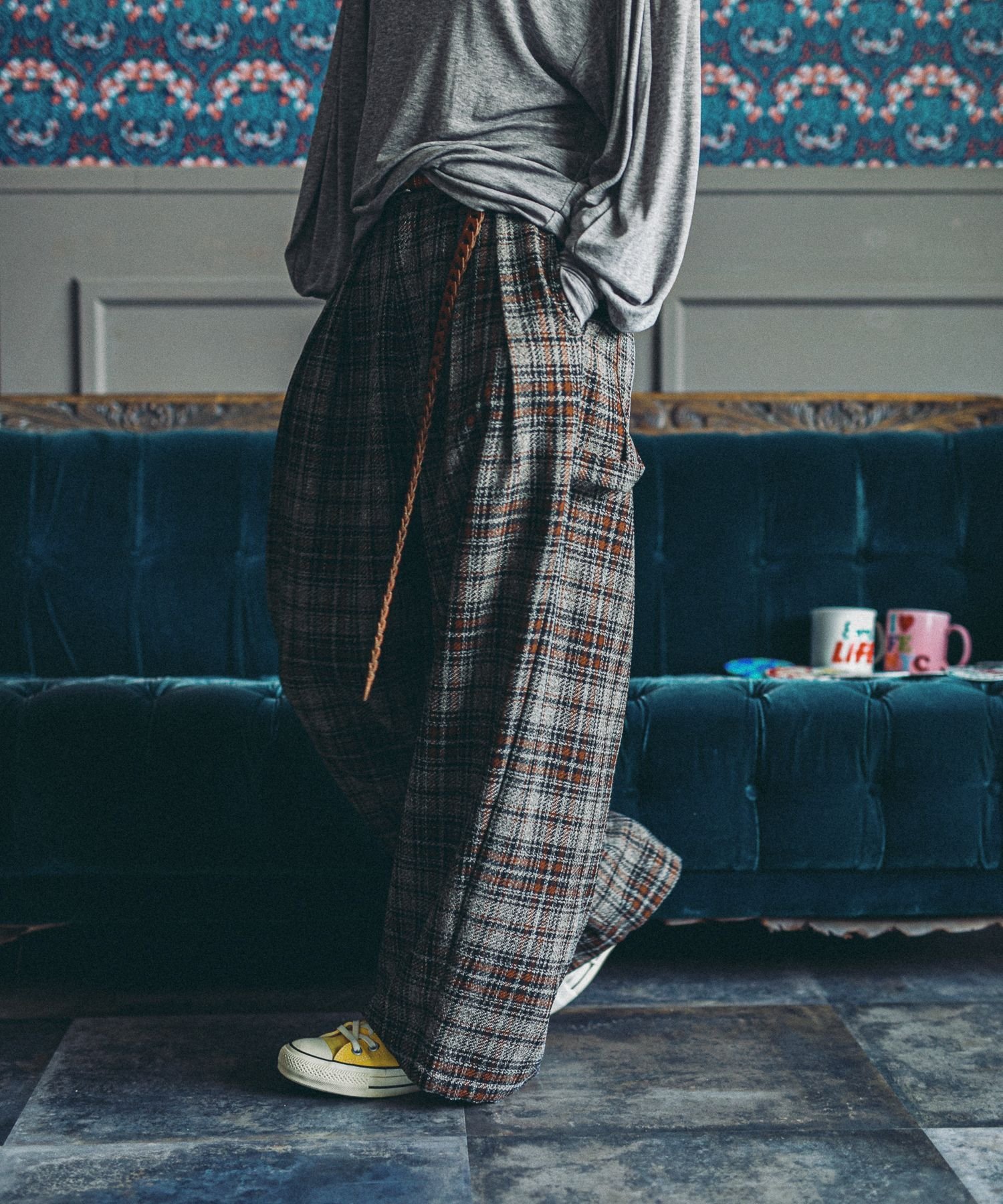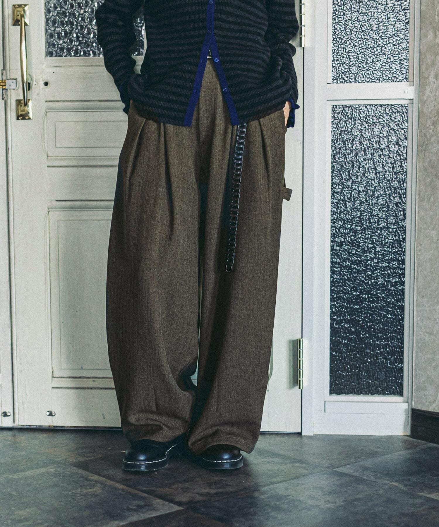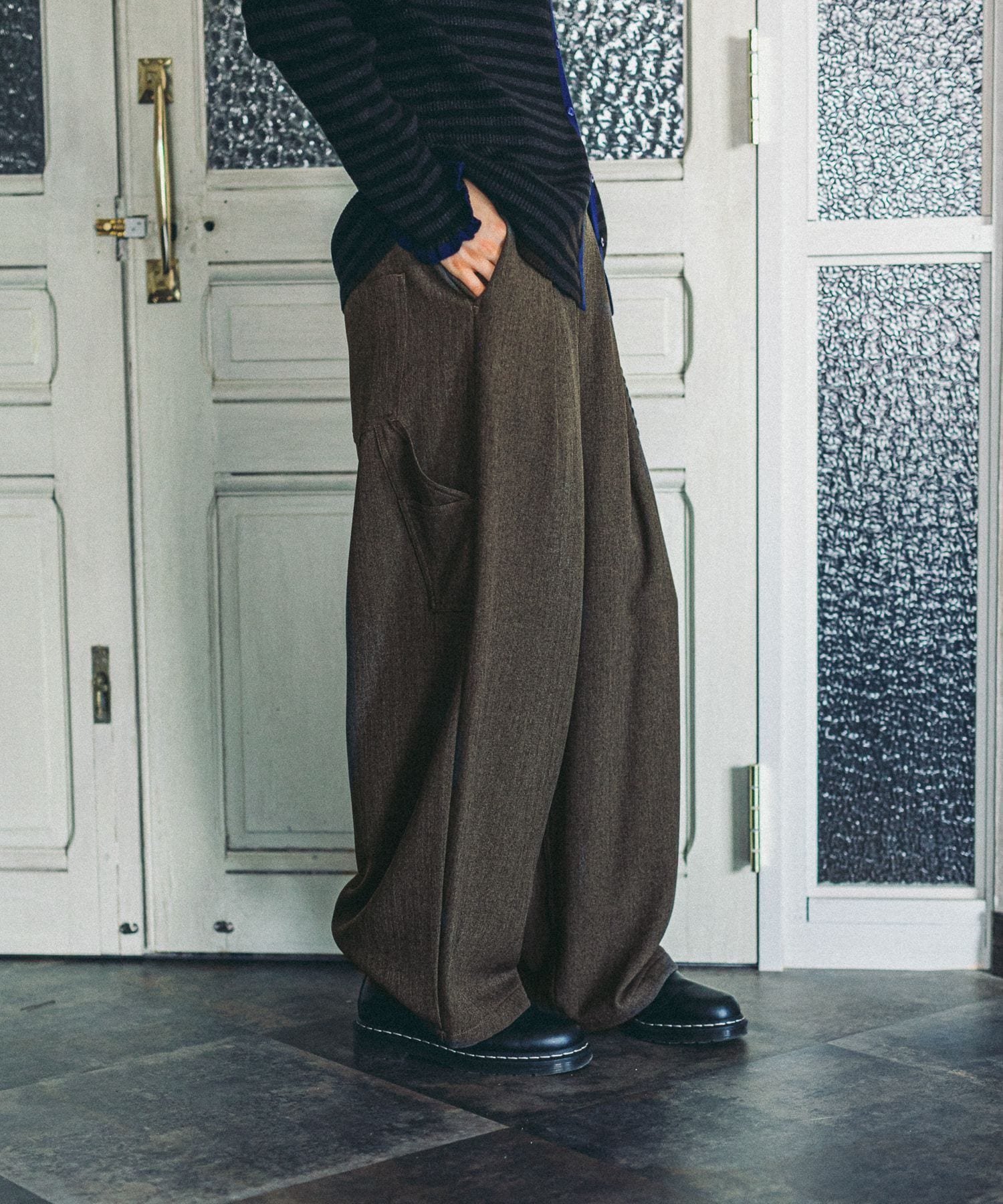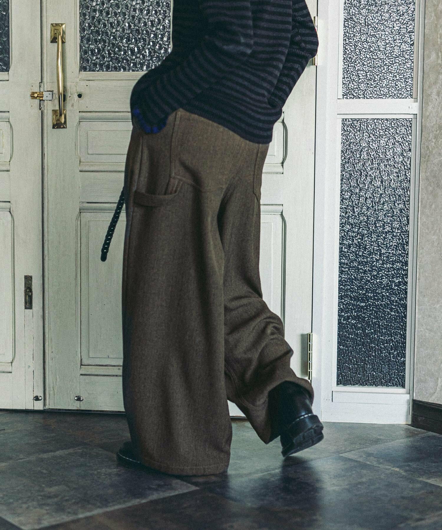 부드러운 헤링본 소재의 루즈핏 페인터 팬츠