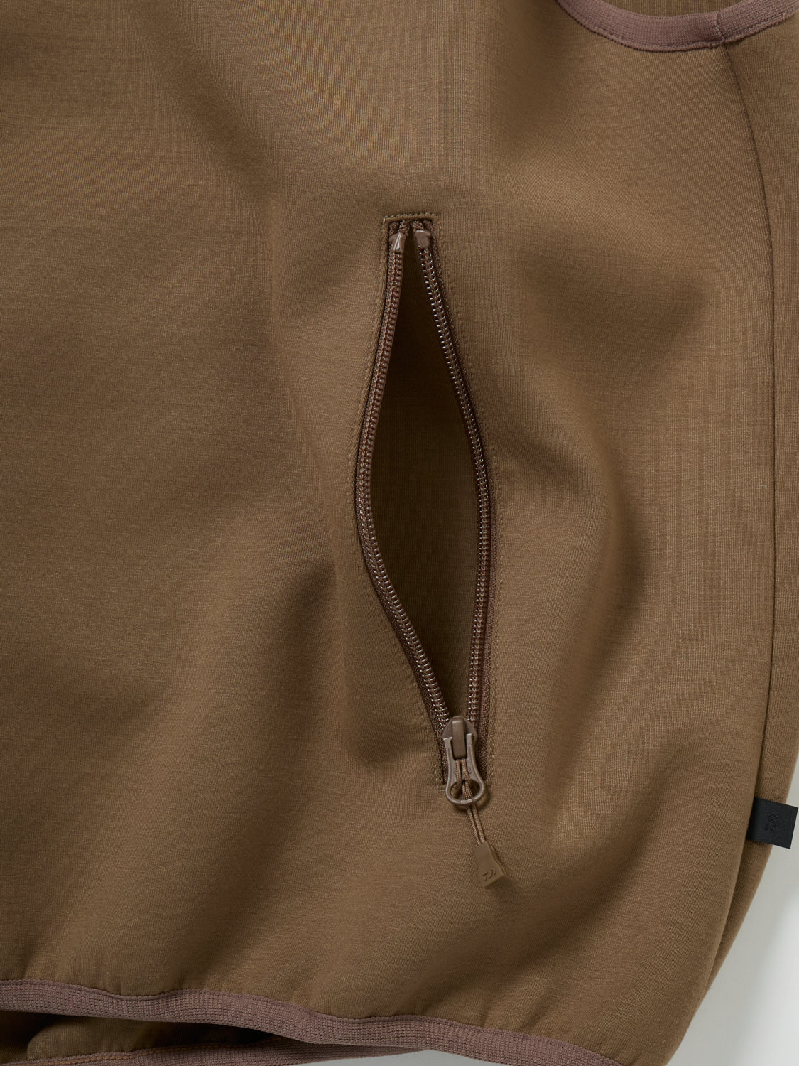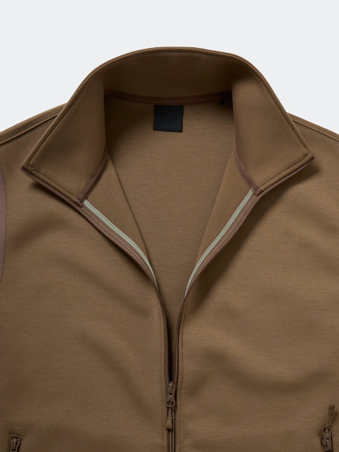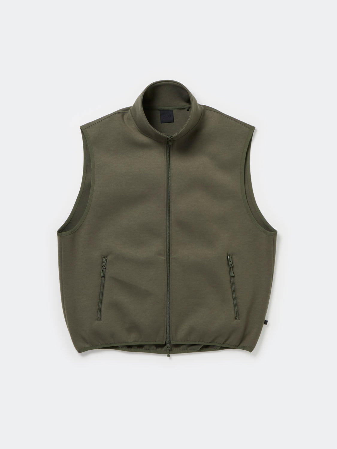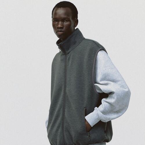 덤블 니트를 사용한 워밍업 스탠드 칼라 스웨트 베스트. 중공 구조를 사용해 유연하고 부드러우며 보온성, 경량성이 있습니다.