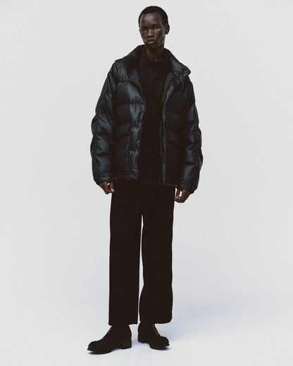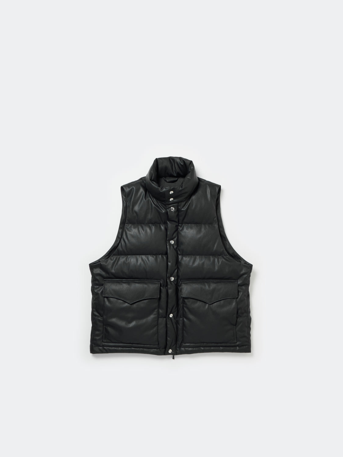 동물 유래 성분을 사용하지 않은 친환경 합성피혁을 사용한 클래식 아웃도어 스타일의 다운 재킷입니다. 경량 구조로 가죽처럼 보여도 무게감이 부담스럽지 않으며 소매 탈착 디자인으로 조끼로 입을 수 있습니다.
