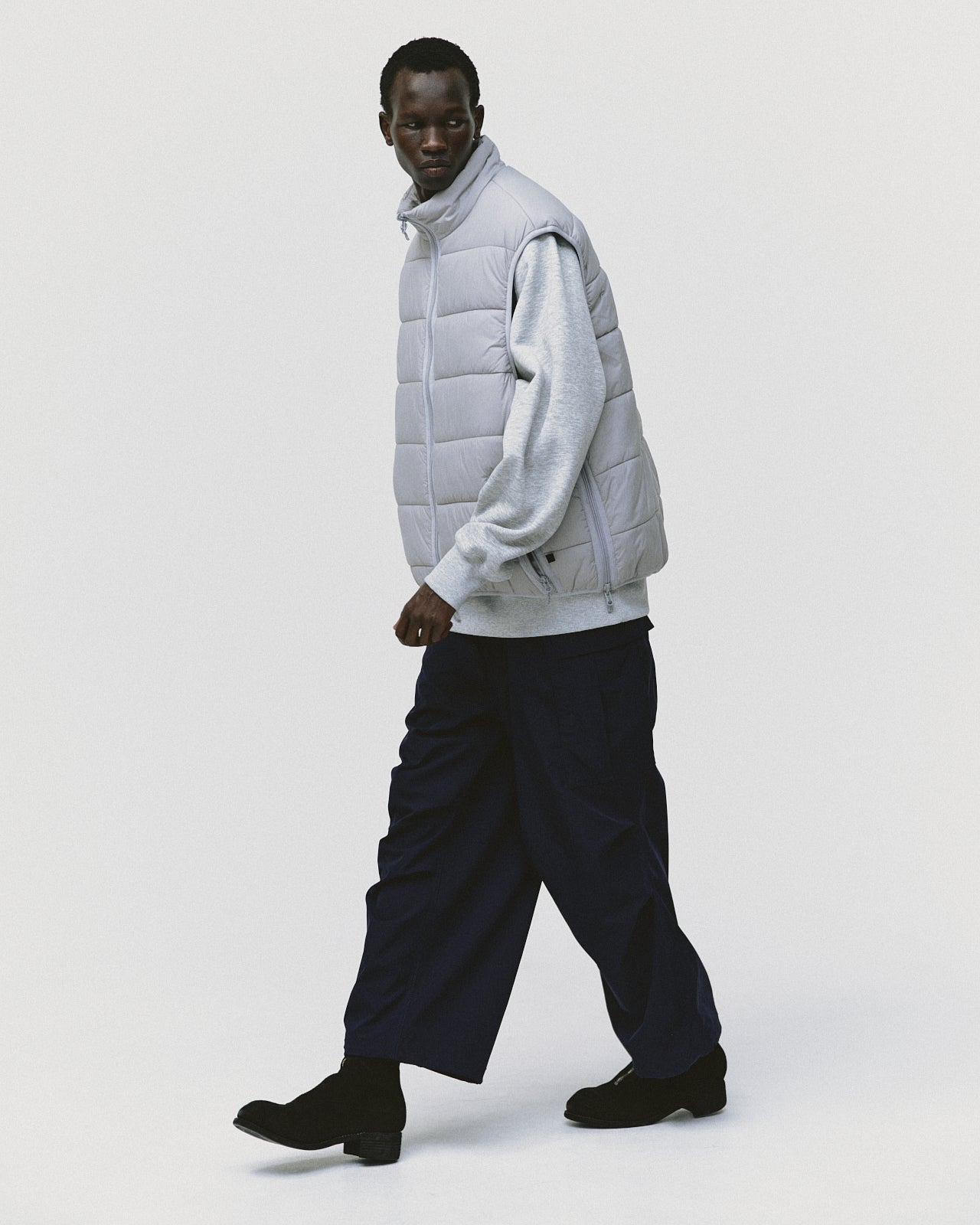가벼우면서도 밀도가 높은 타프타 소재를 사용한 패딩 조끼. 리버시블이 가능한 디자인으로 아웃도어 브랜드에 자주 보이는 심플한 가슴 포켓이 특징입니다.