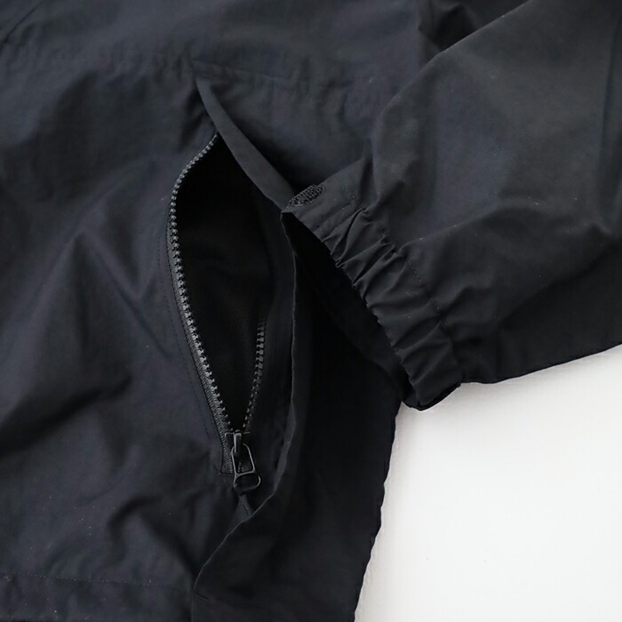 발수성, 방풍성, 통기성이 있는 소재로 가슴 주위의 스티치 포인트가 있습니다. 전면은 더블지퍼 사양입니다.