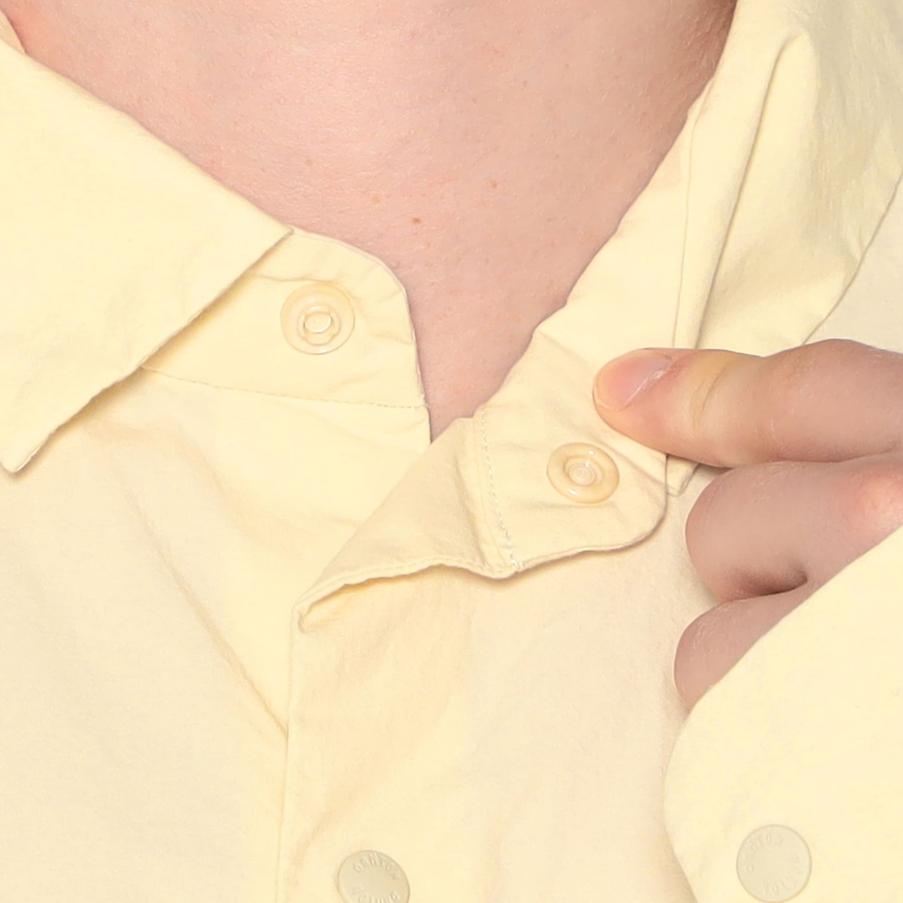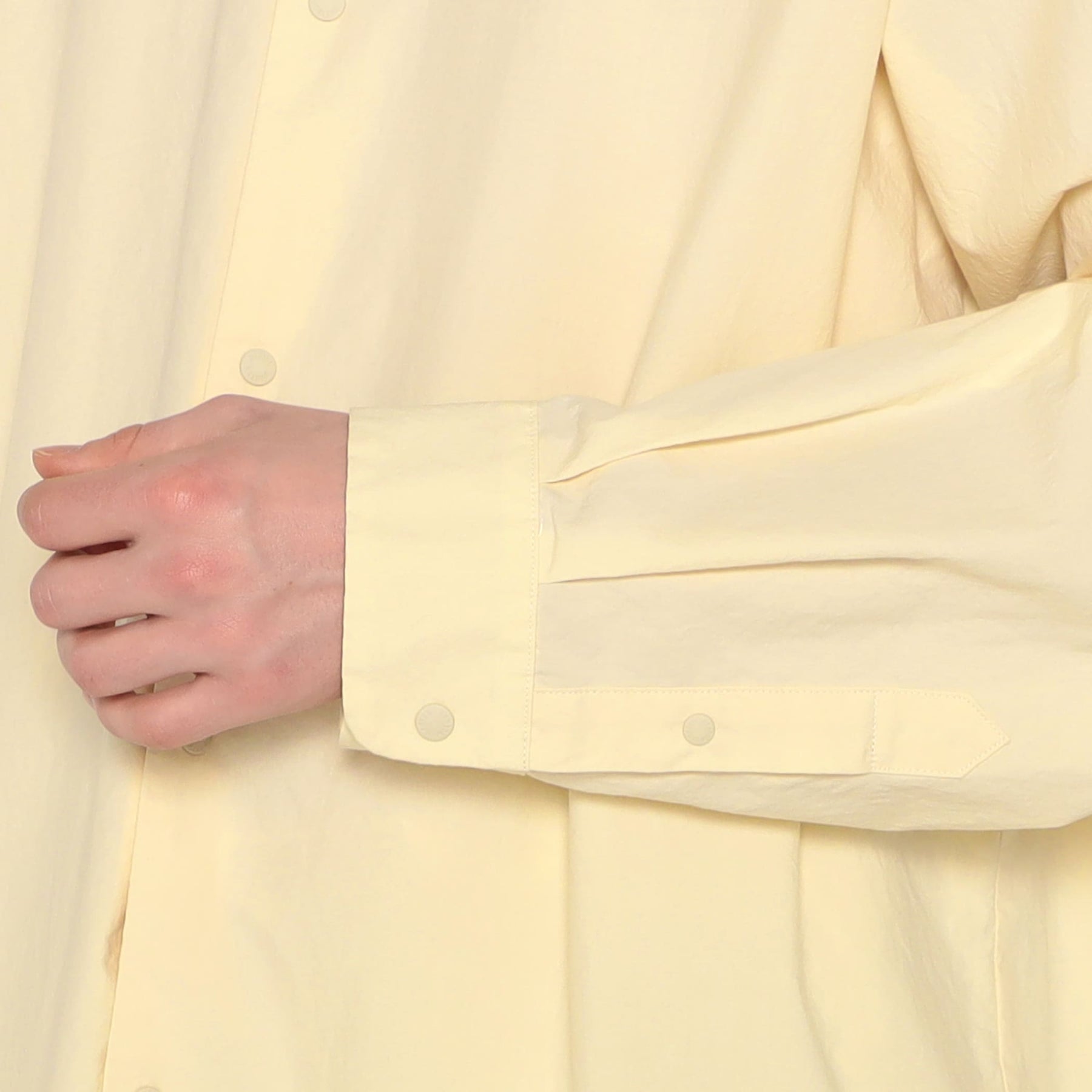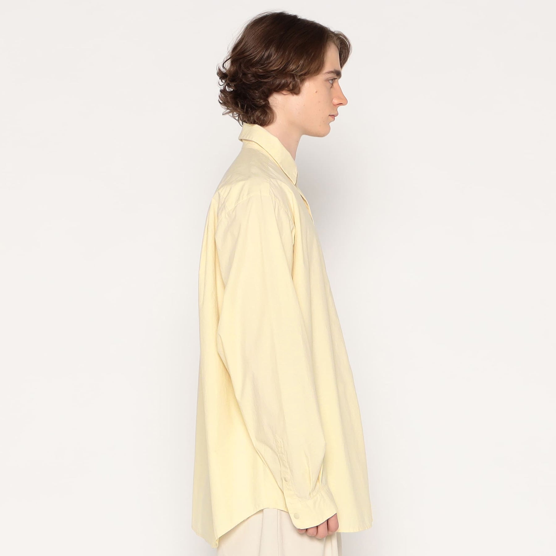 고급 면사로 촘촘하게 짜인 타입라이터 원단을 사용한 셔츠입니다. 전체적으로 자연스러운 주름감이 더해져 유니크한 텍스처를 연출하며, 앞여밈은 스냅 버튼으로 간편하게 착용할 수 있습니다. 원단은 일본산으로 고급 소재와 완성도 높은 마감이 특징입니다.