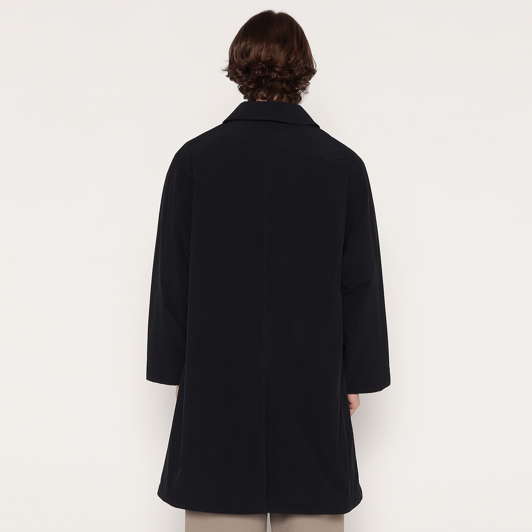 여유 있는 실루엣의 발마칸 코트로, 간결하면서도 세련된 인상을 주는 아이템입니다.