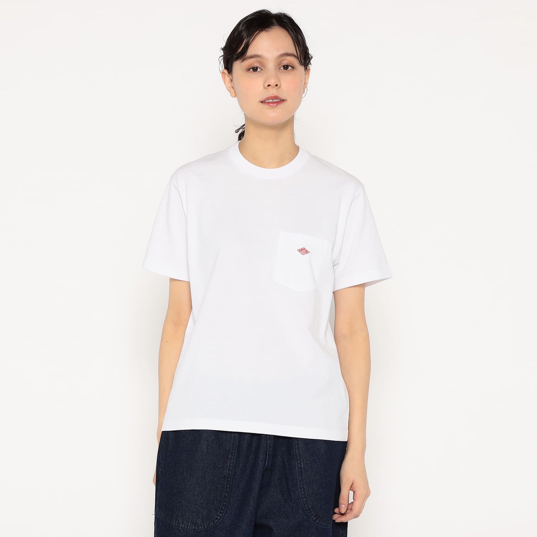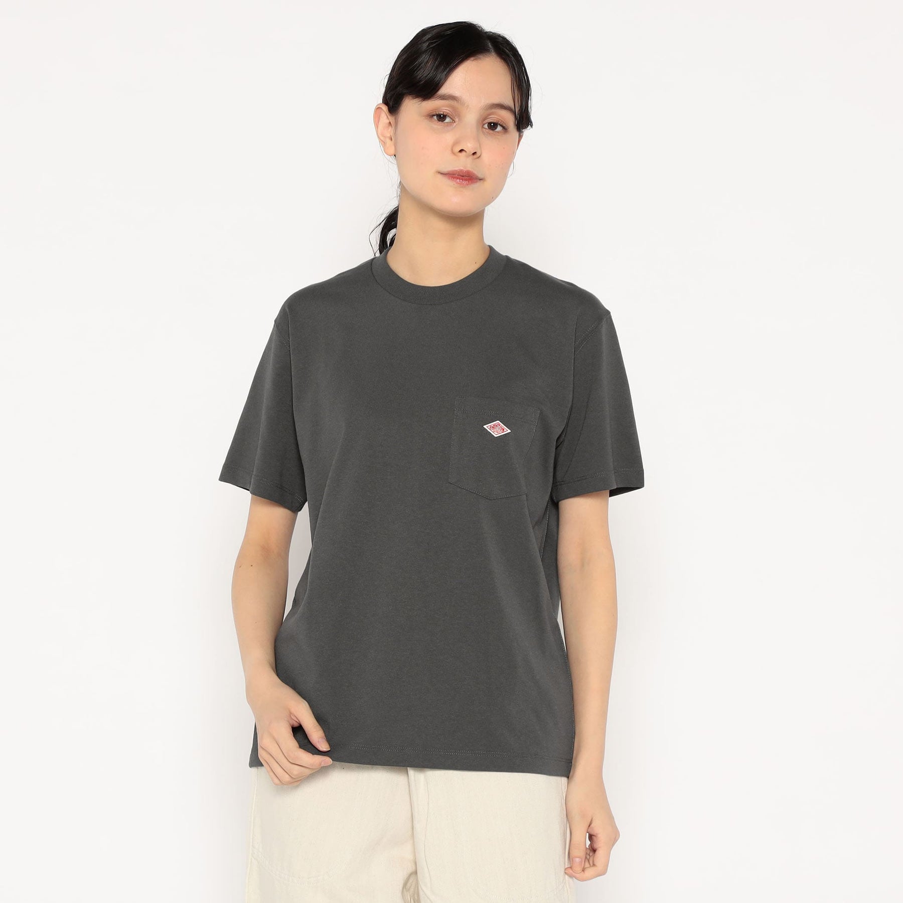 단톤 여성 무지 반팔 포켓 티 셔츠